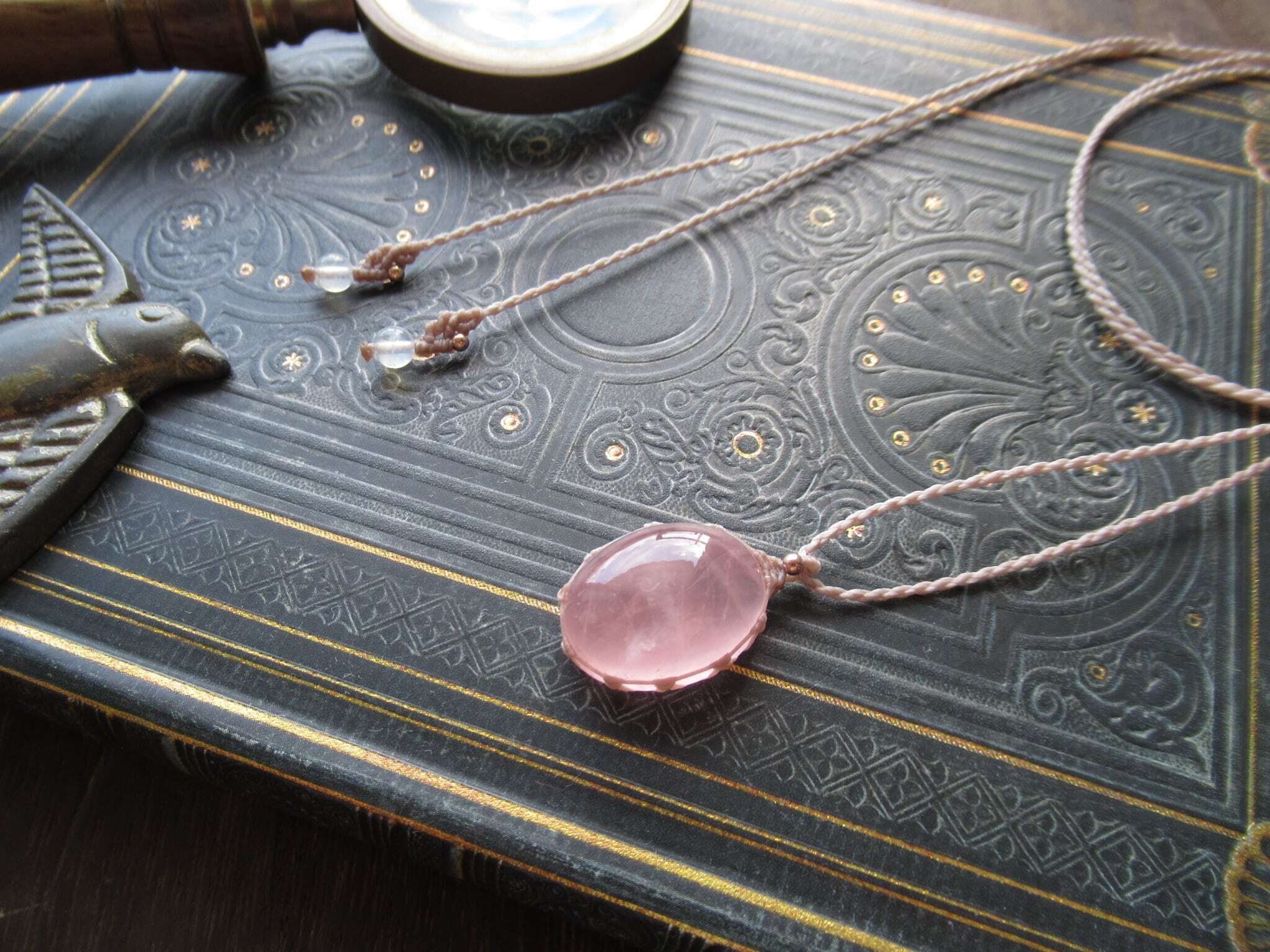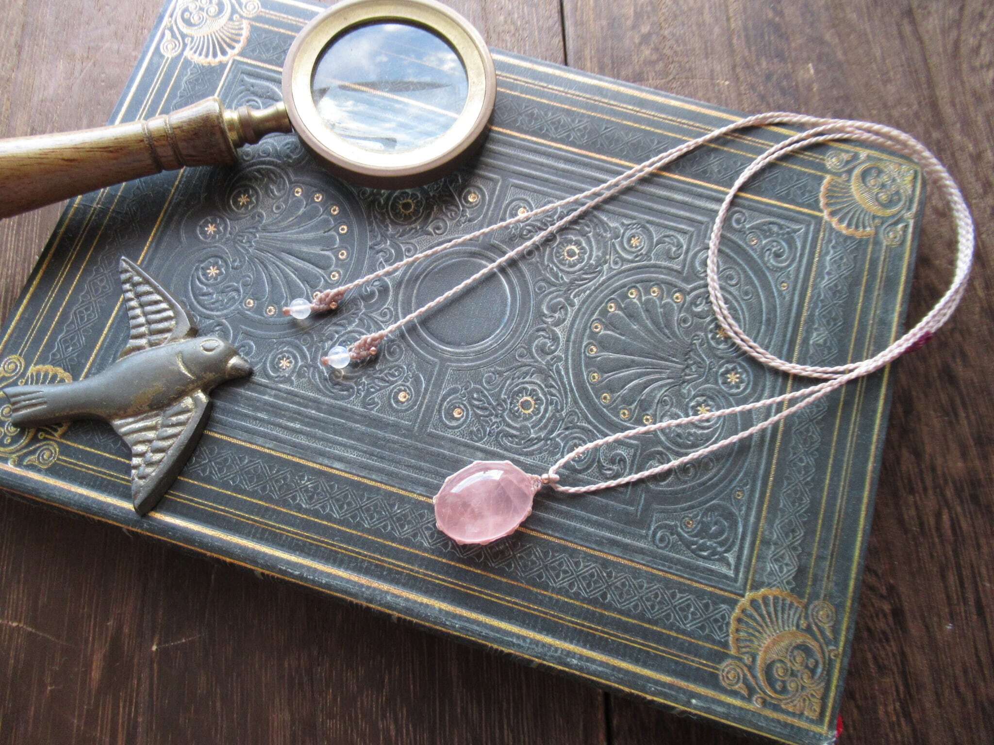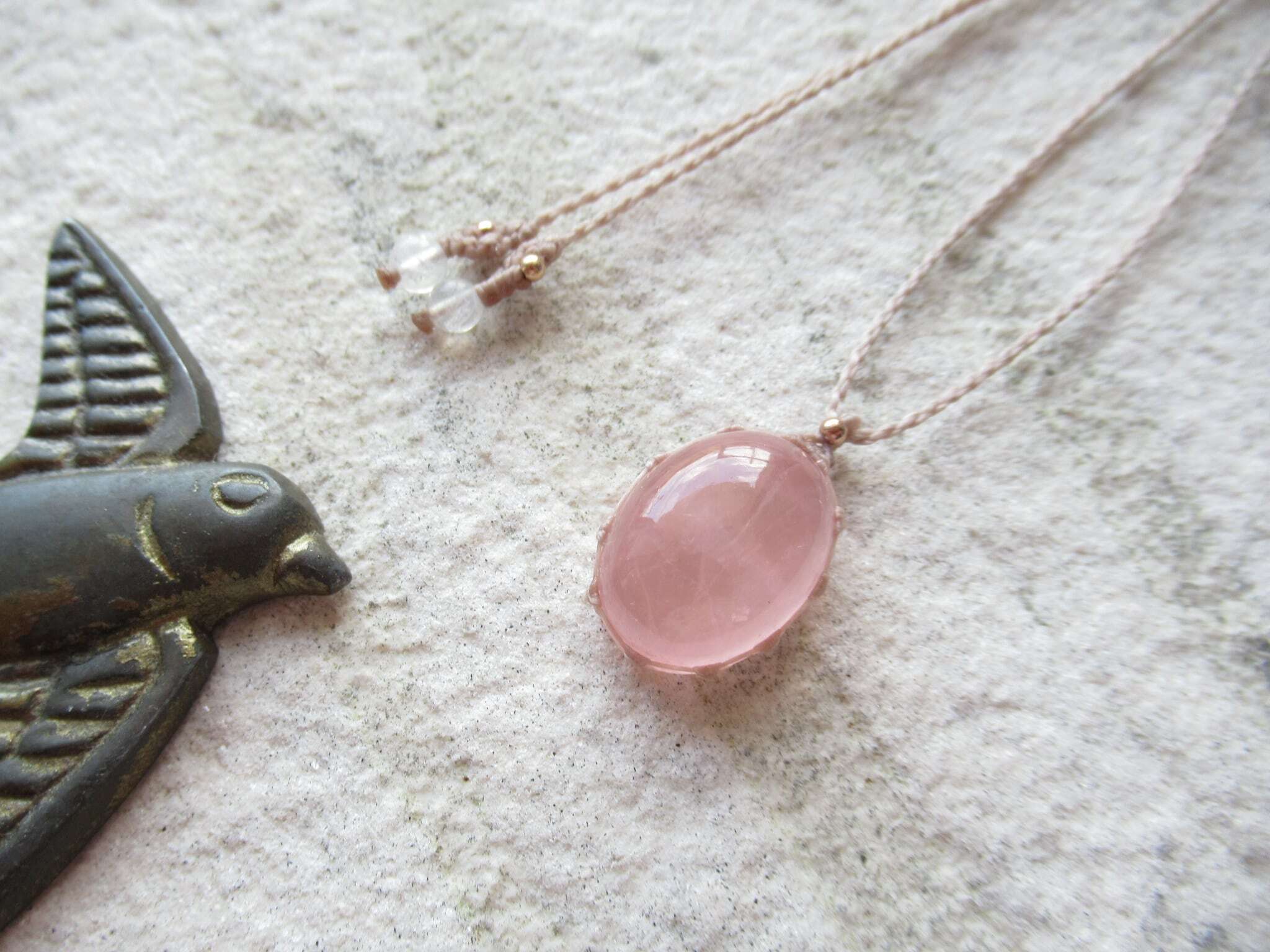艶感のある、濃いめの色合いのブラジル産のローズクォーツをカジュアルに身につけられるシンプルなペンダントにお仕立ていたしました。