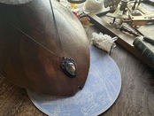 角度によってオレンジからレッドパープルが見られるマルチカラーのラブラドライトをペンダントにお仕立ていたしました。