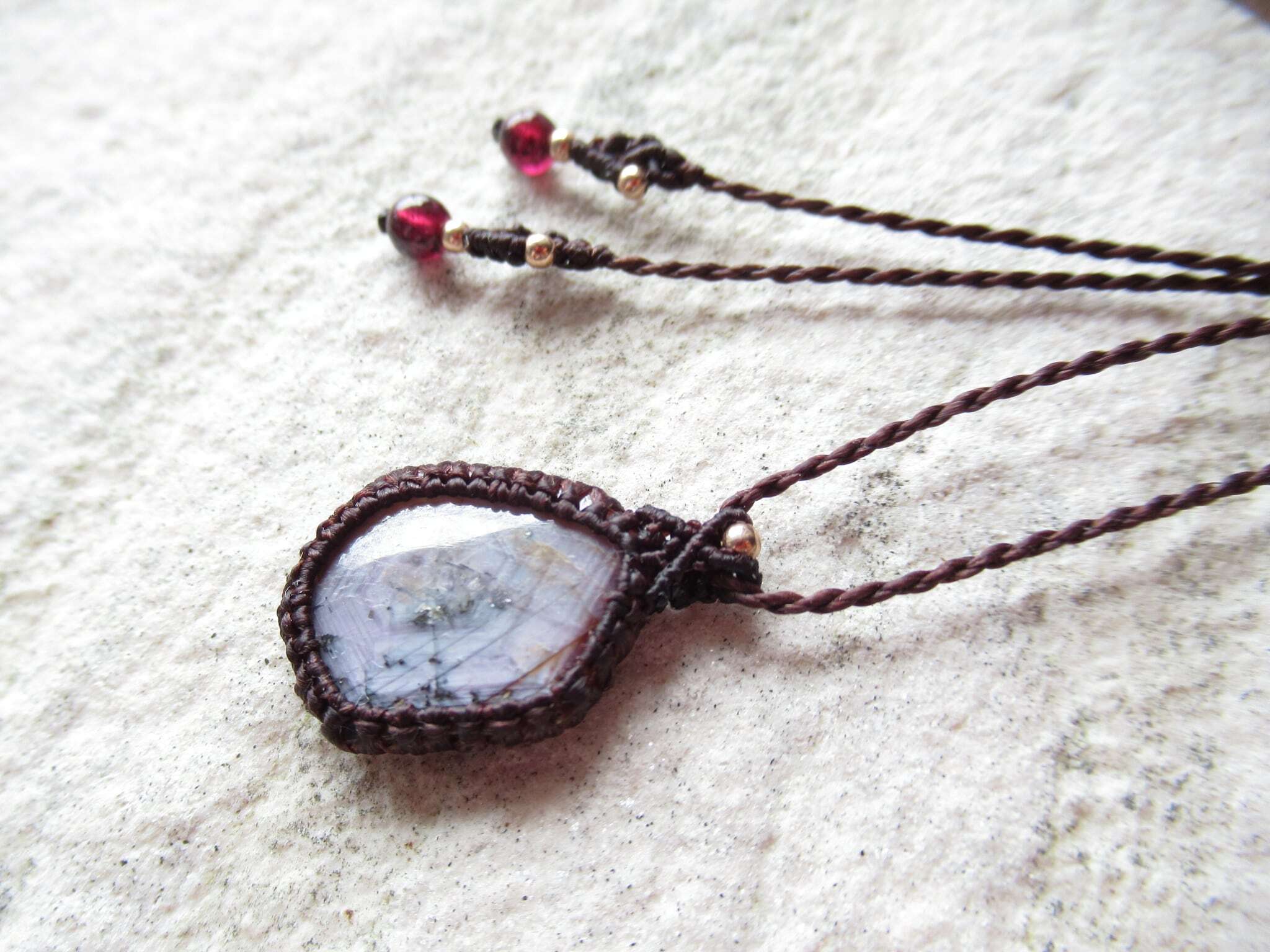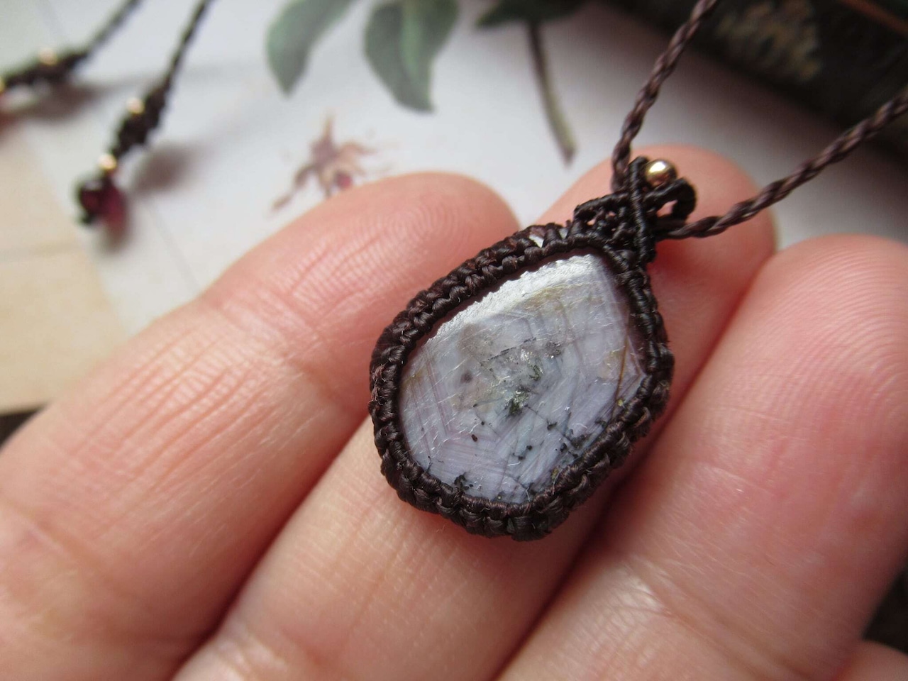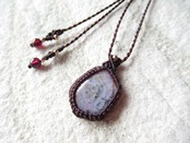 結晶はフリーフォームに近い形状で、糸で編み込んでいるので見えなくなっておりますが、左側の一部の縁がやや斜めにカケ感があります。ヒビなどは見られません。
