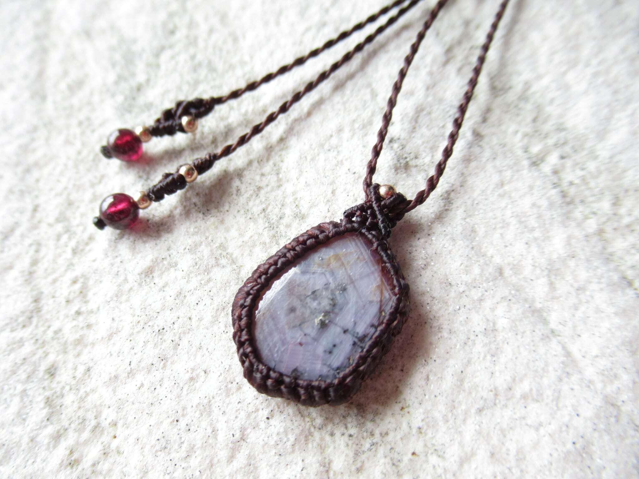 ルビーと言えば連想する真紅ではなく、落ち着いた葡萄色の綺麗な光沢のひと粒です。原石を輪切りにカットして表面を研磨しており、独特の美しい輝きがご覧いただけます。結晶の成長痕も見られます。