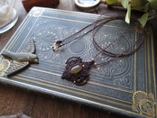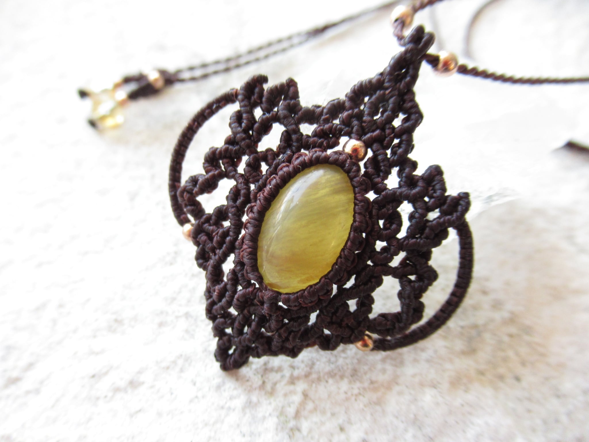 ブルーアンバーのフレーム編みペンダント / 秋の木漏れ日のお守り