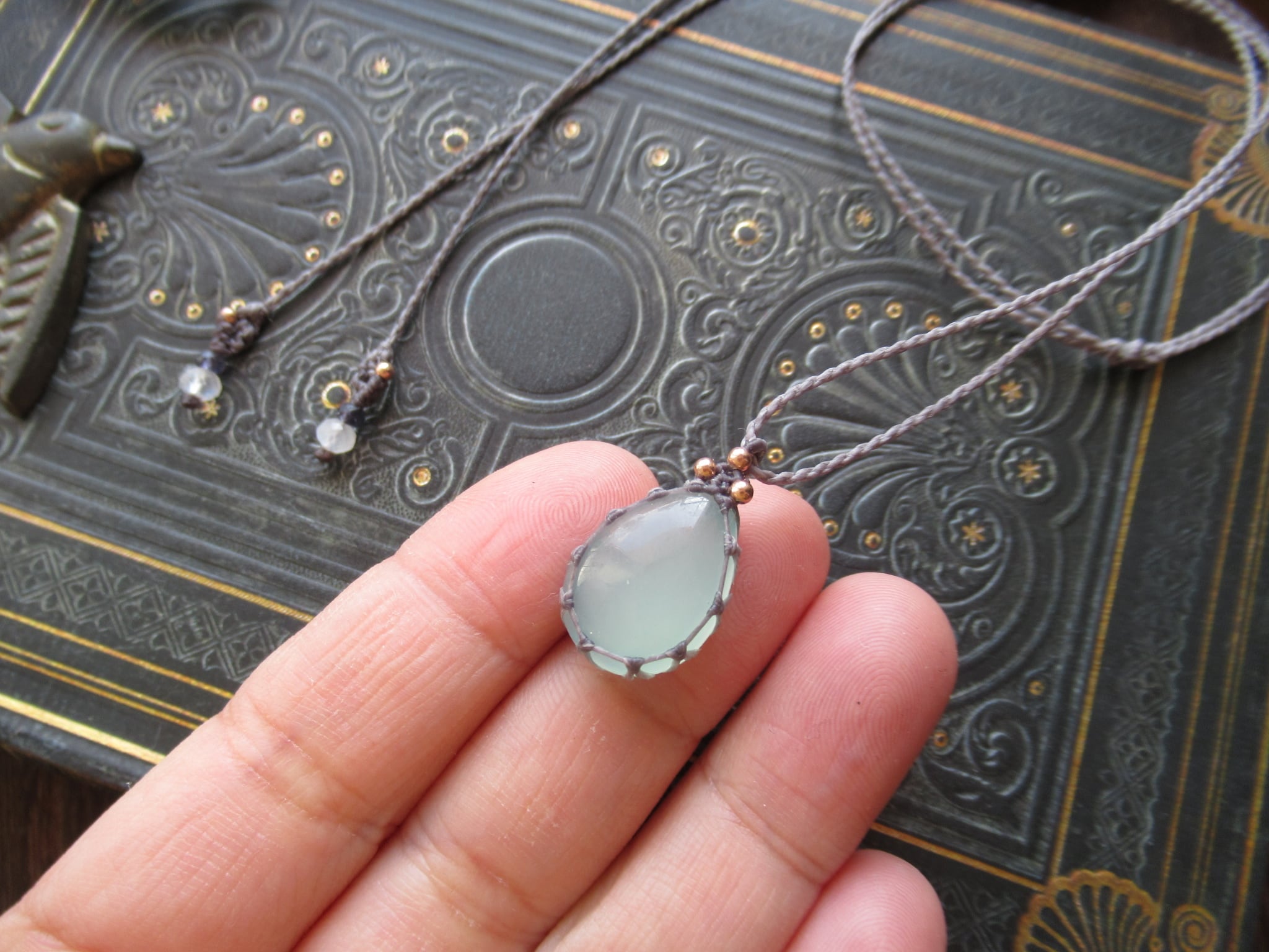 ぷっくりとした粒感がとても美しいシーブルーカルセドニーをシンプルなペンダントにお仕立ていたしました。