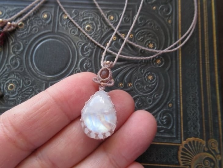 レインボームーンストーンとオレンジピンクトルマリンのペンダント