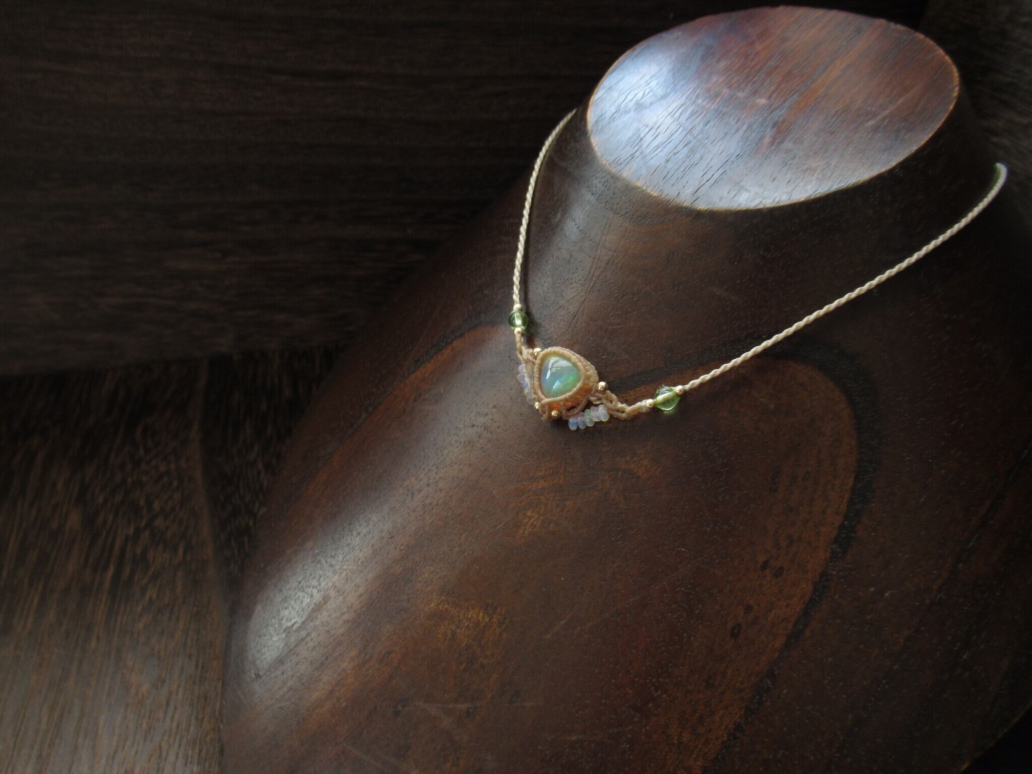 アクセントに14kgf、エチオピアオパールのビーズ、プレナイトをあしらい上品でぱっと目を引くデコルテから雰囲気を明るくしてくれるペンダントです。