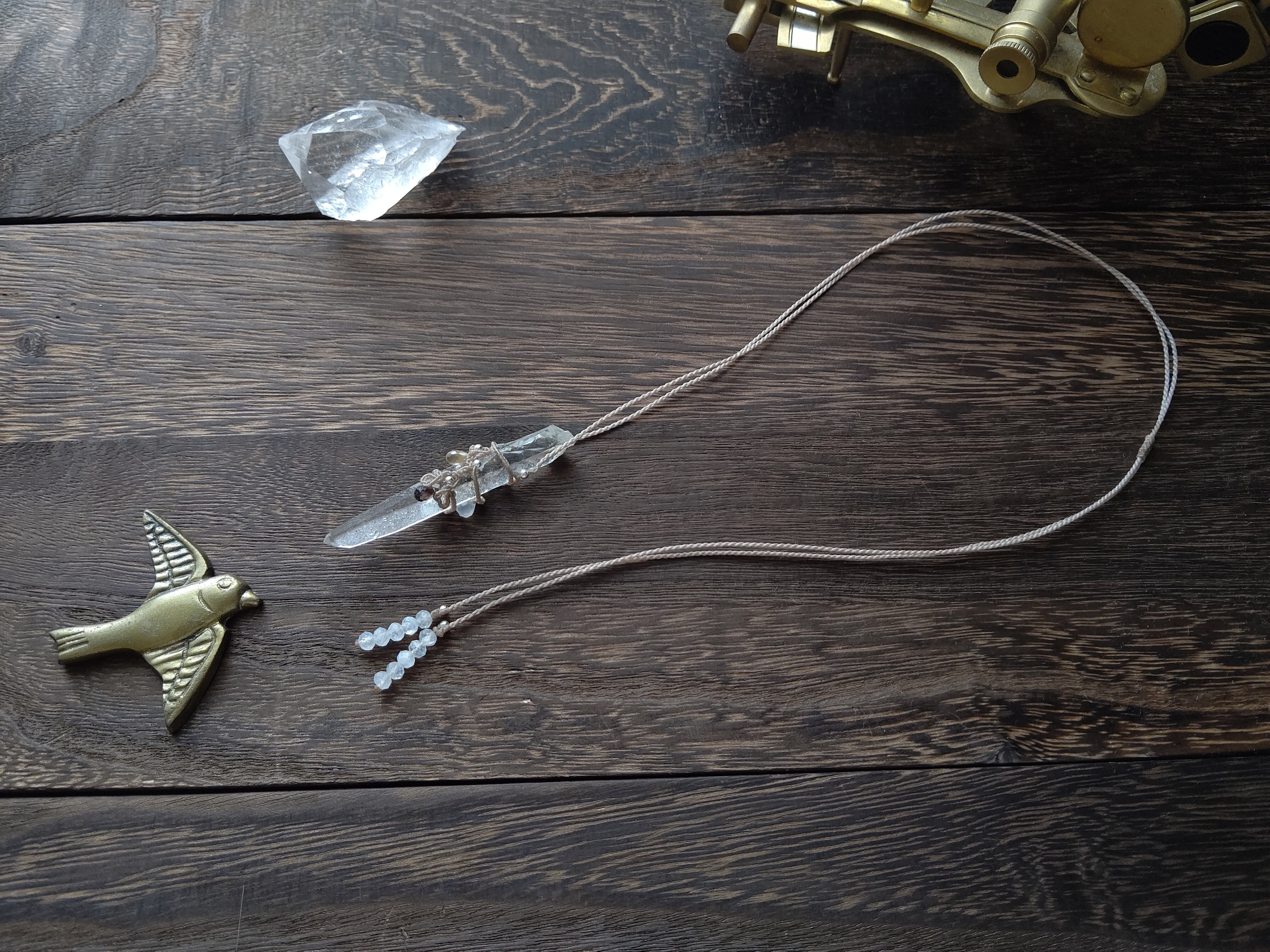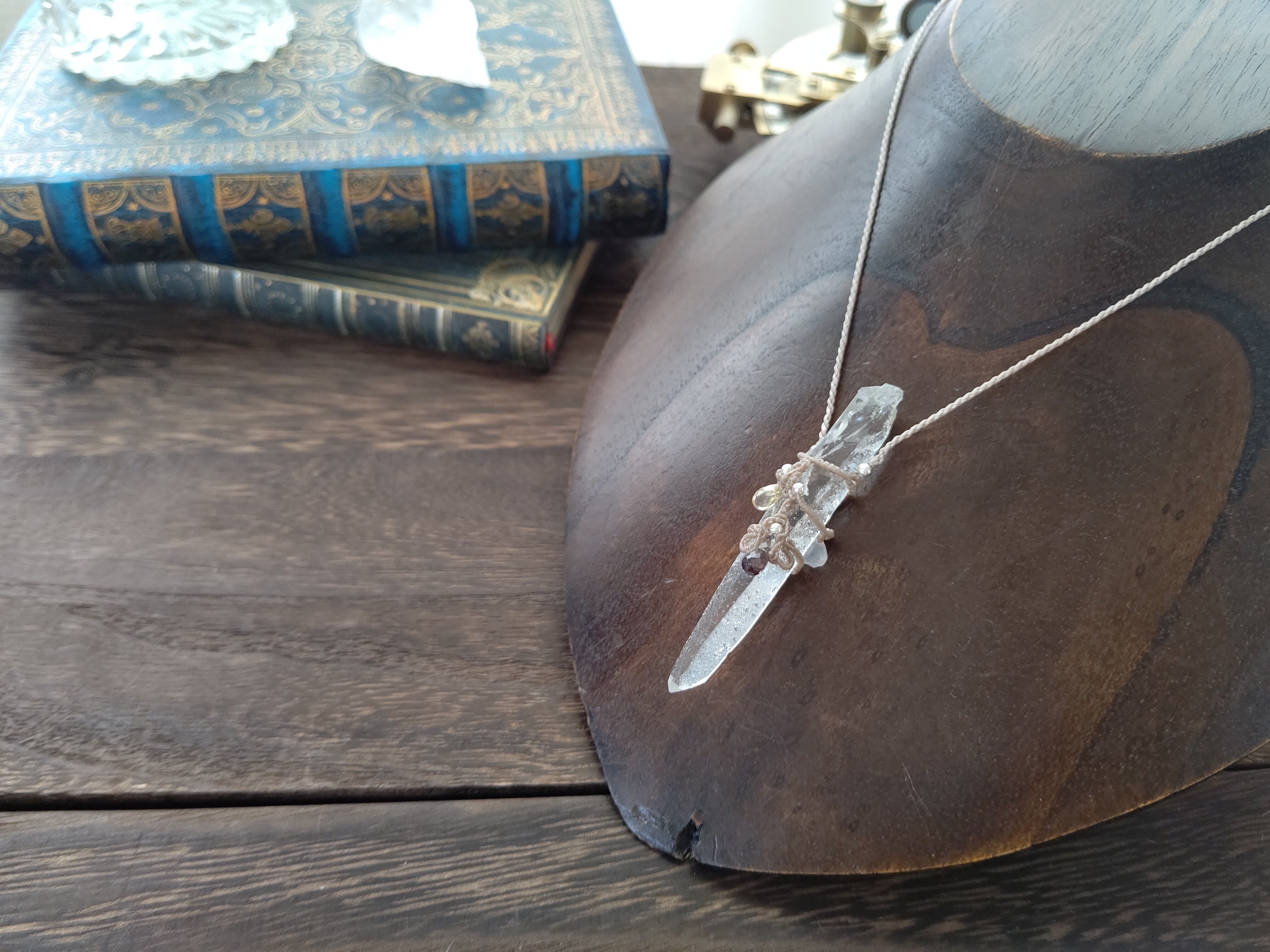 6cmオーバーの結晶がとても美しいゼッカデソウザ産水晶のポイントをタンザナイトと組み合わせてペンダントに仕立てました。