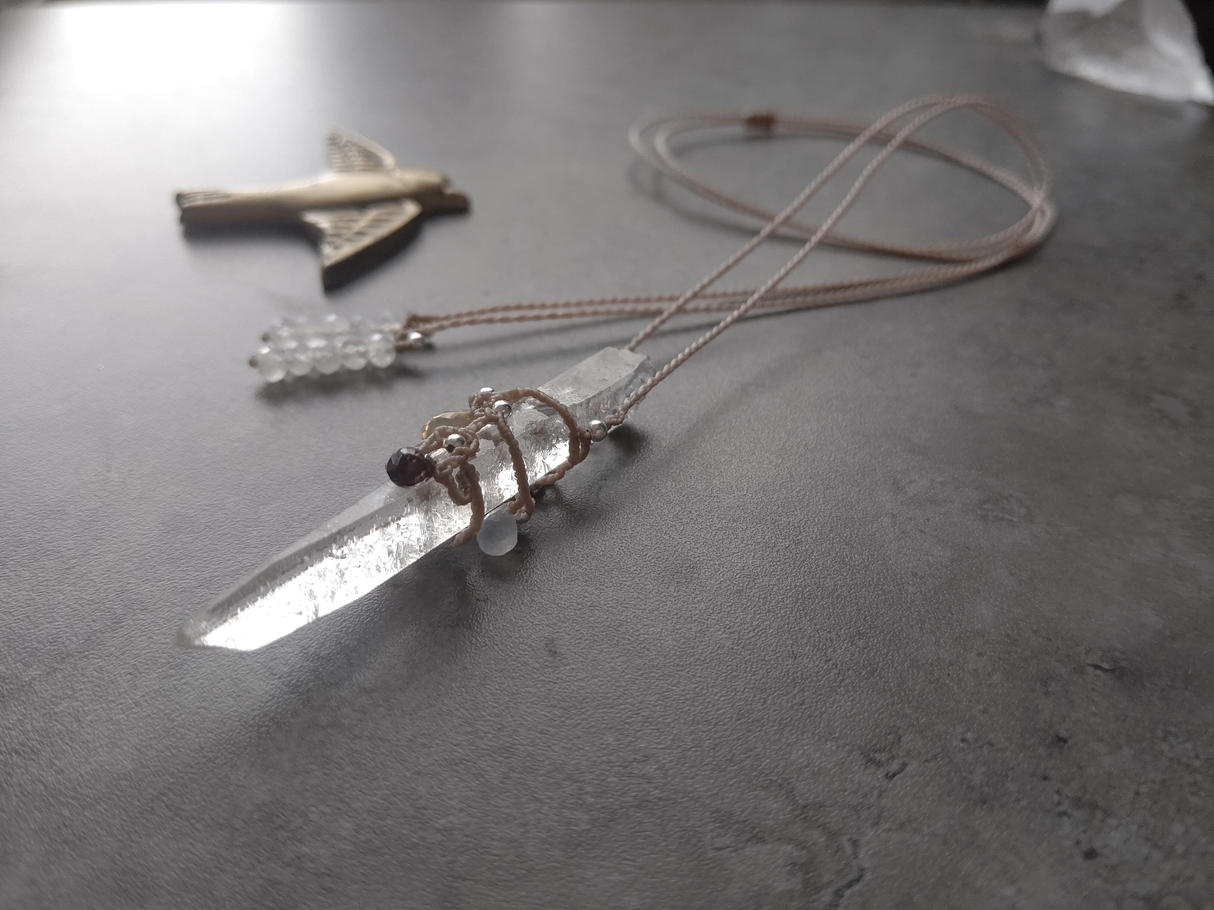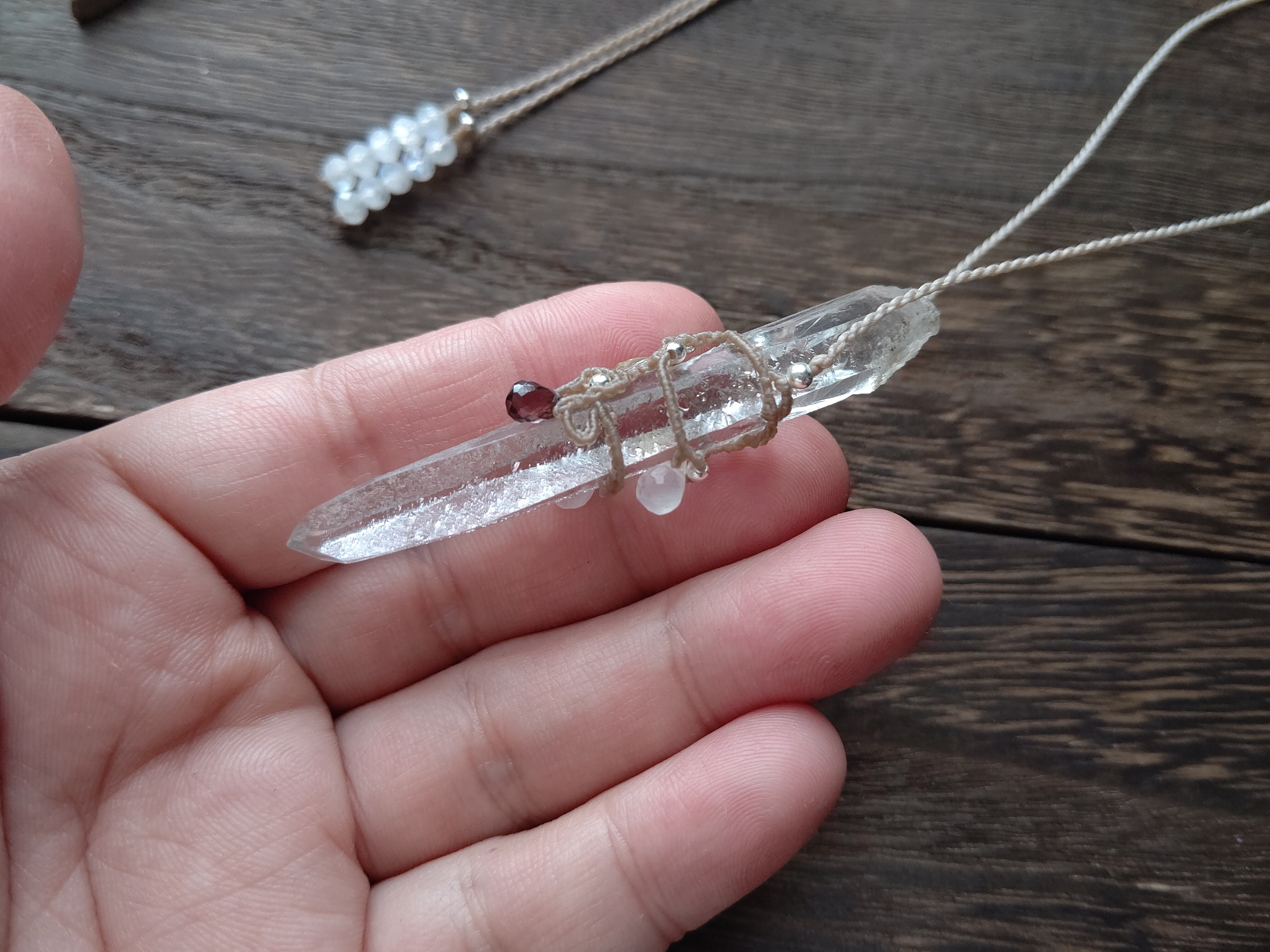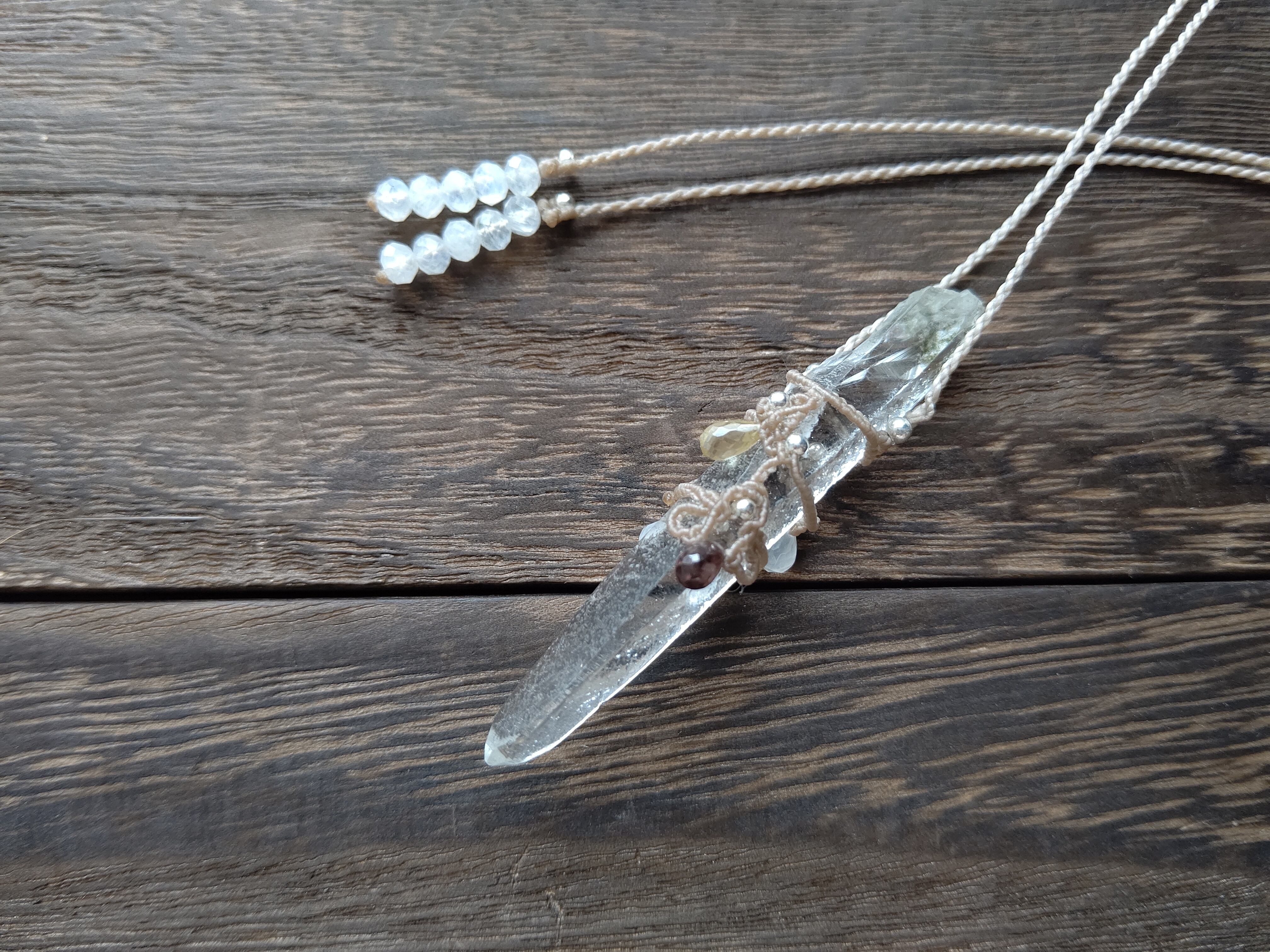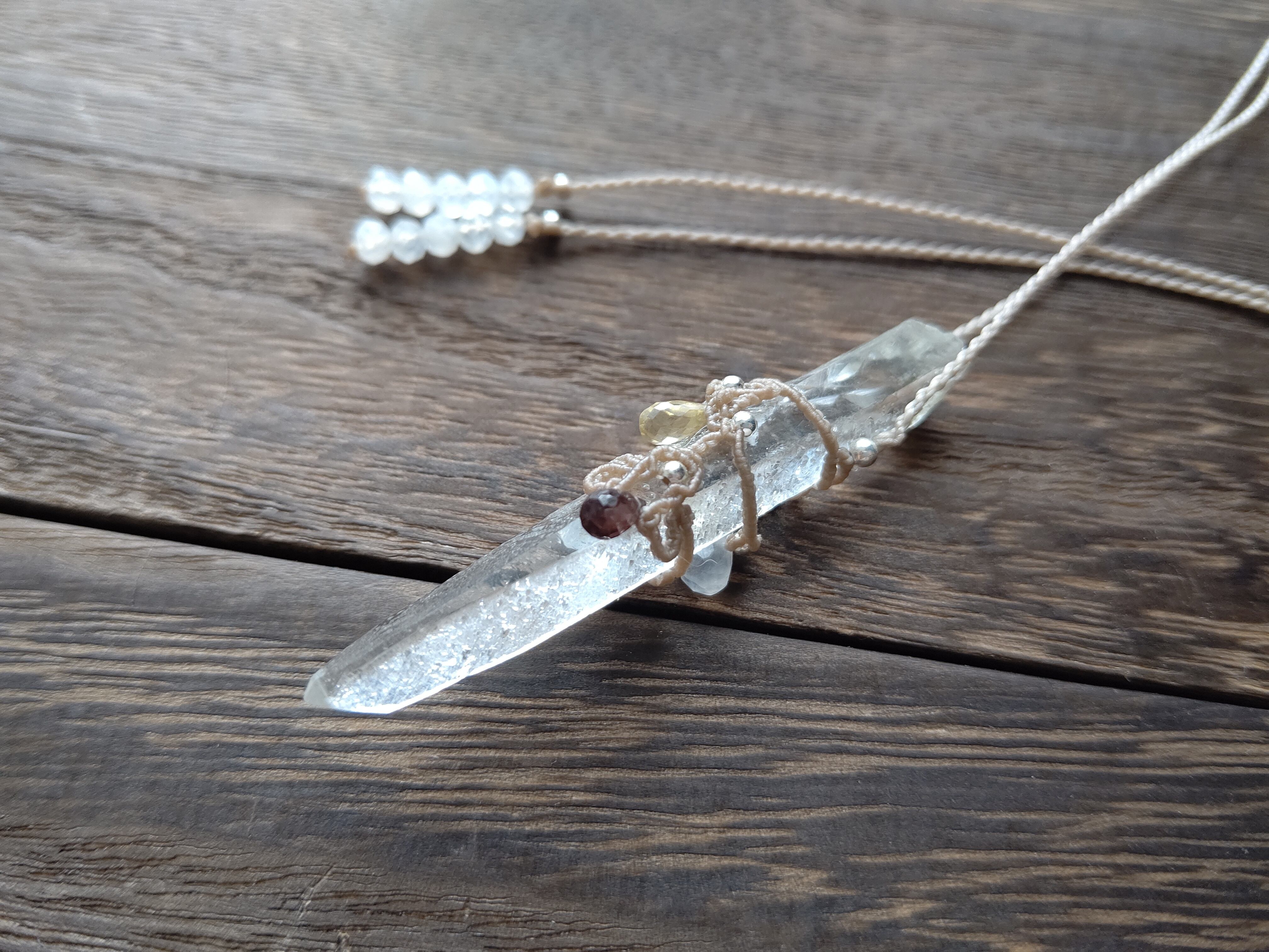 ≪送料無料≫ゼッカデソウザ産クリスタルポイントのマクラメペンダント