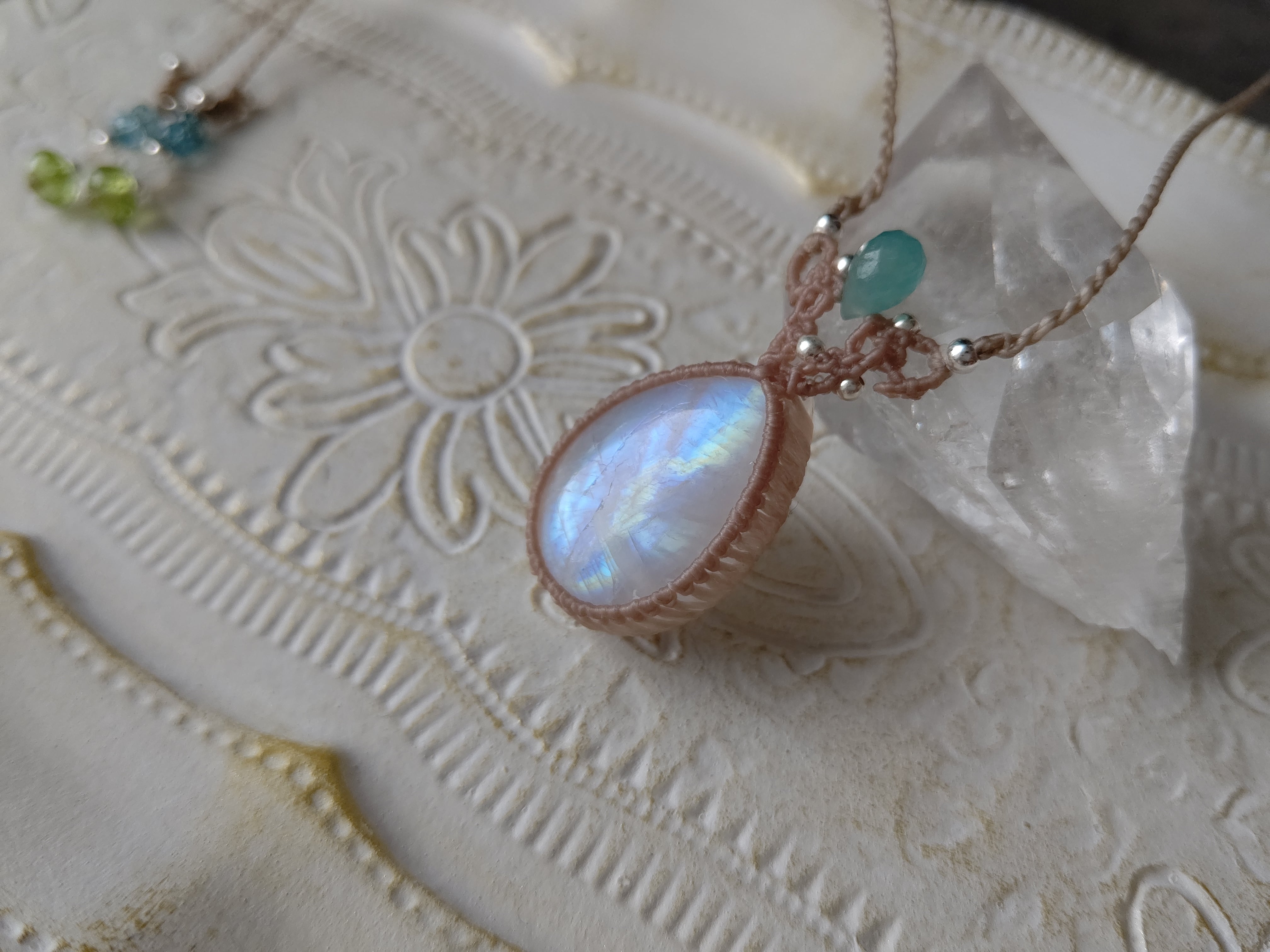 大粒レインボームーンストーン×グランディディエライトのペンダント