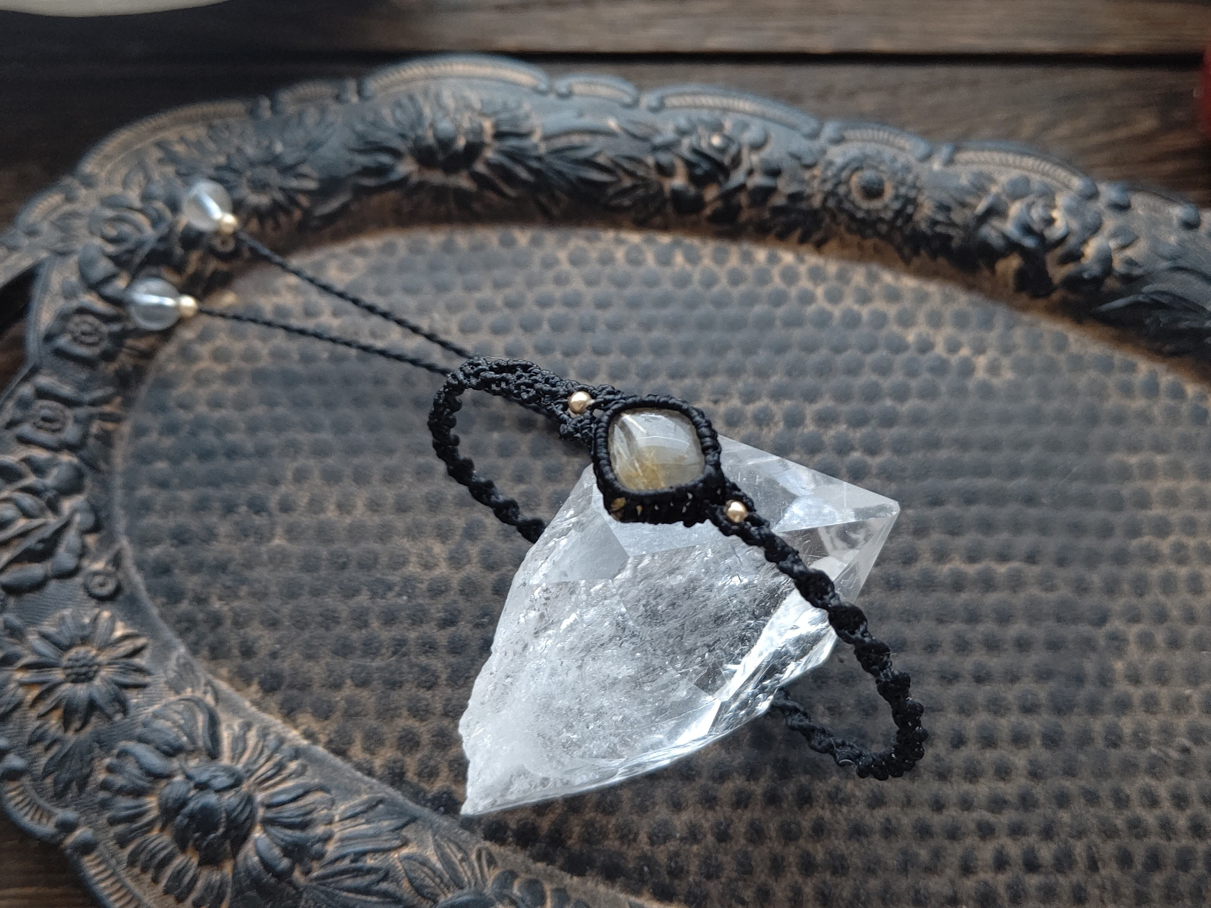 スクエアタイプのちいさなルチルクォーツをシンプルなペンダントに仕立てました。