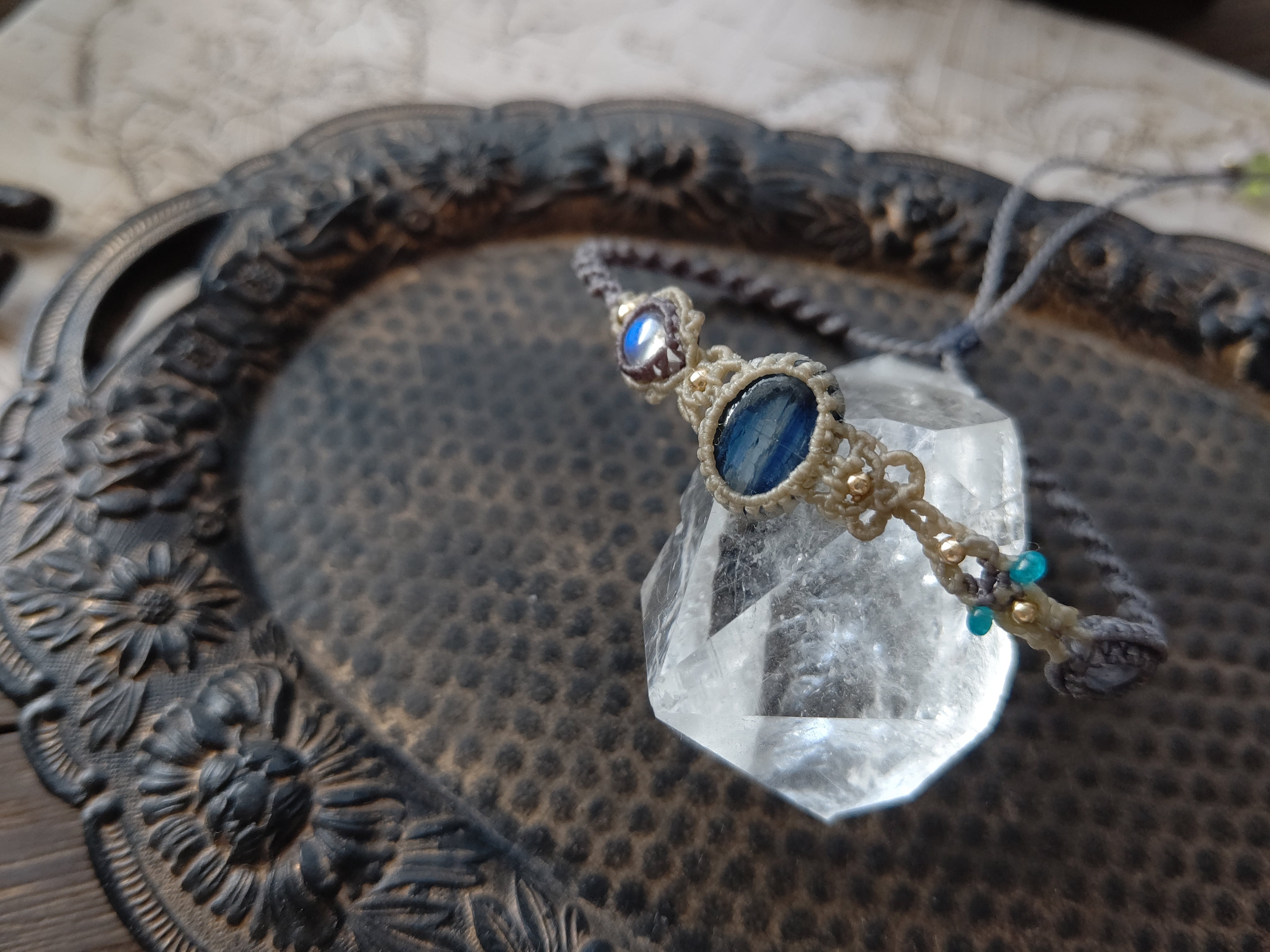 ネパール産カイヤナイト×ブルームーンストーンのマクラメブレスレット