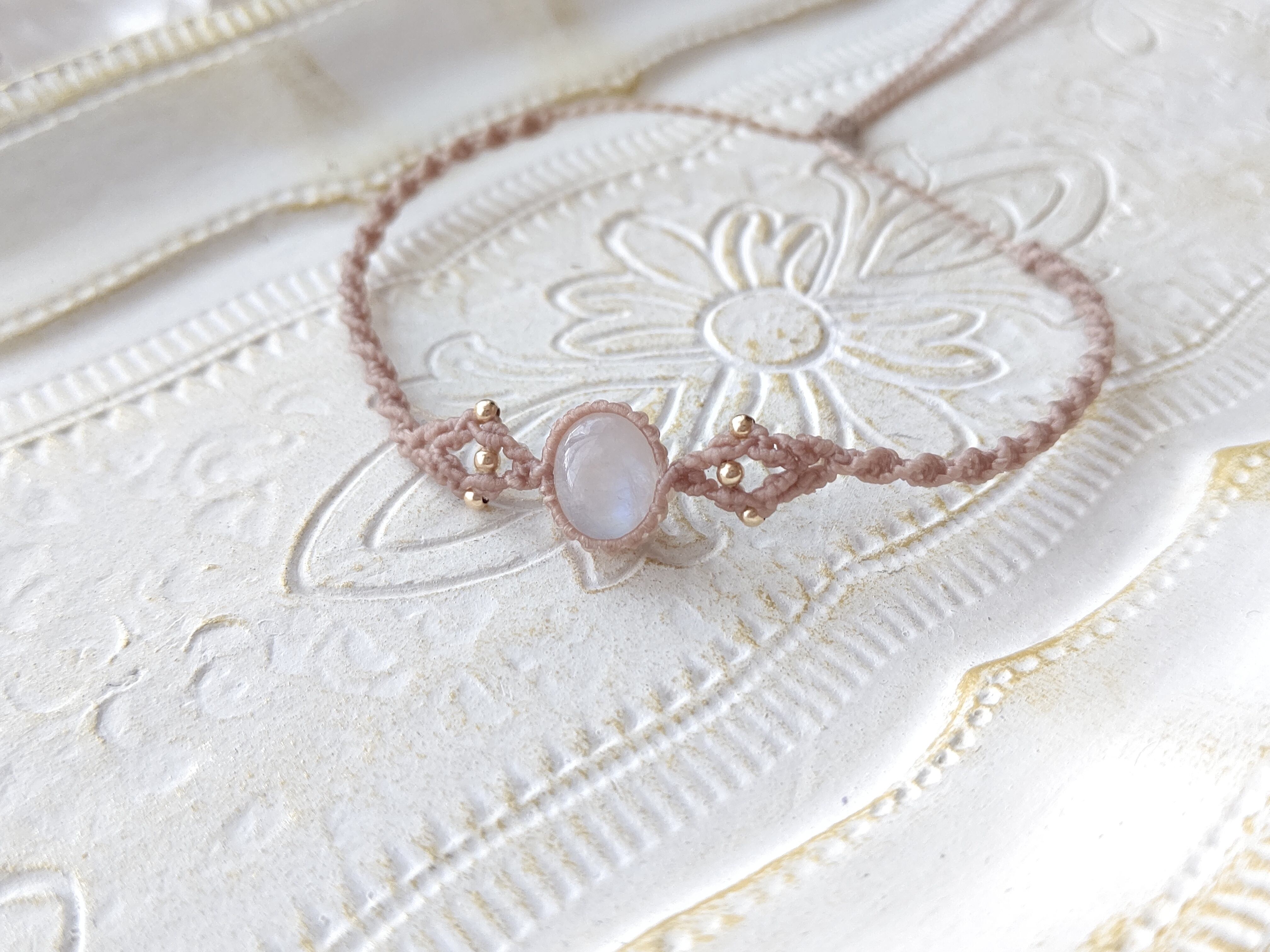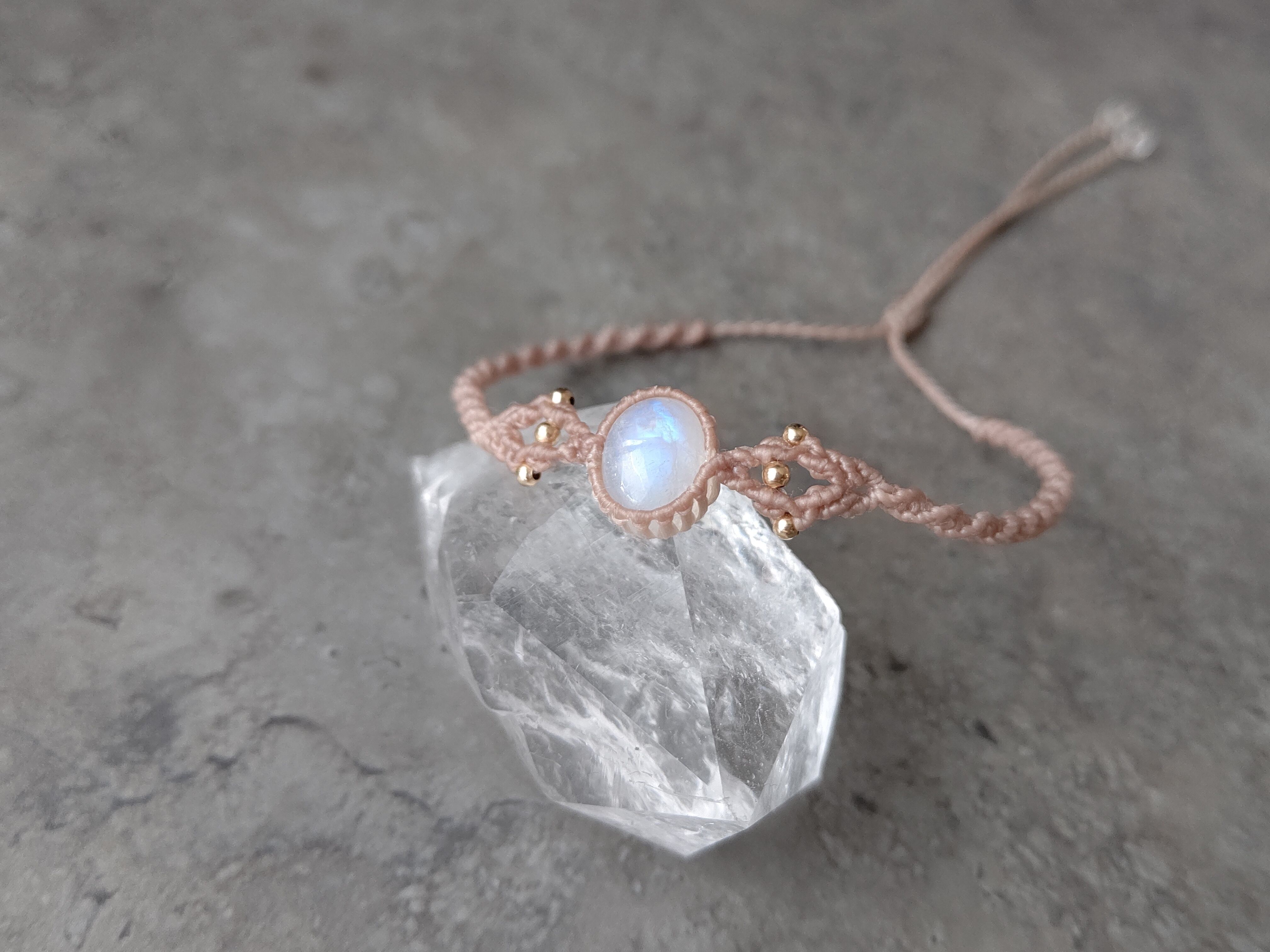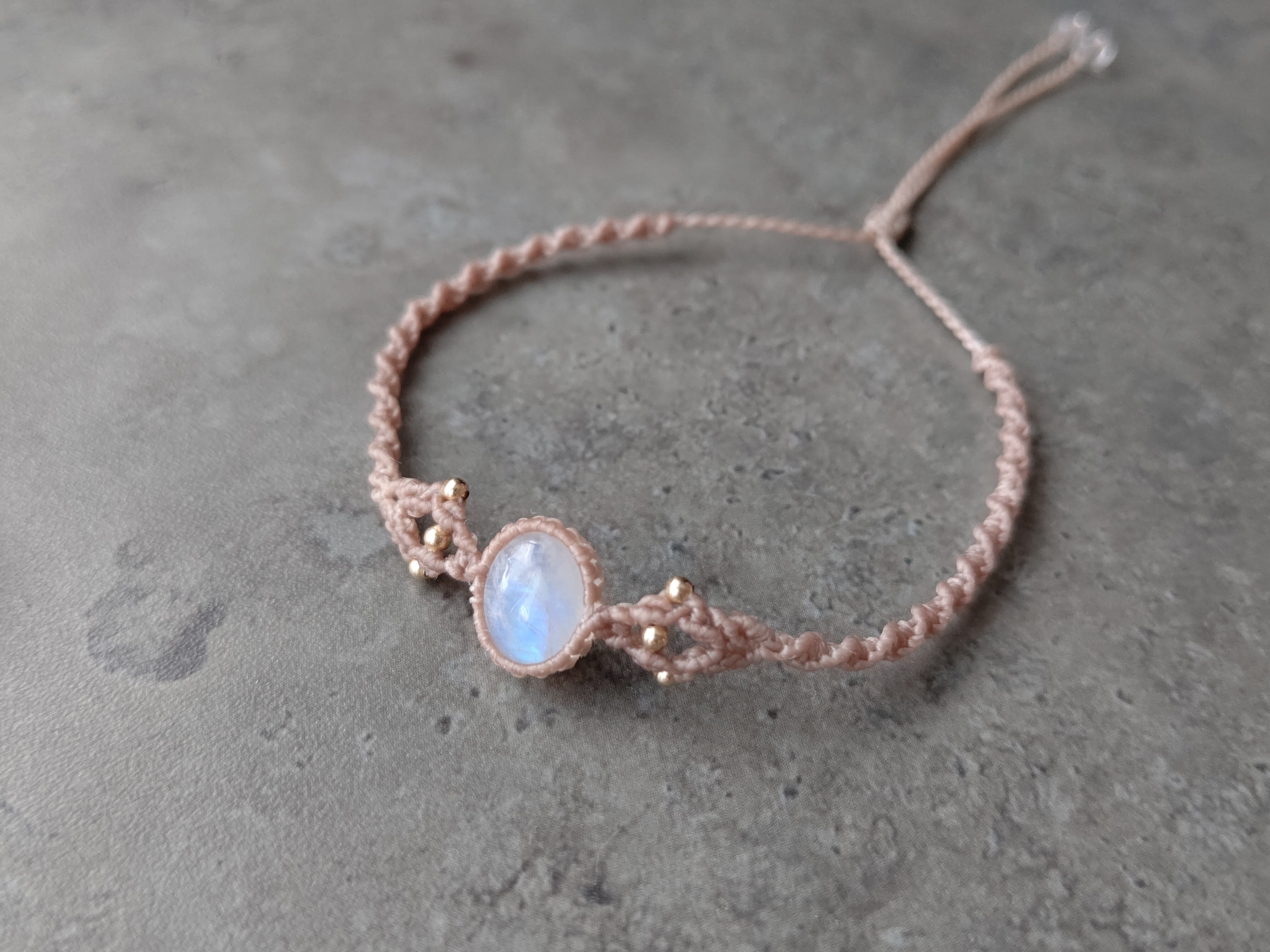 レインボームーンストーンのマクラメブレスレット