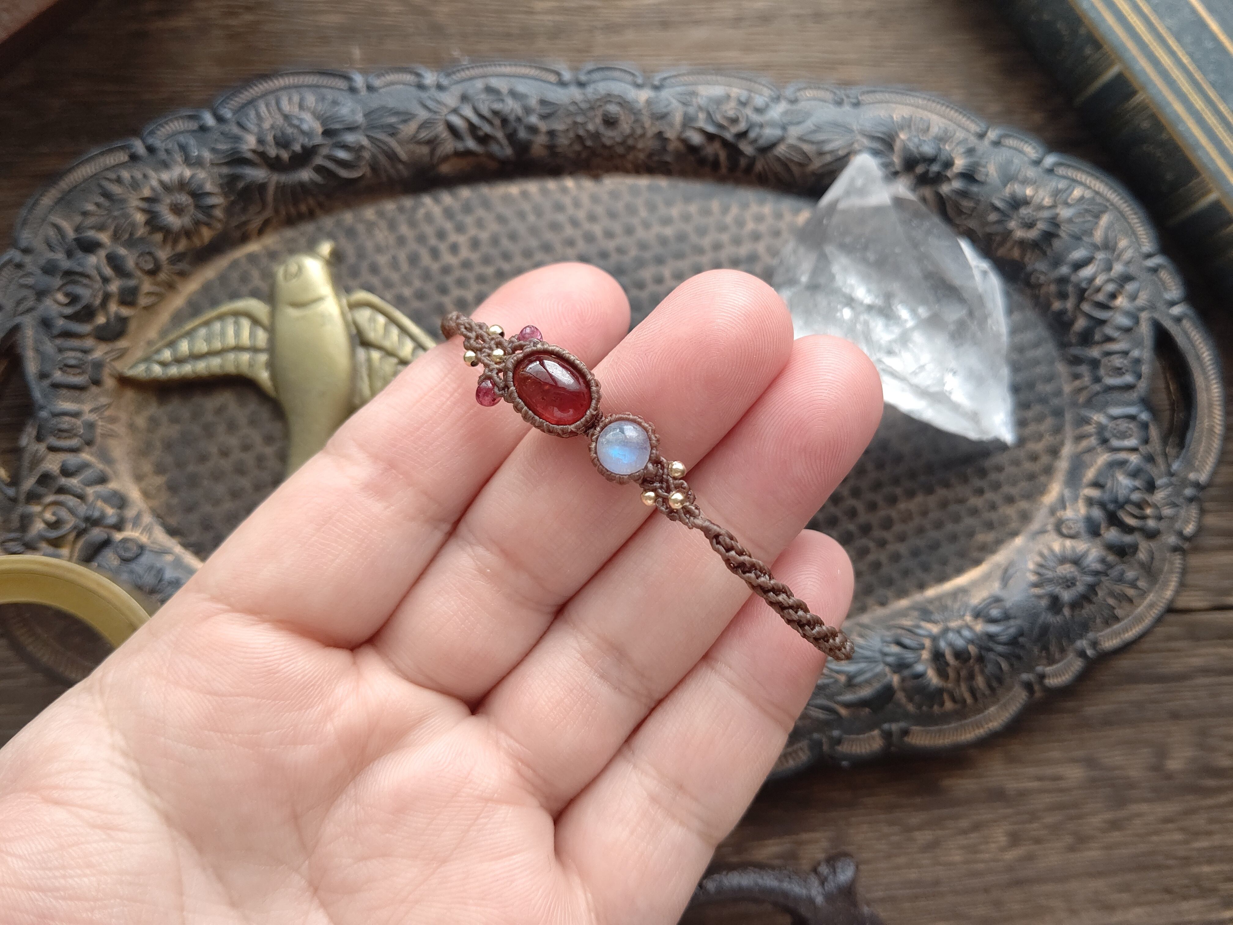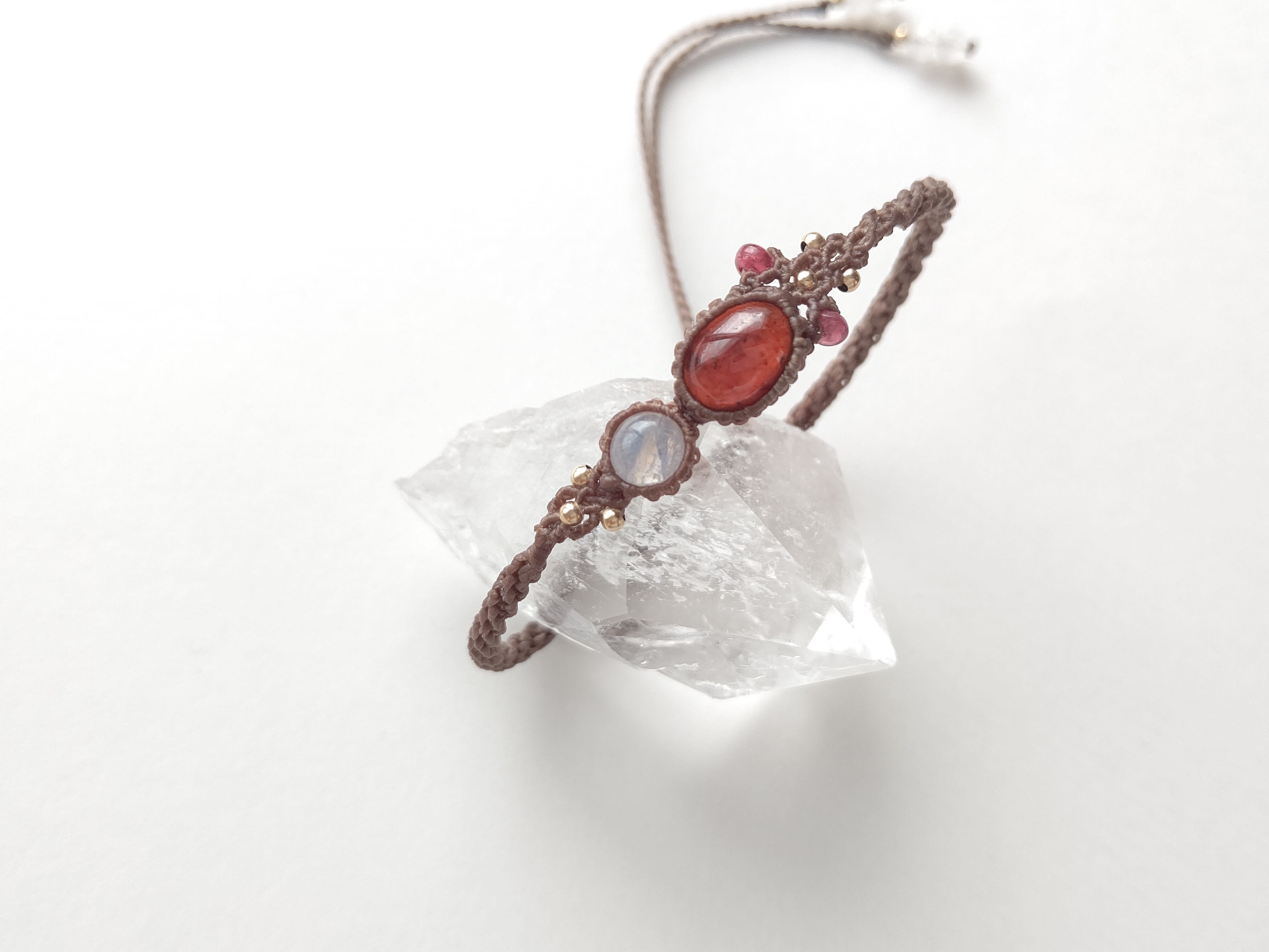 スピネル×ヘソナイトガーネットとブルームーンストーンのブレスレット