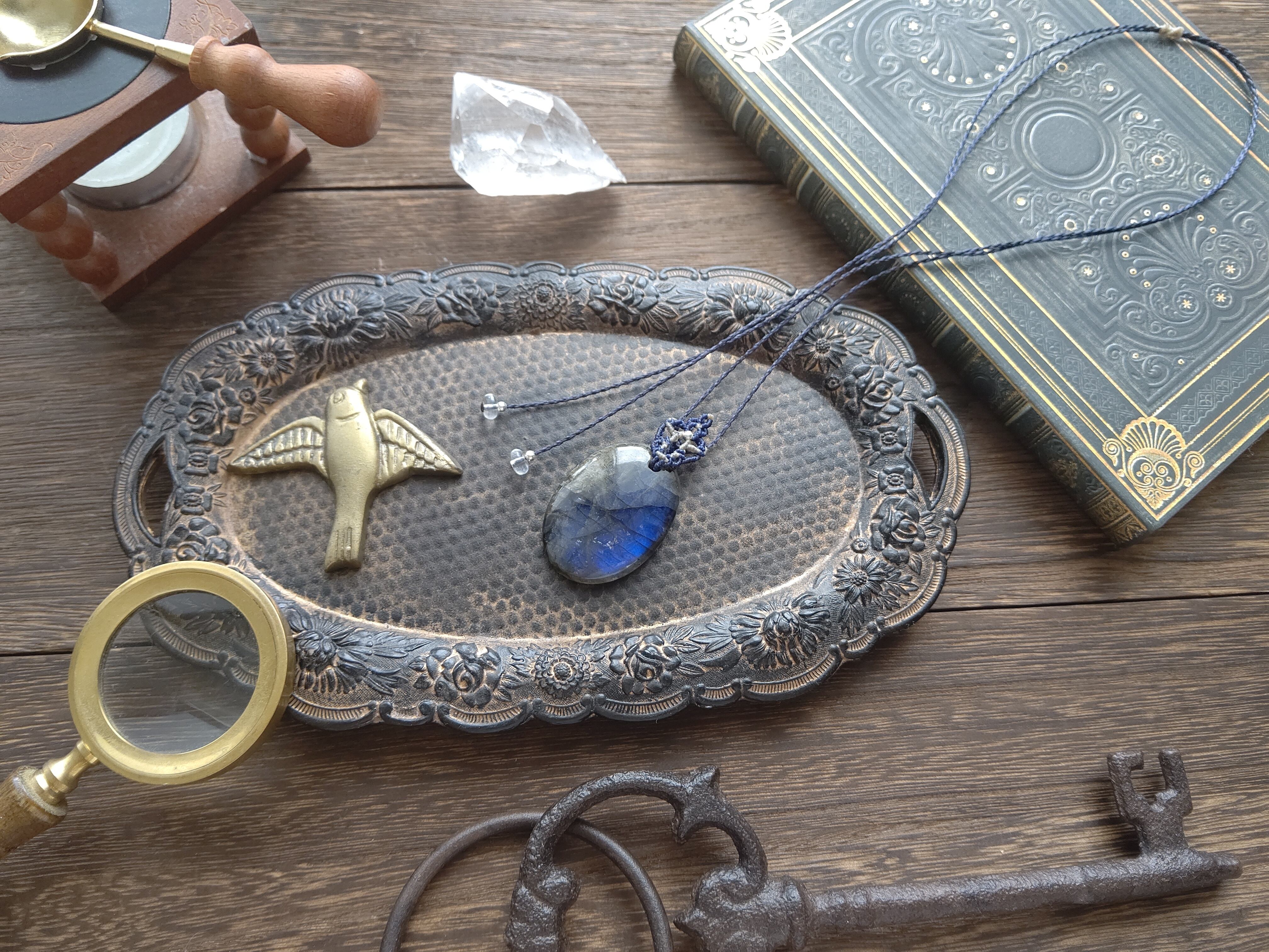 大粒のカナダ産のブルーラブラドライトをシンプルなペンダントに仕立てました。