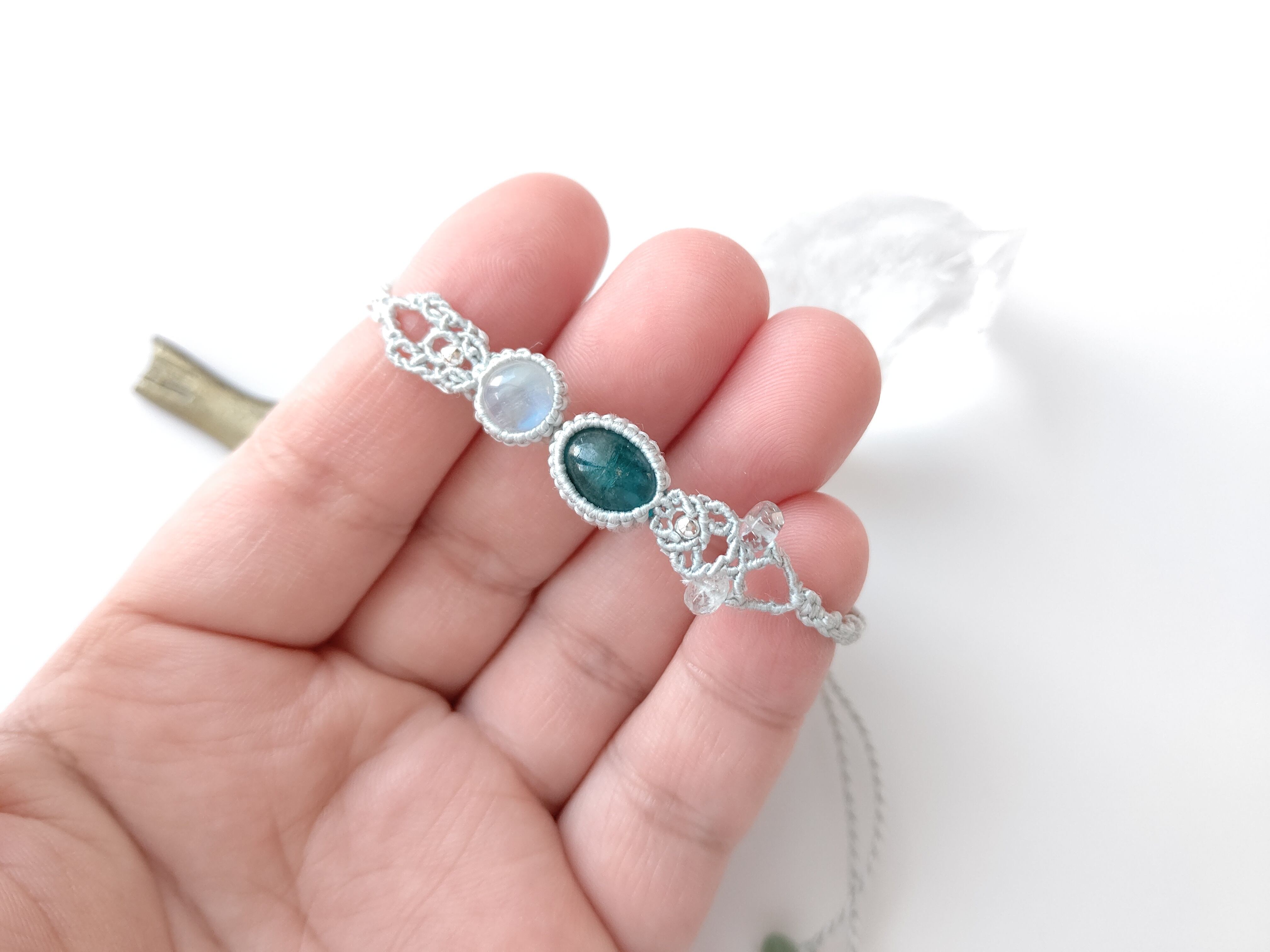 ブルーグリーンアパタイト×ブルームーンストーン≪silk macrame bracelet≫