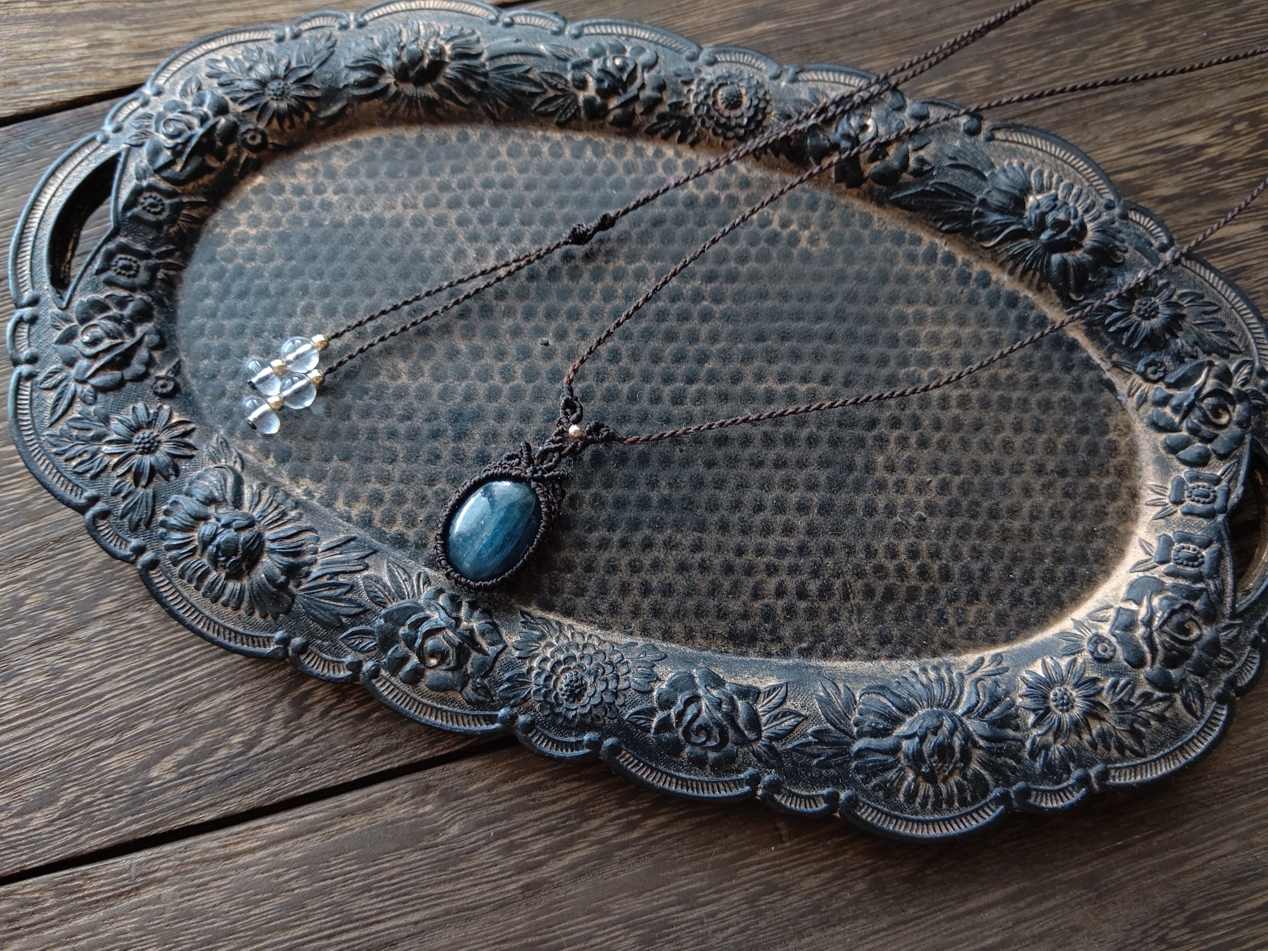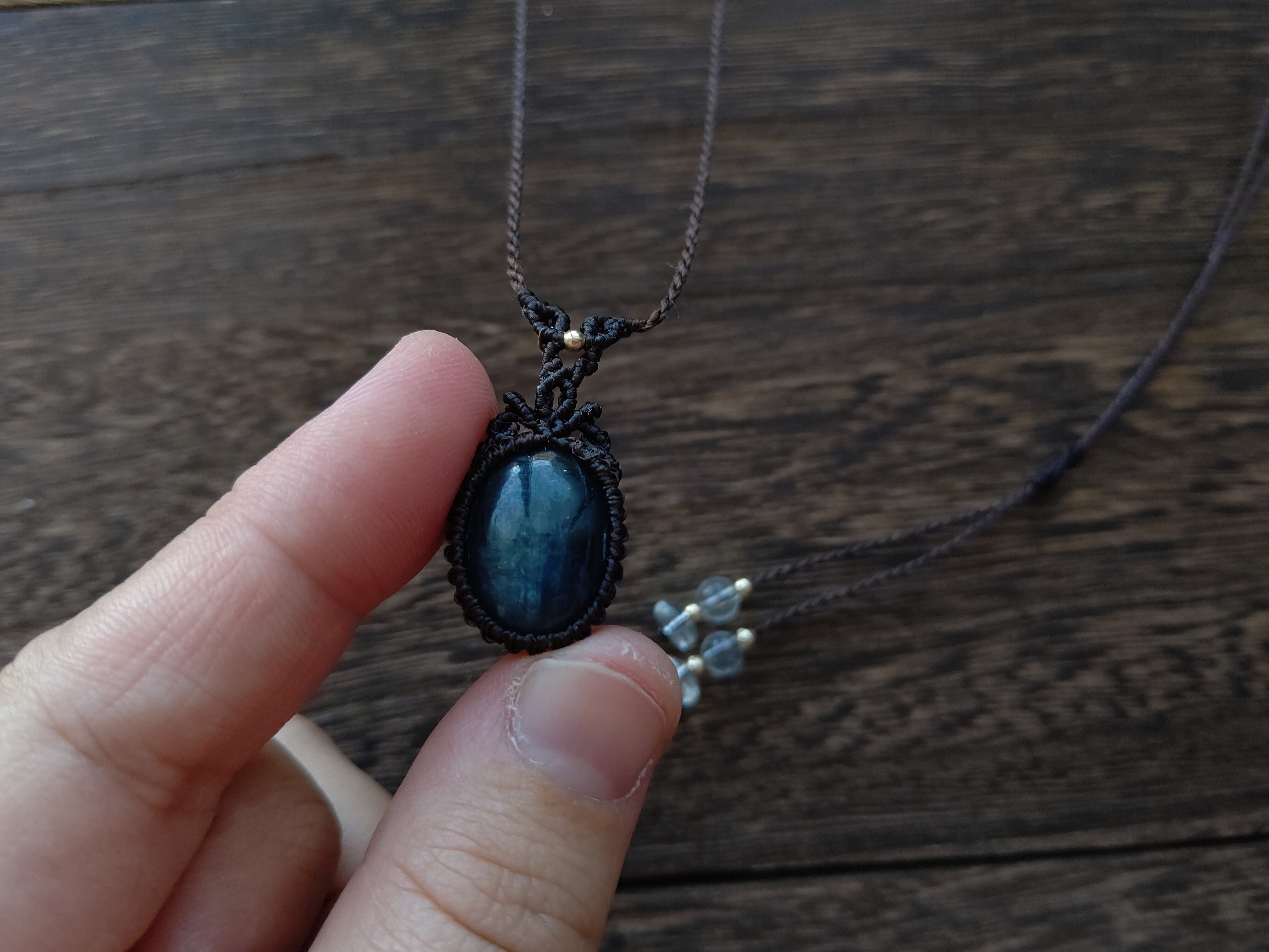 大粒ネパール産カイヤナイトのマクラメペンダント