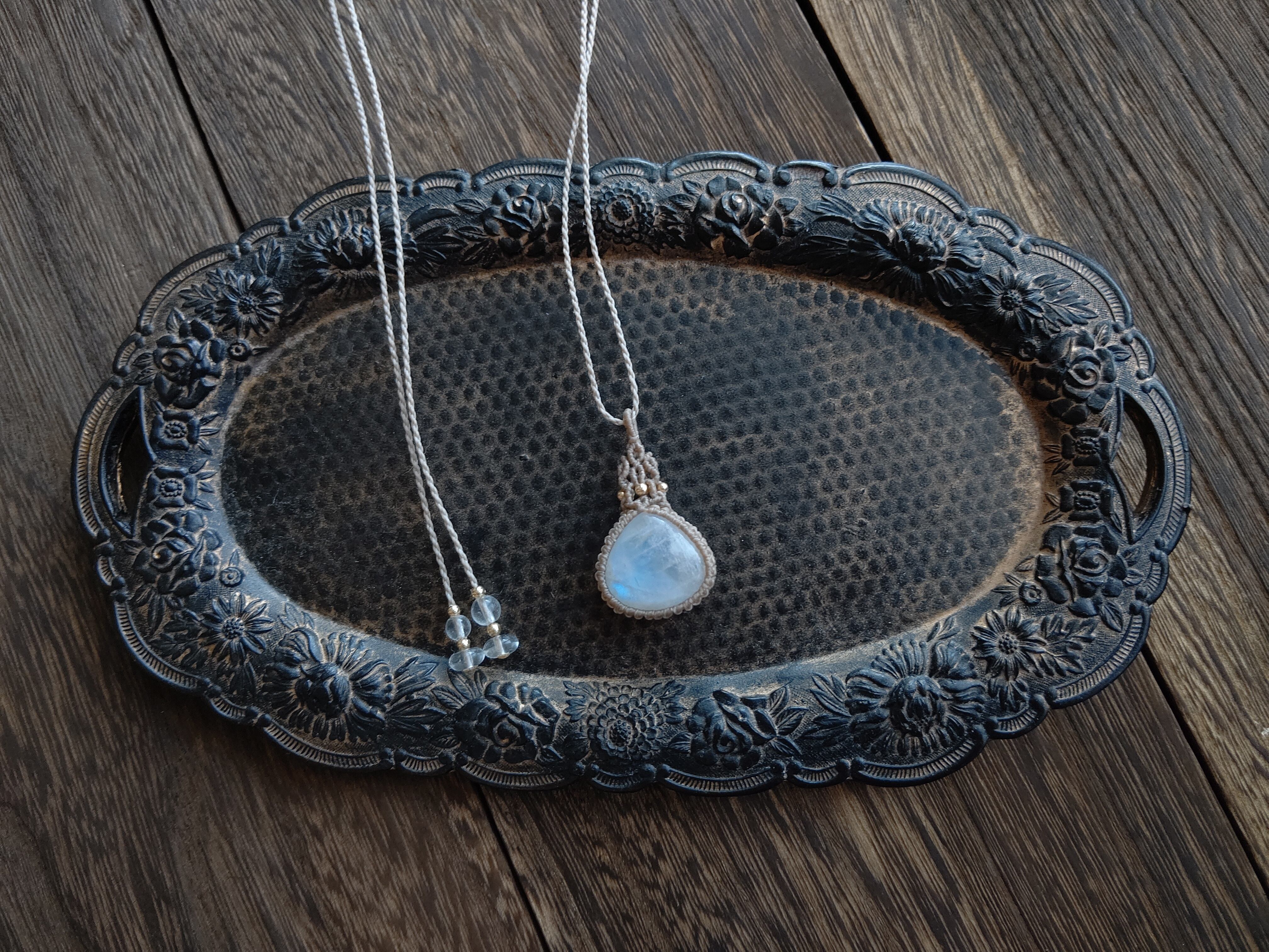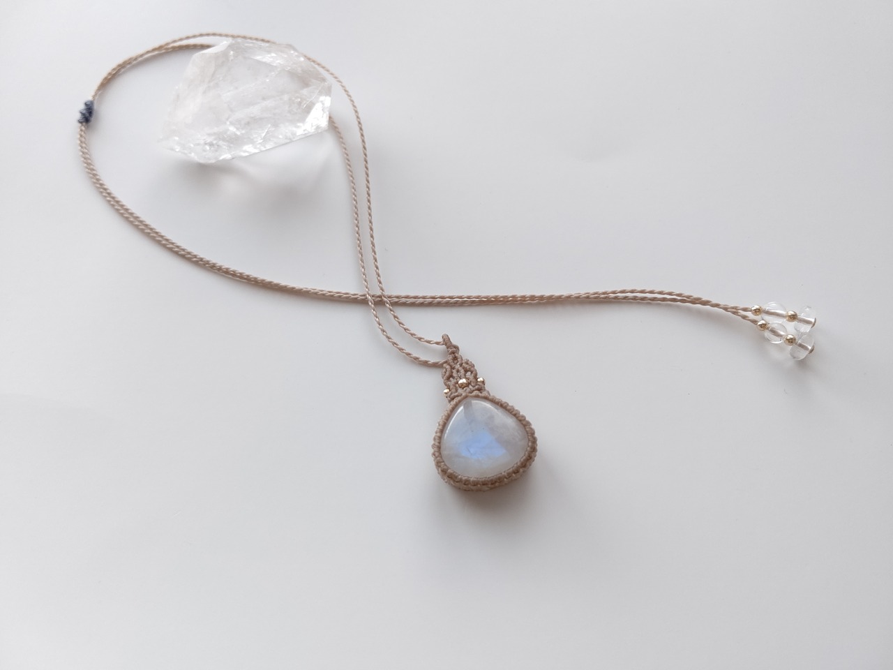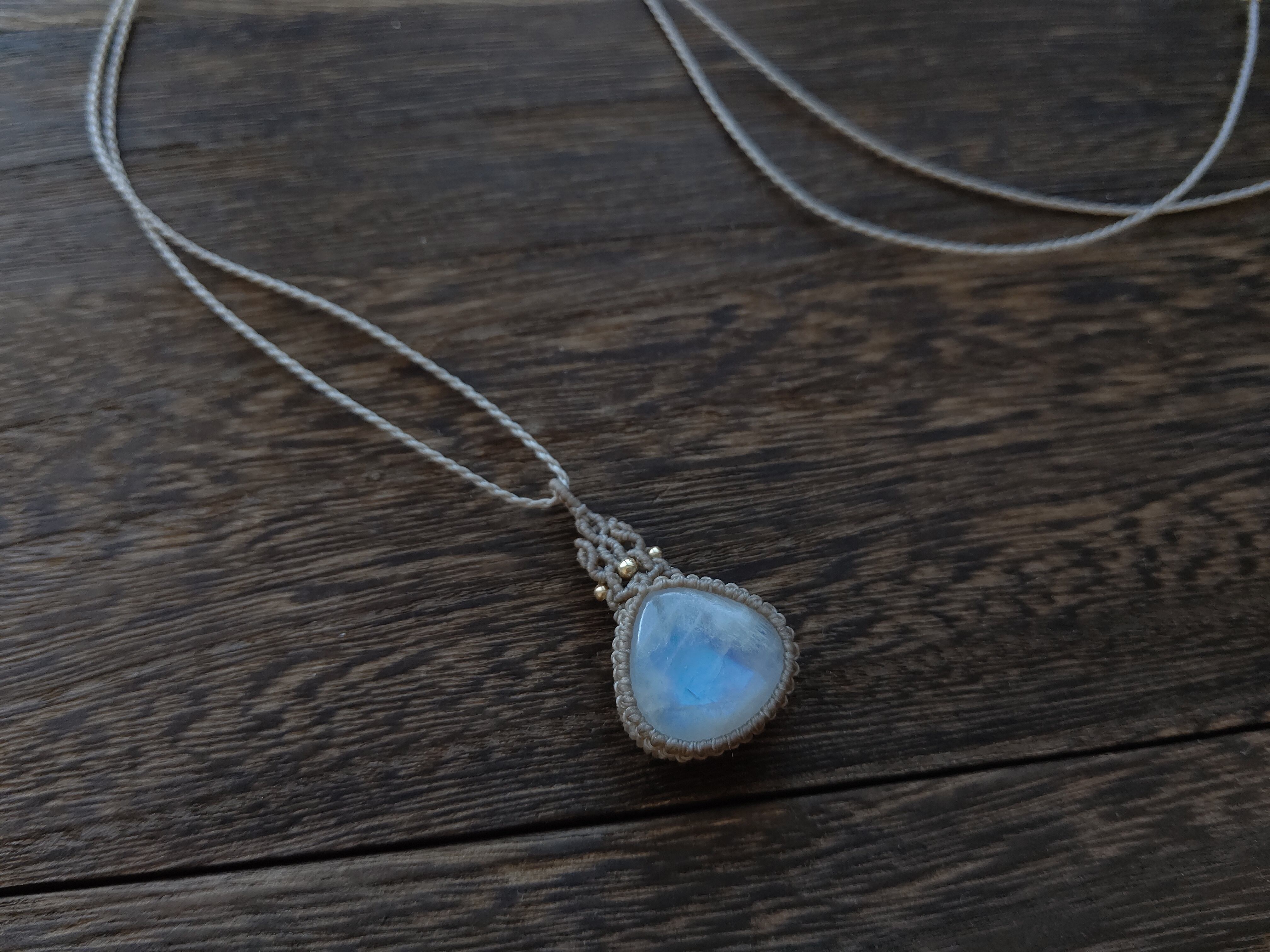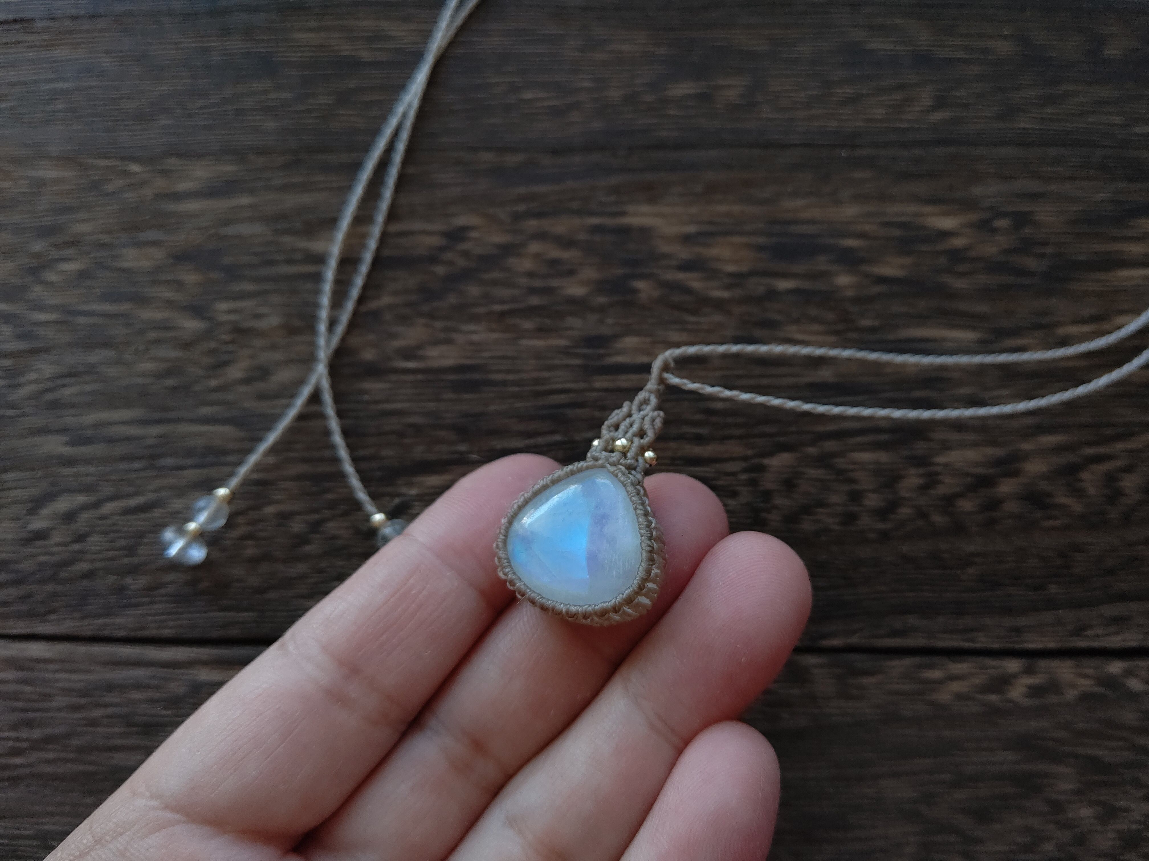 大粒でマロン型のホワイトラブラドライトをシンプルなペンダントに仕立てました。