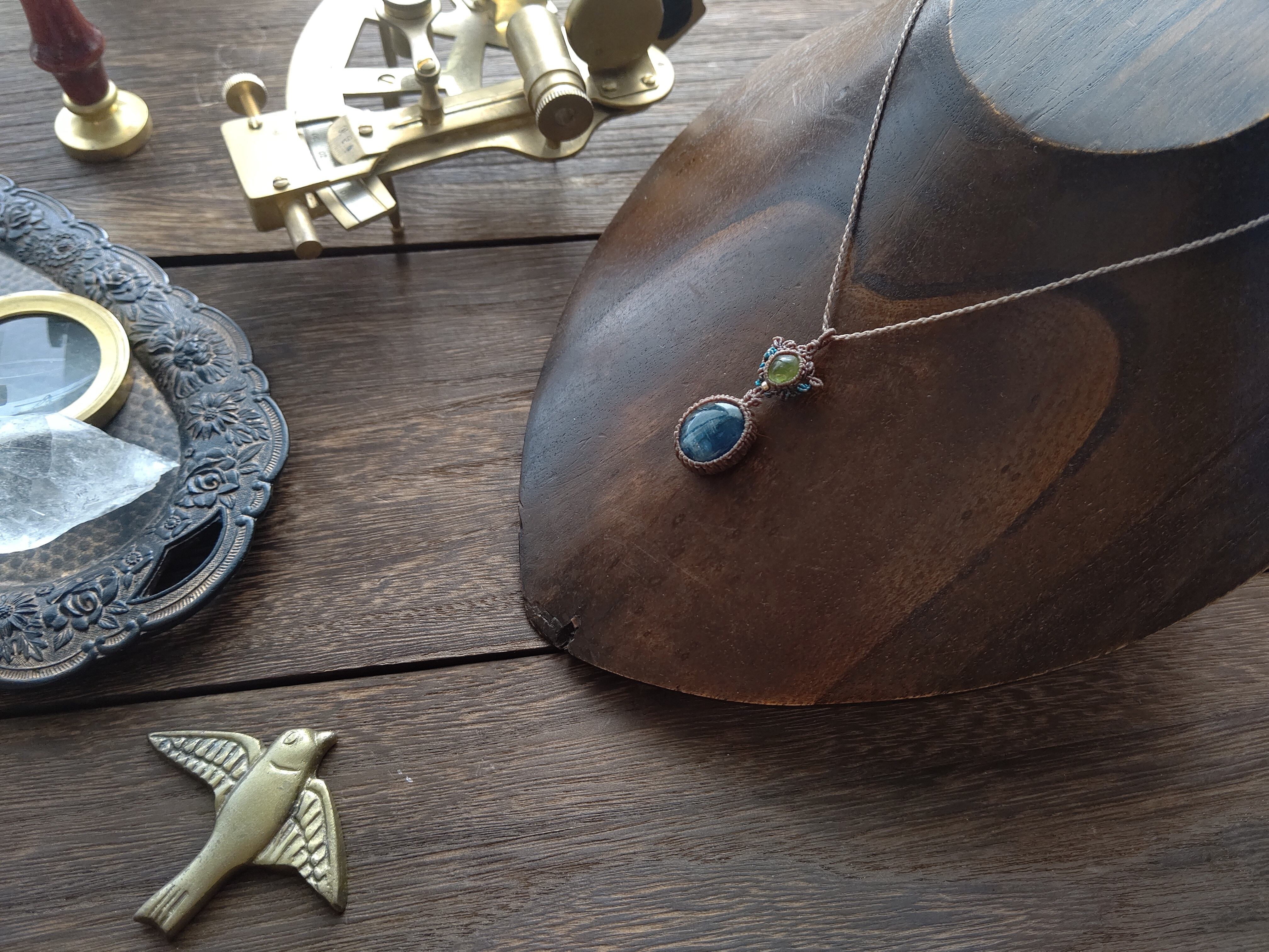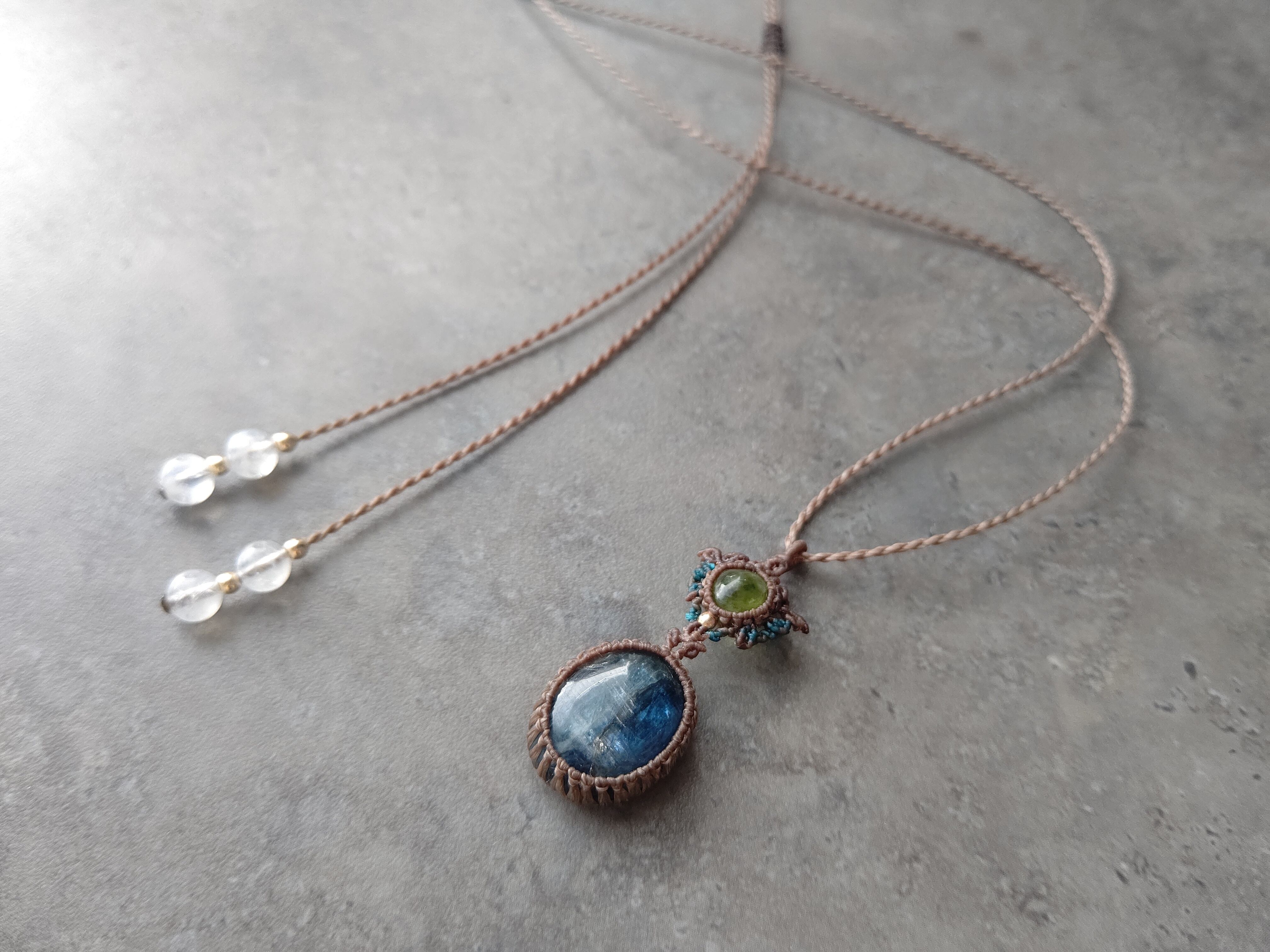 ペリドット×ネパール産カイヤナイトのマクラメペンダント