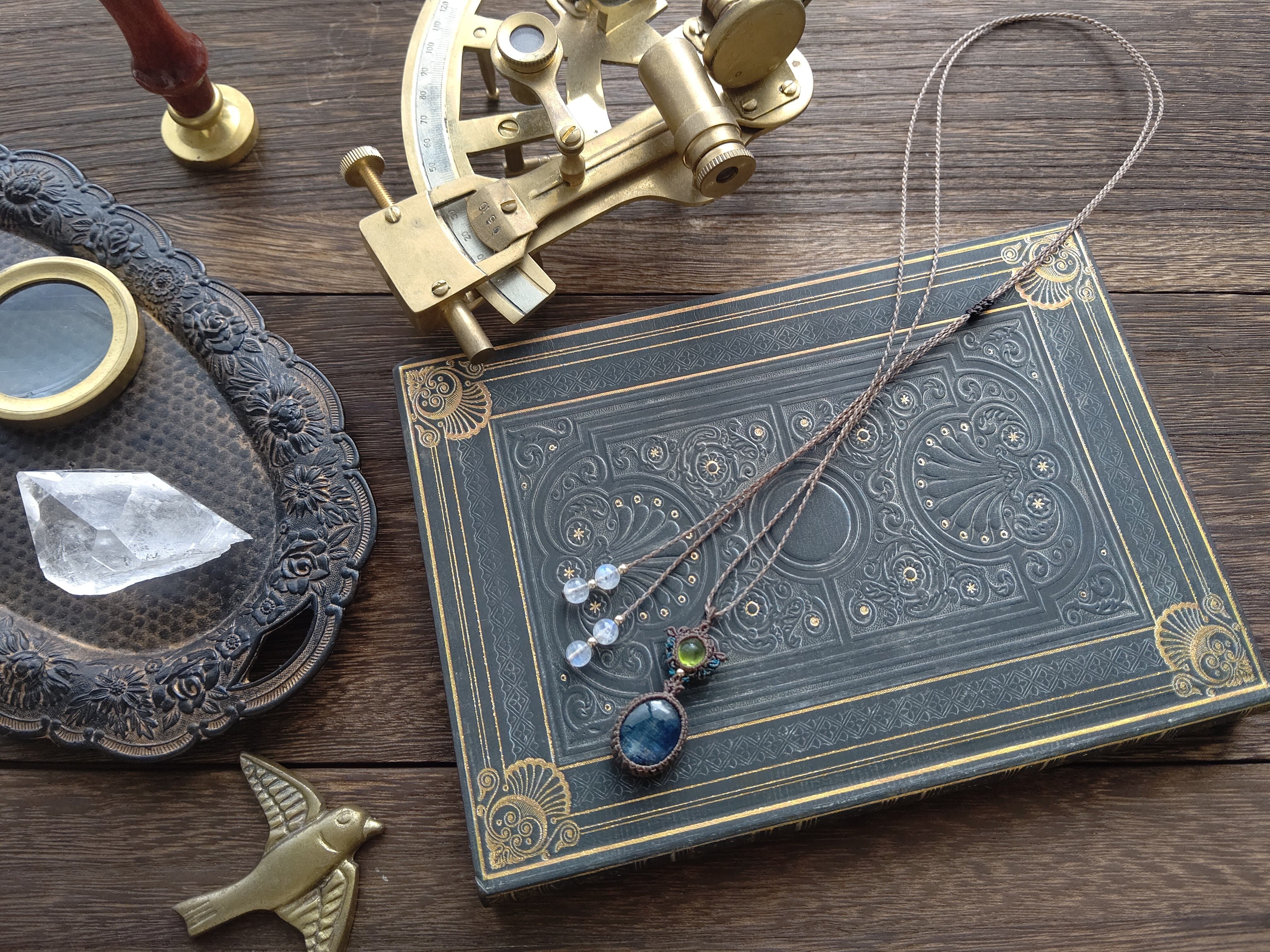 カイヤナイトは大粒で厚みのあるタイプで、光にかざすと少し透明感のある部分もご覧いただけます。明るいペリドットと落ち着いたカイヤナイトのコントラストが大人っぽく、秋冬のコーディネートのアクセントにおすすめです。