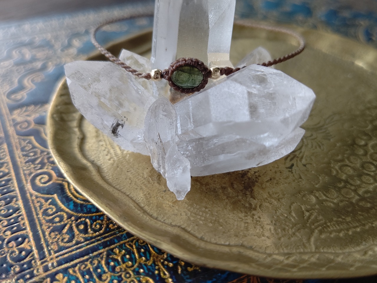 糸色はブラウン、トルマリンのカラーはカーキ色(ライトグリーン)です。
