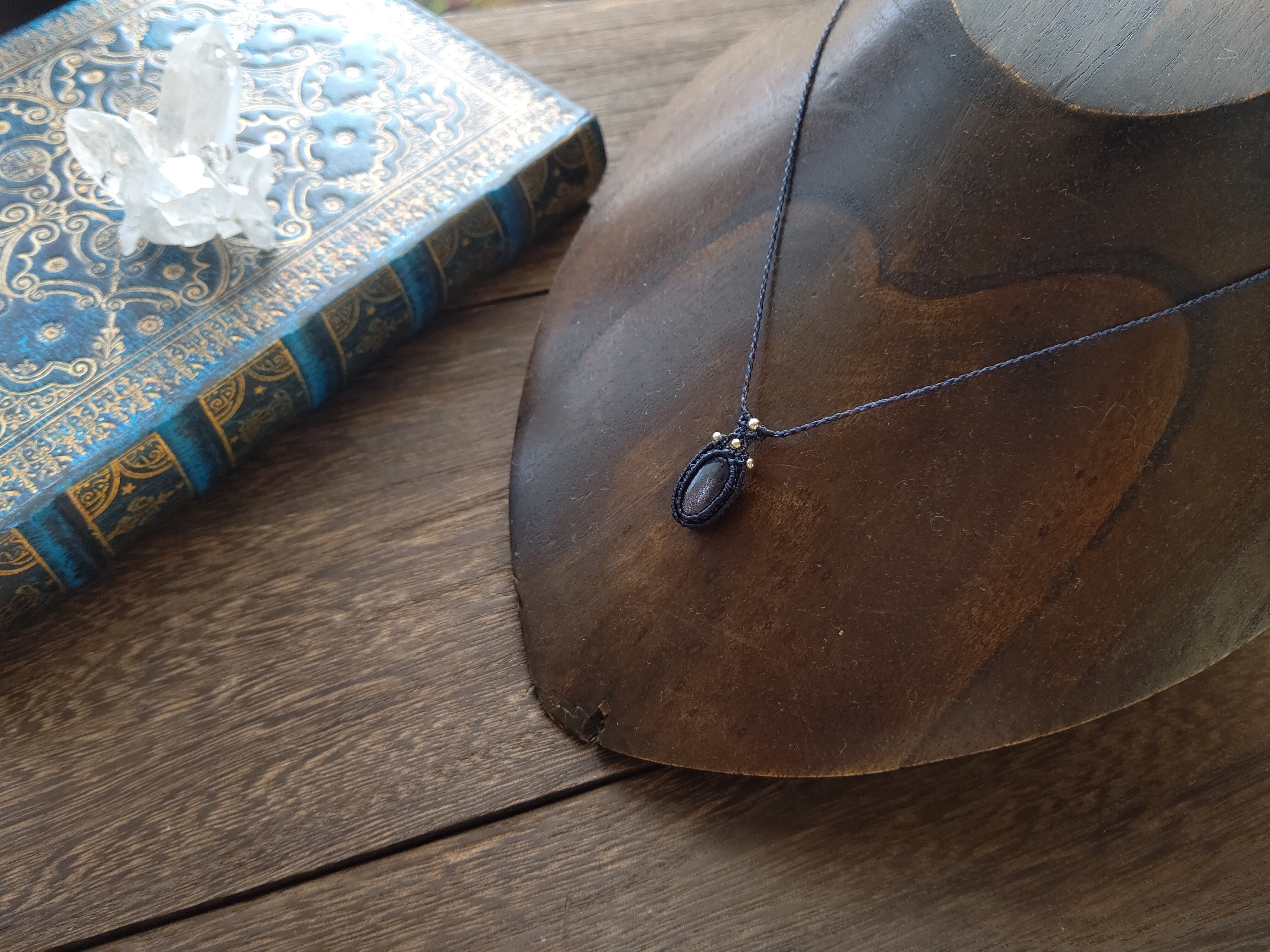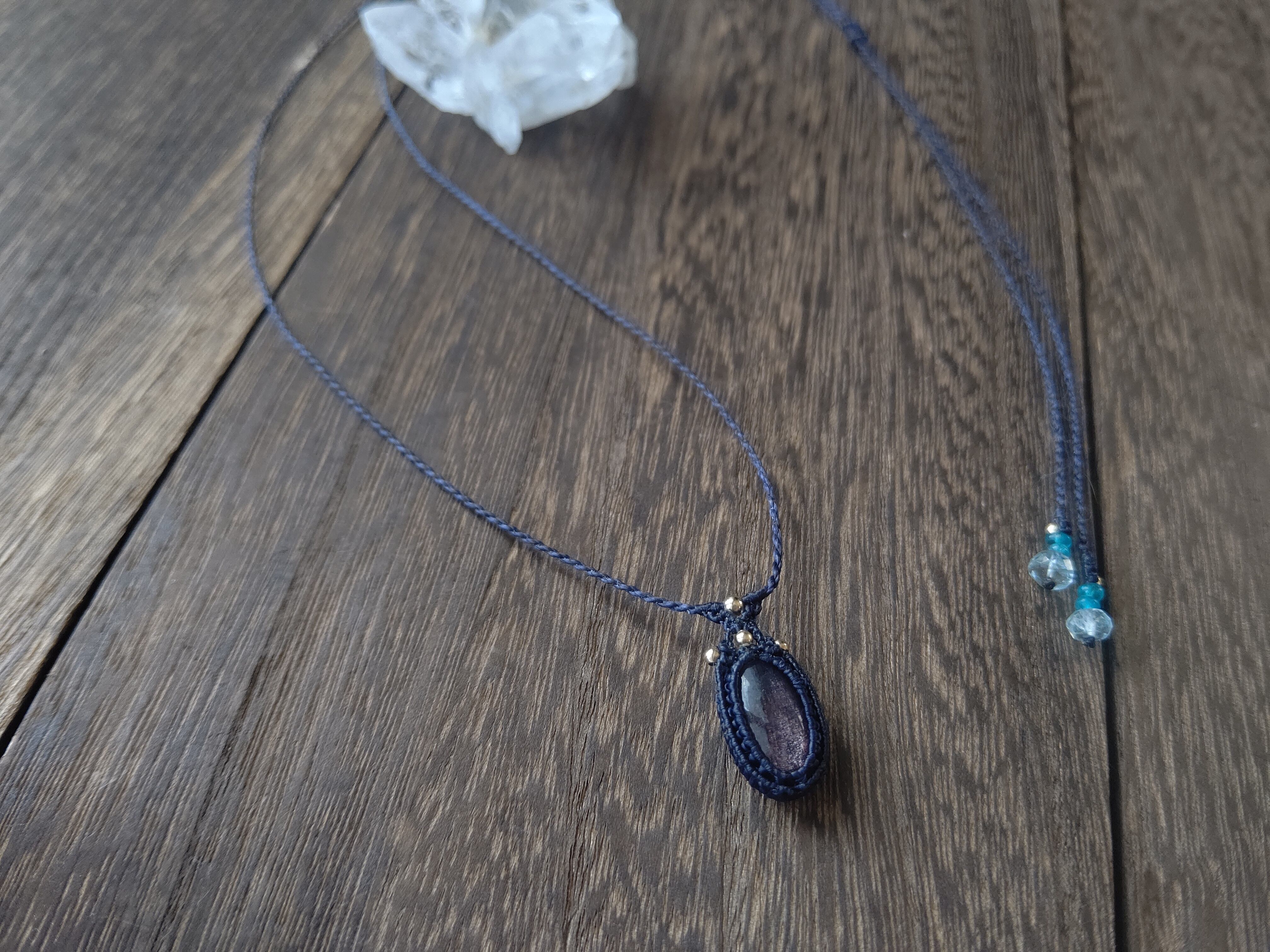パープルの細やかな銀河を纏うアイオライトサンストーンをペンダントに仕立てました。