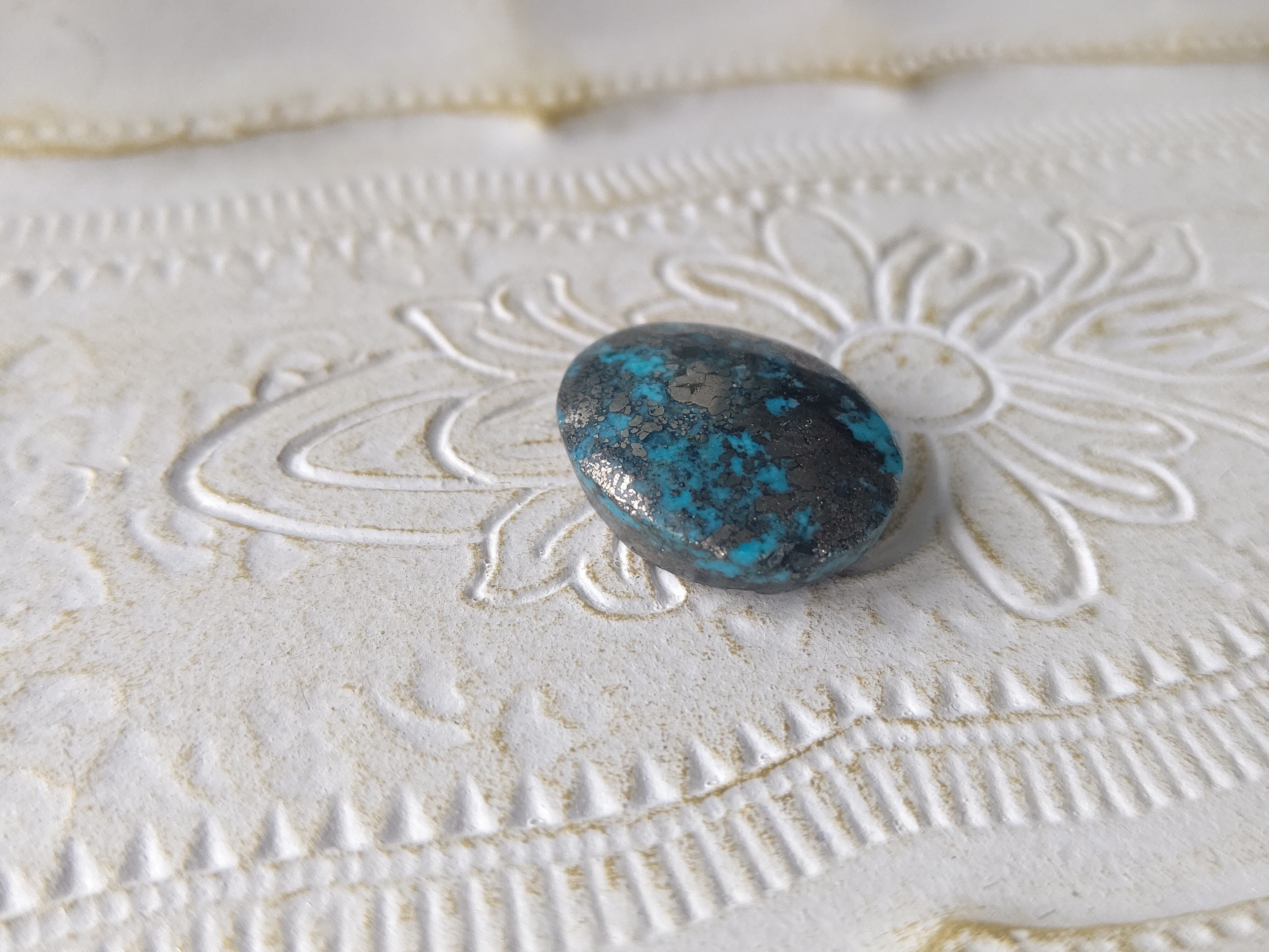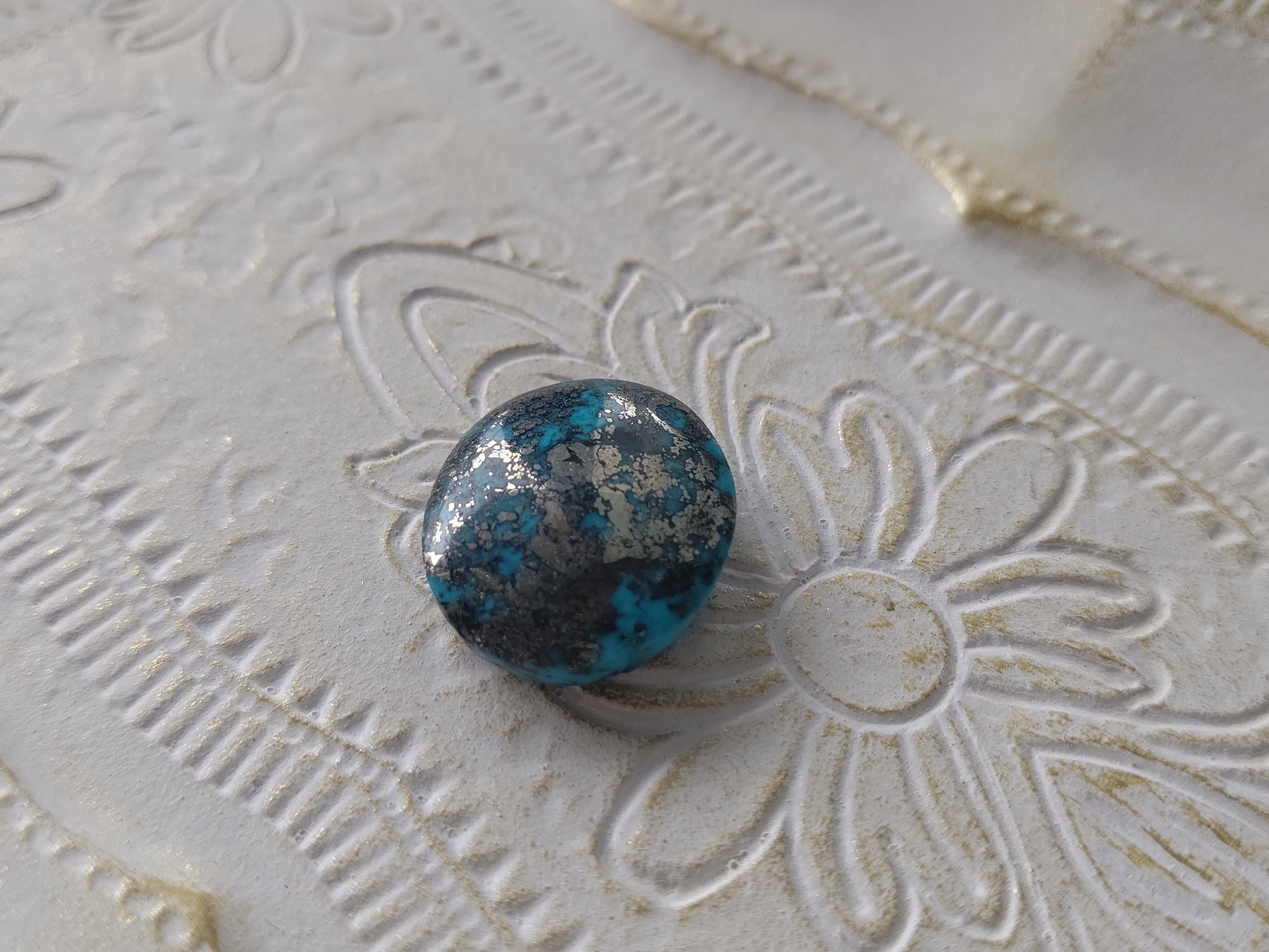 ターコイズの中でも群を抜いて人気のペルシャンターコイズ。パイライトを内包するため、少し重さはありますが、金属質な色合いと青色がとても美しく人気のターコイズです。