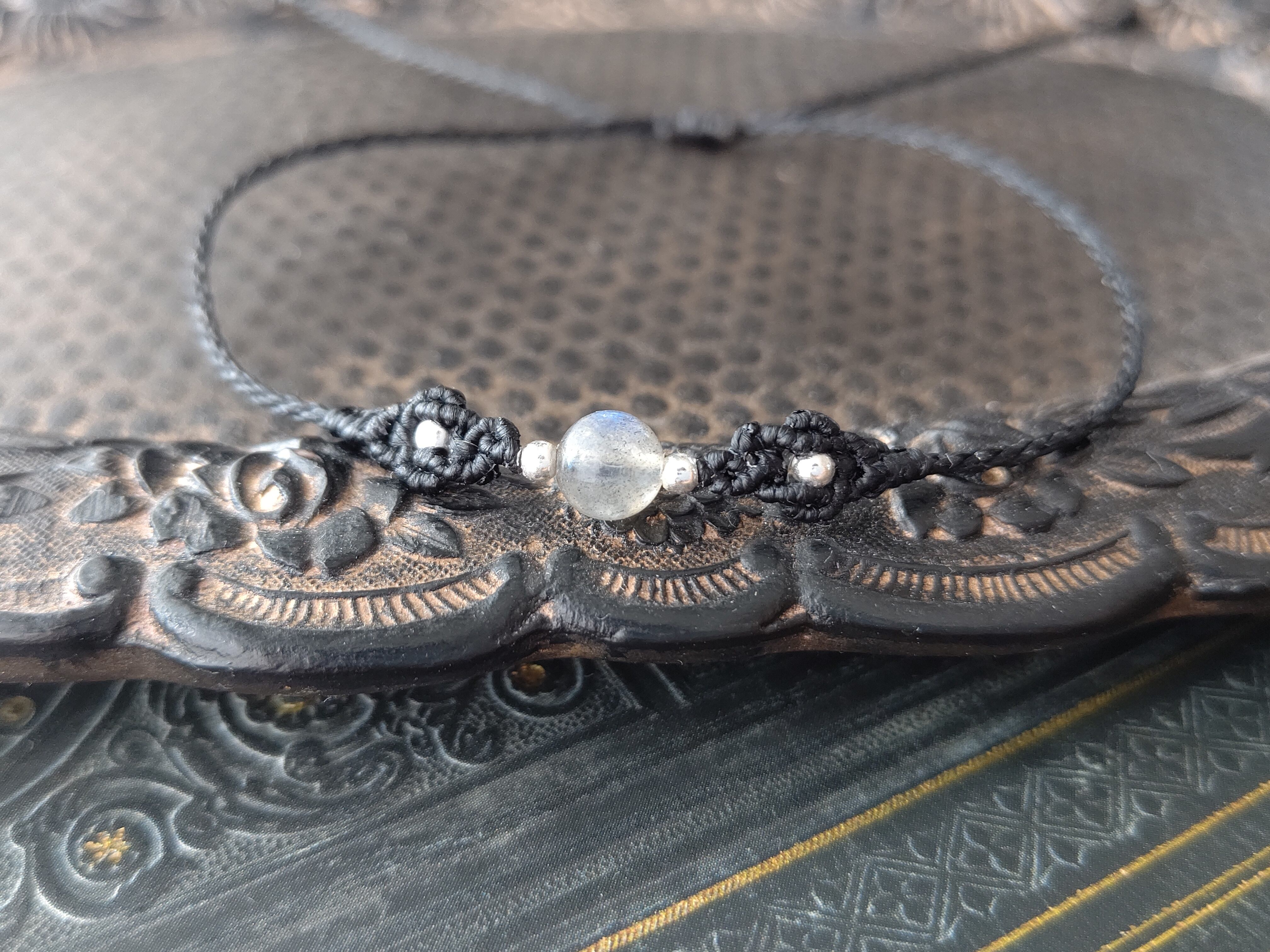 ブルーラブラドライトの天然石ビーズとsilver925ビーズでシンプルなワンポイントブレスレットを製作しました。