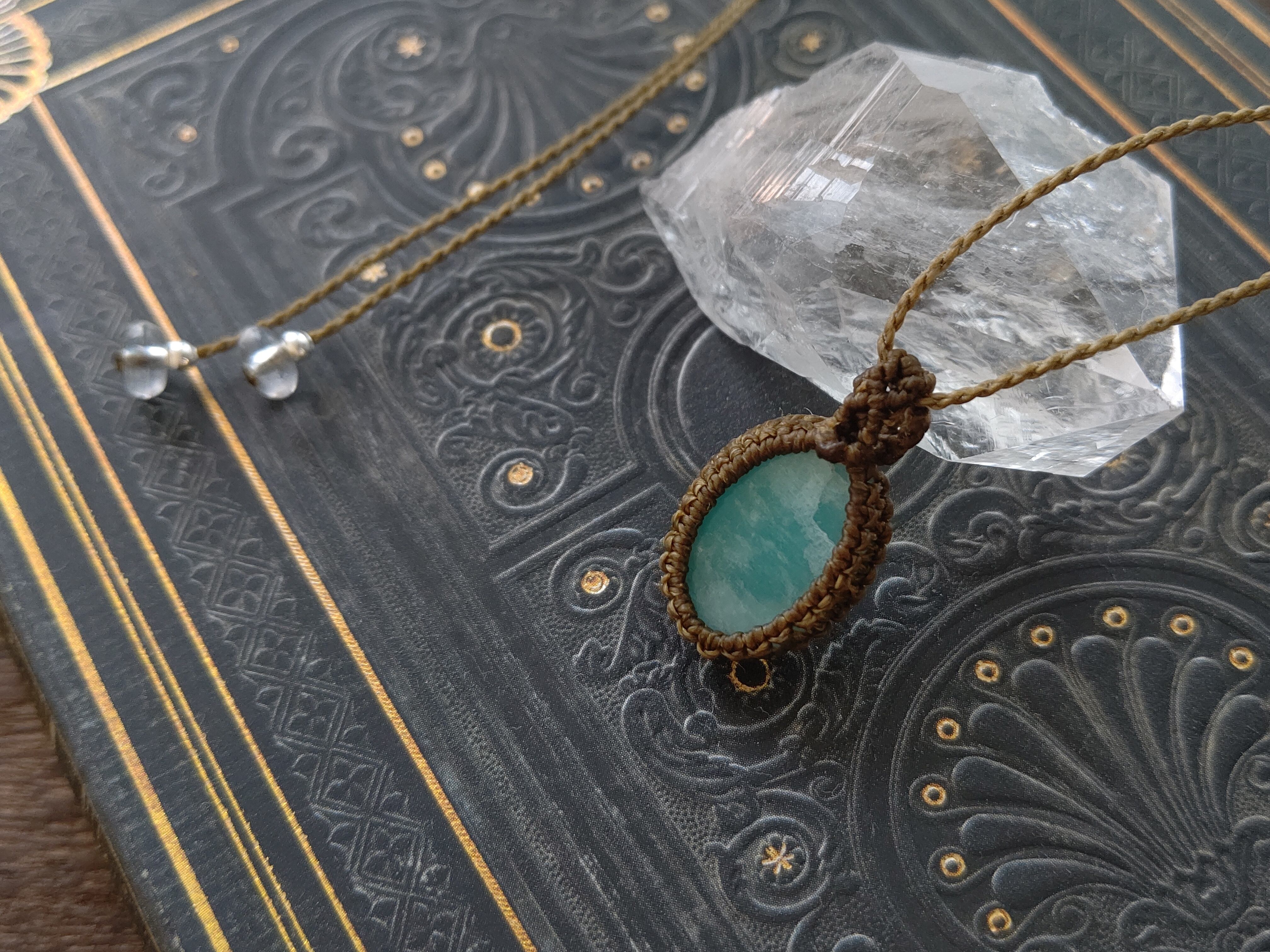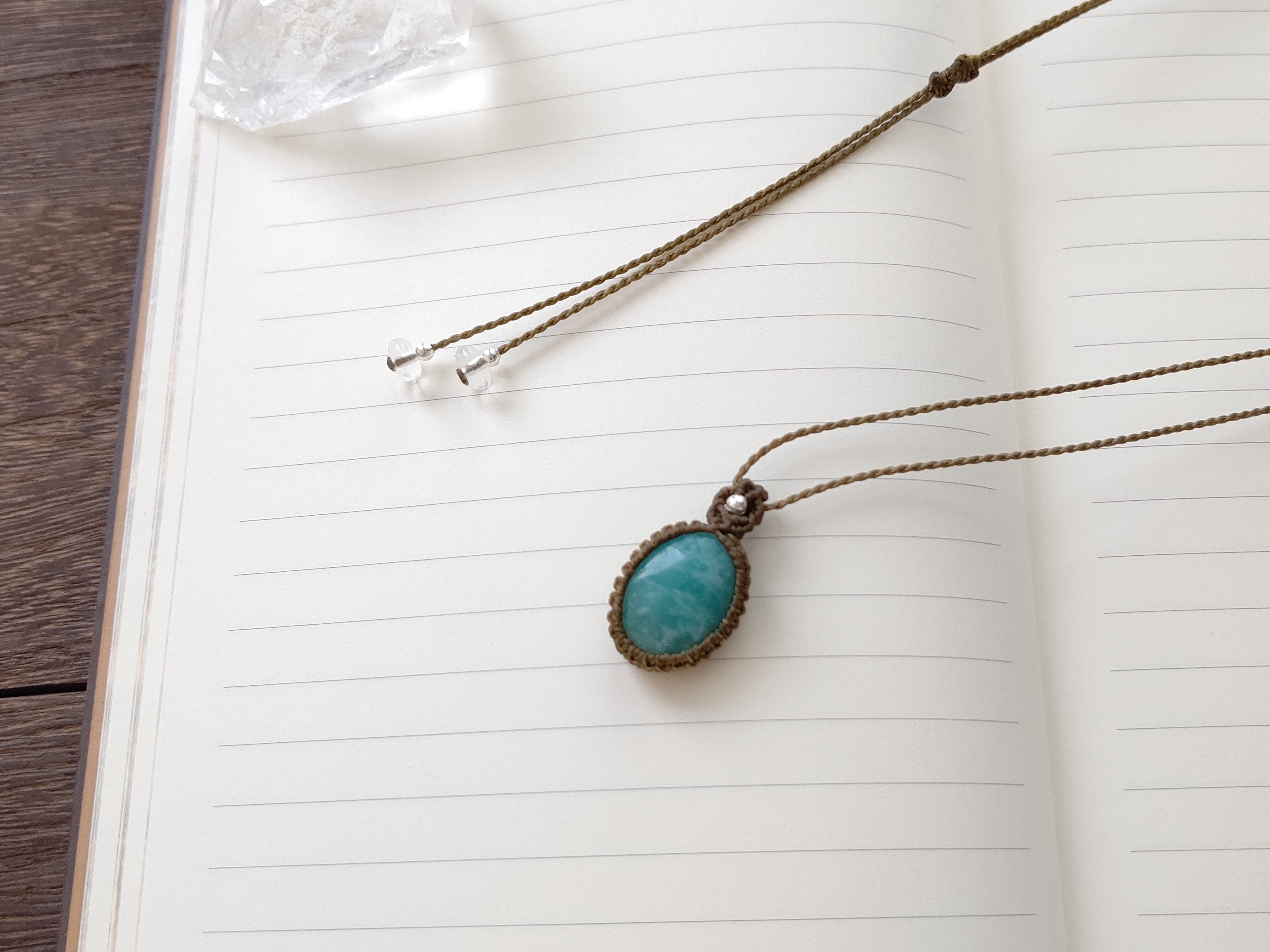 中粒よりはやや大きめなアマゾナイトをシンプルなペンダントに仕立てました。