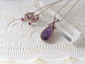 お花とナチュラルリーフの模様が彫り込まれたアメジストをシンプルなペンダントにしました。