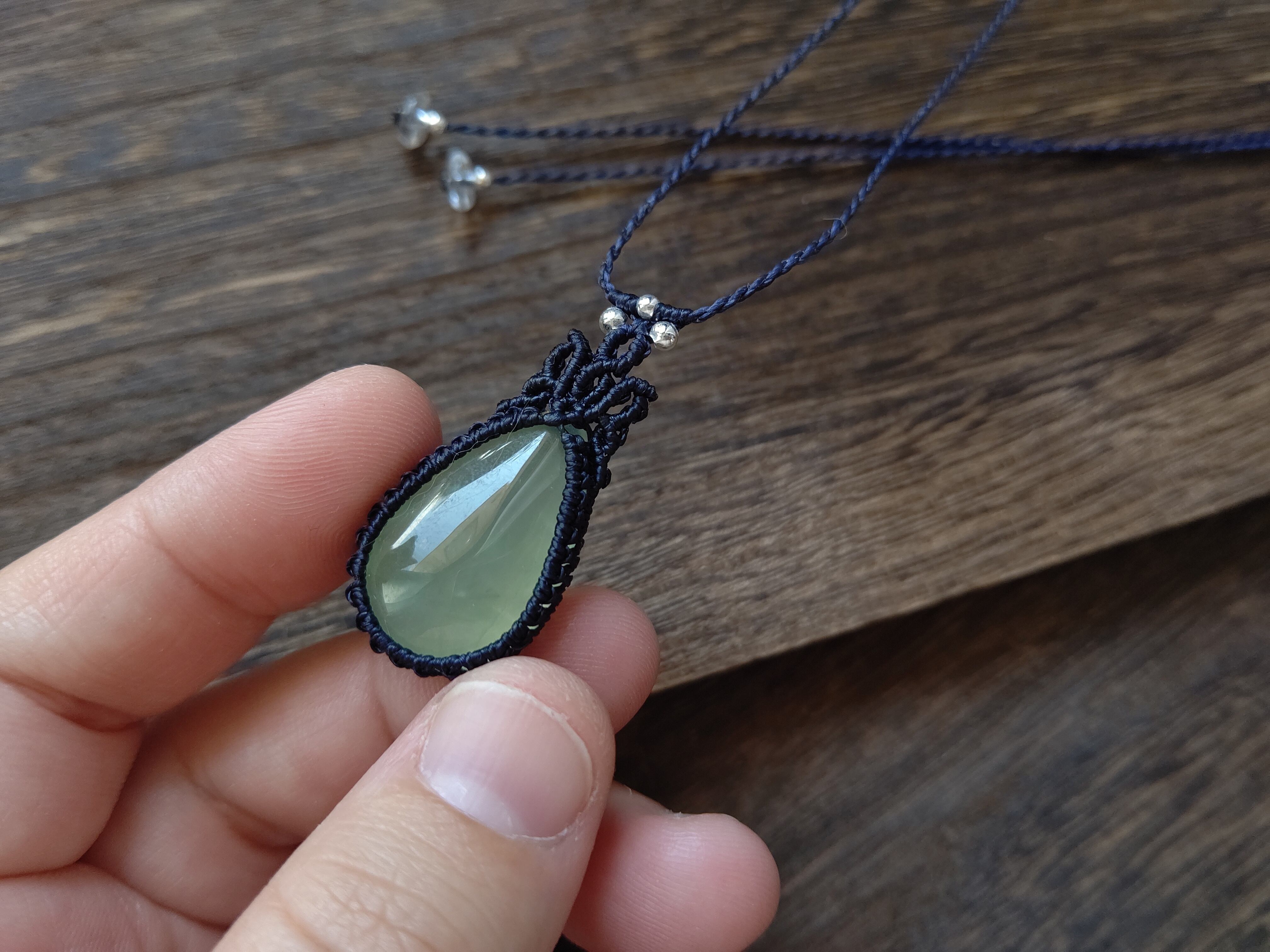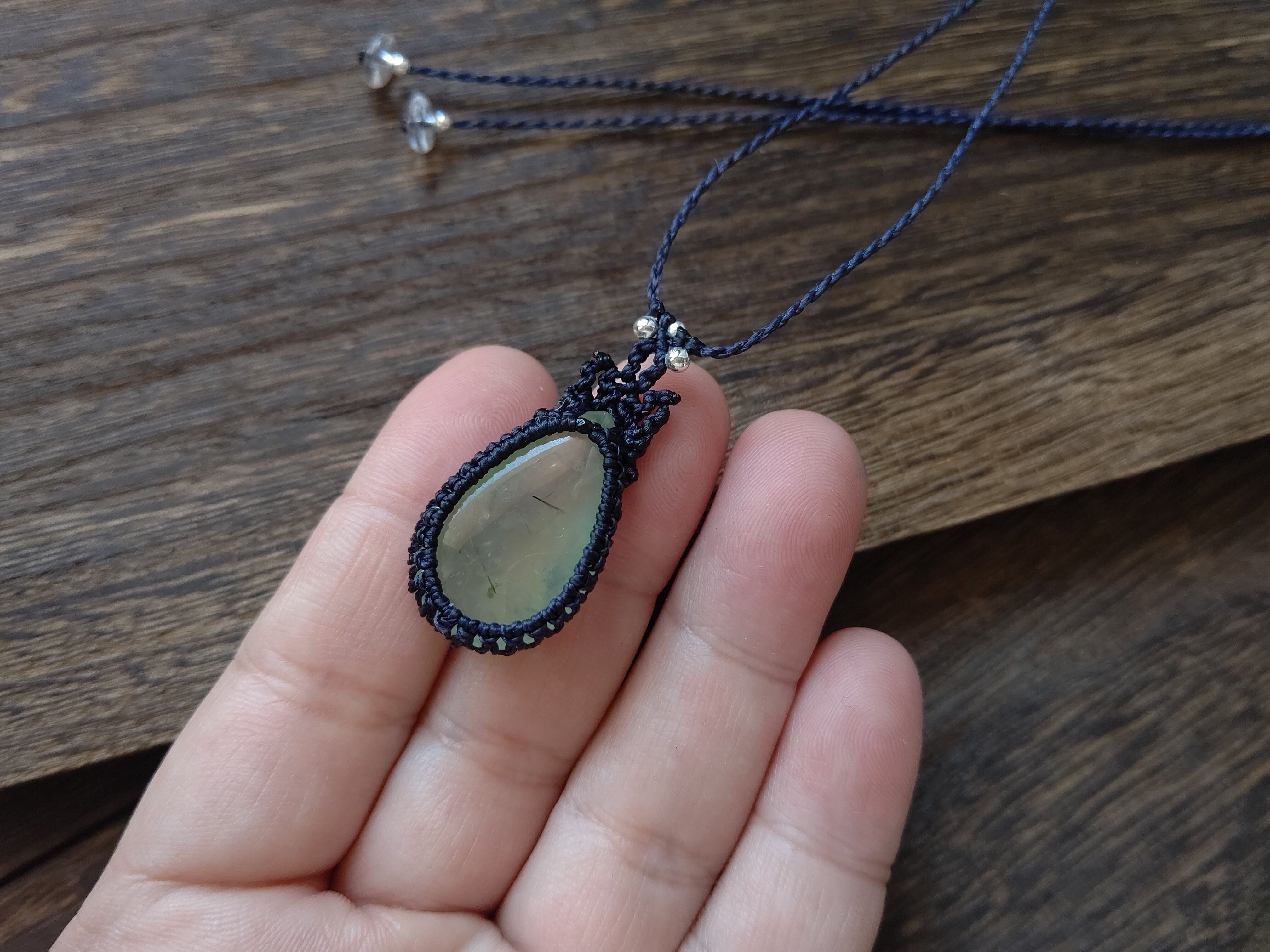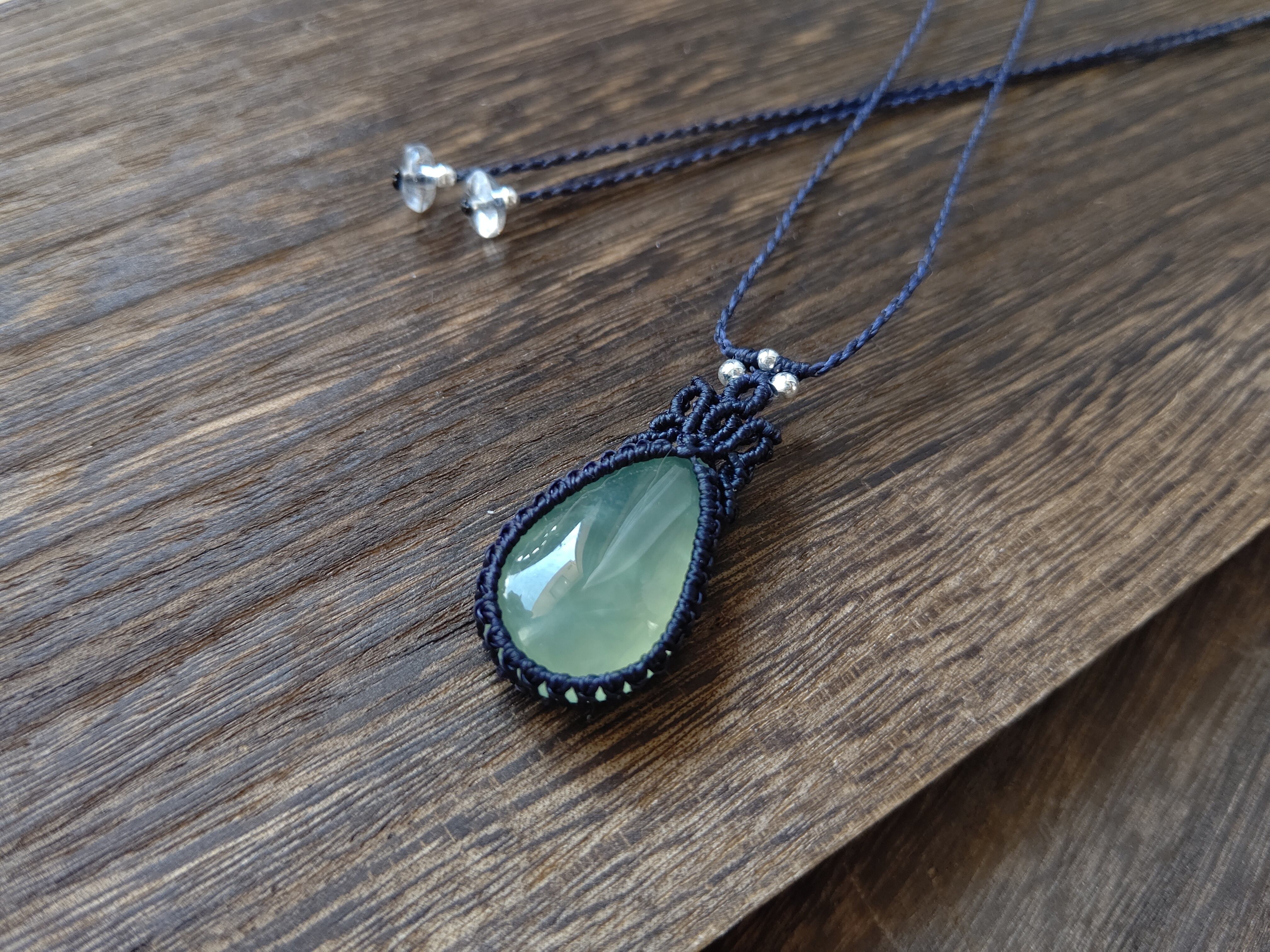 大粒しずくのプレナイトのマクラメペンダント