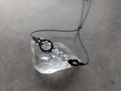 アクアマリンは模様が丁寧に彫り込まれており、透明感のあるとても美しいルースです。宝石質に近い、優しく淡い水色がとても上品な印象です。ビーズは宝石質のアクアマリンを編み込みアクセントにしています。
