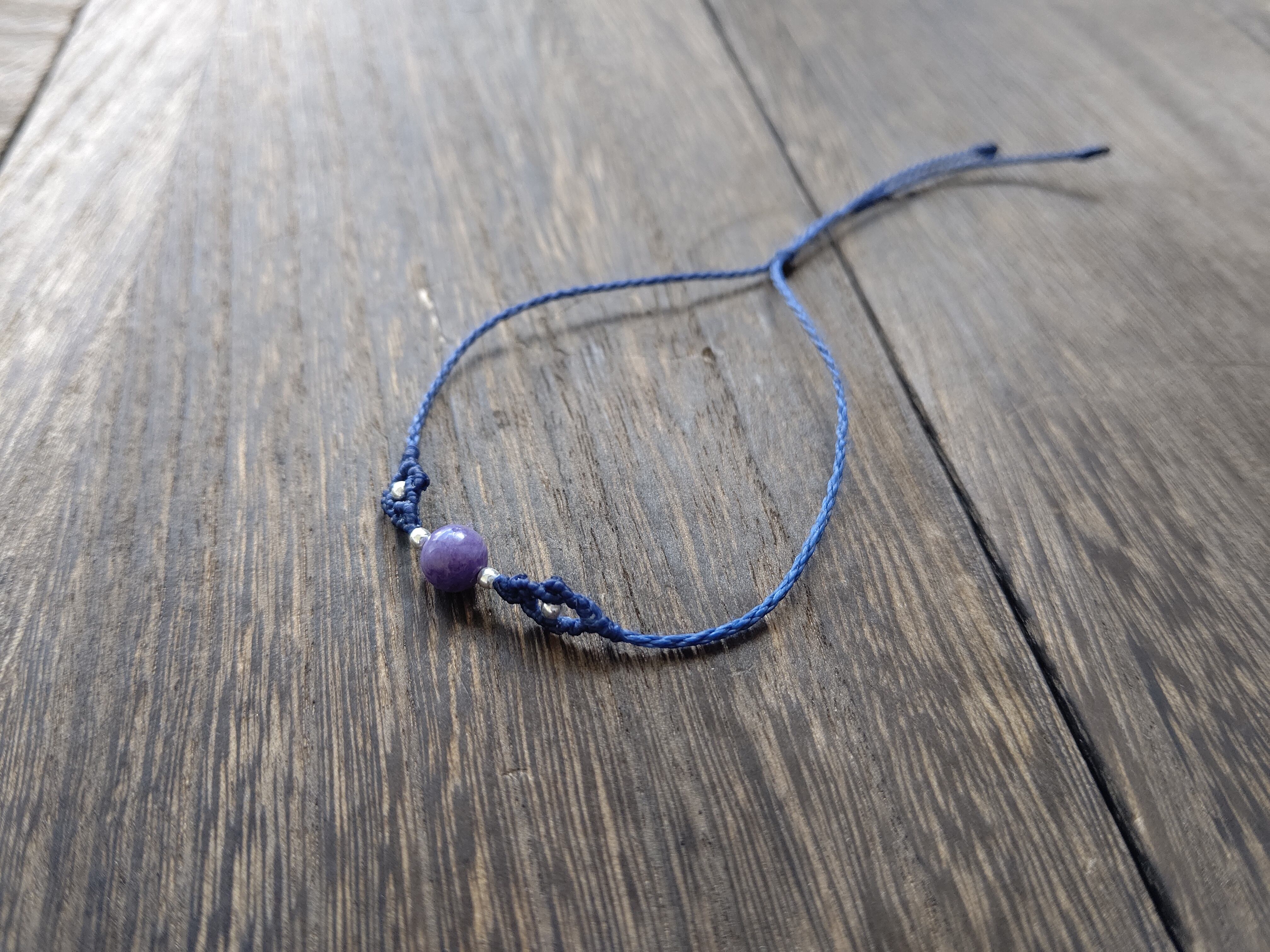 パープルの美しいチャロアイトの天然石ビーズとsilver925ビーズでシンプルなワンポイントブレスレットを製作しました。