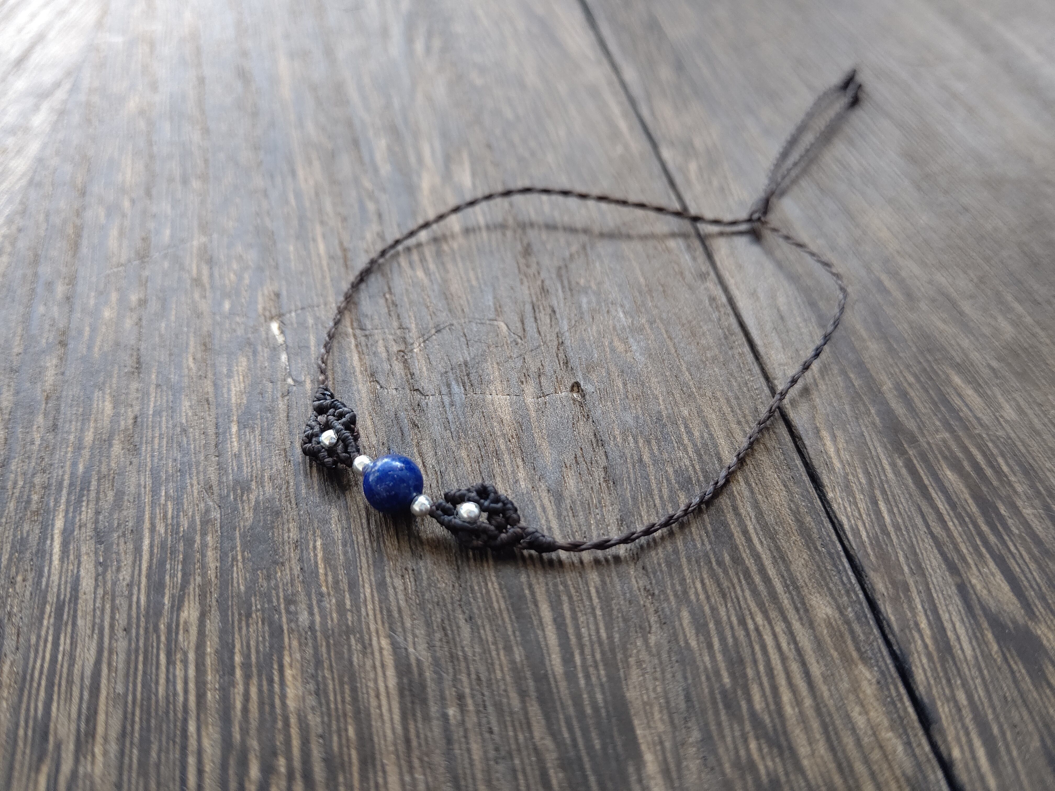 青の美しいラピスラズリの天然石ビーズとsilver925ビーズでシンプルなワンポイントブレスレットを製作しました。