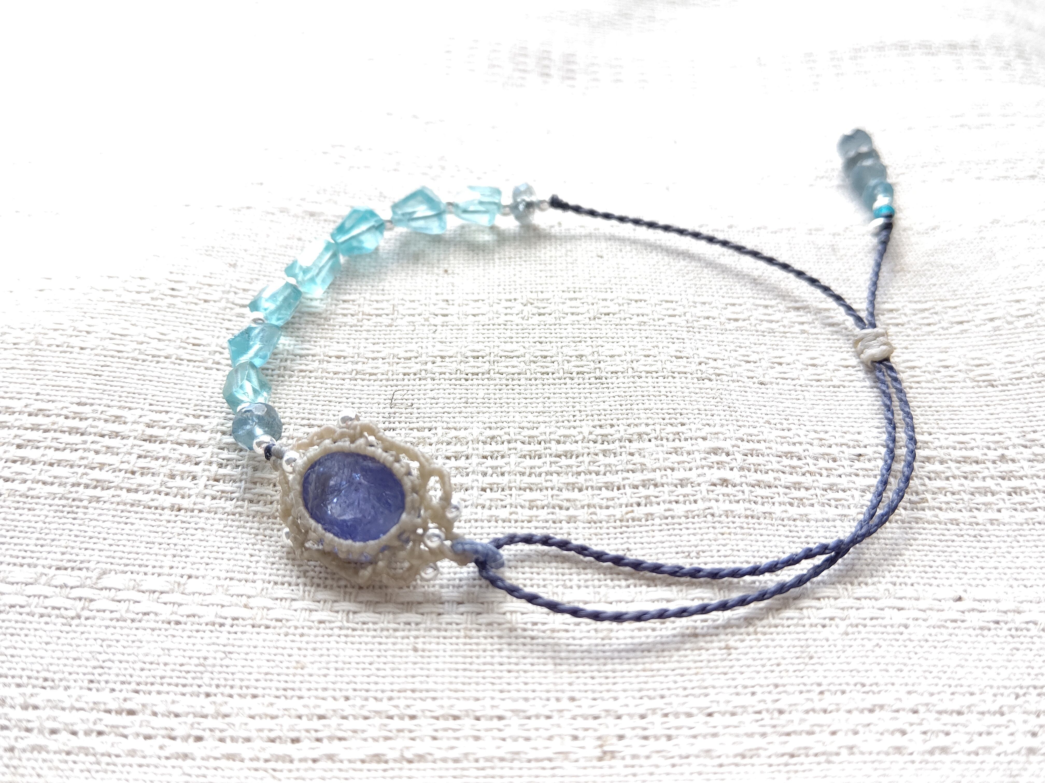 【本日送料無料】ジュエリーカットのタンザナイトと宝石質アパタイトのブレスレット