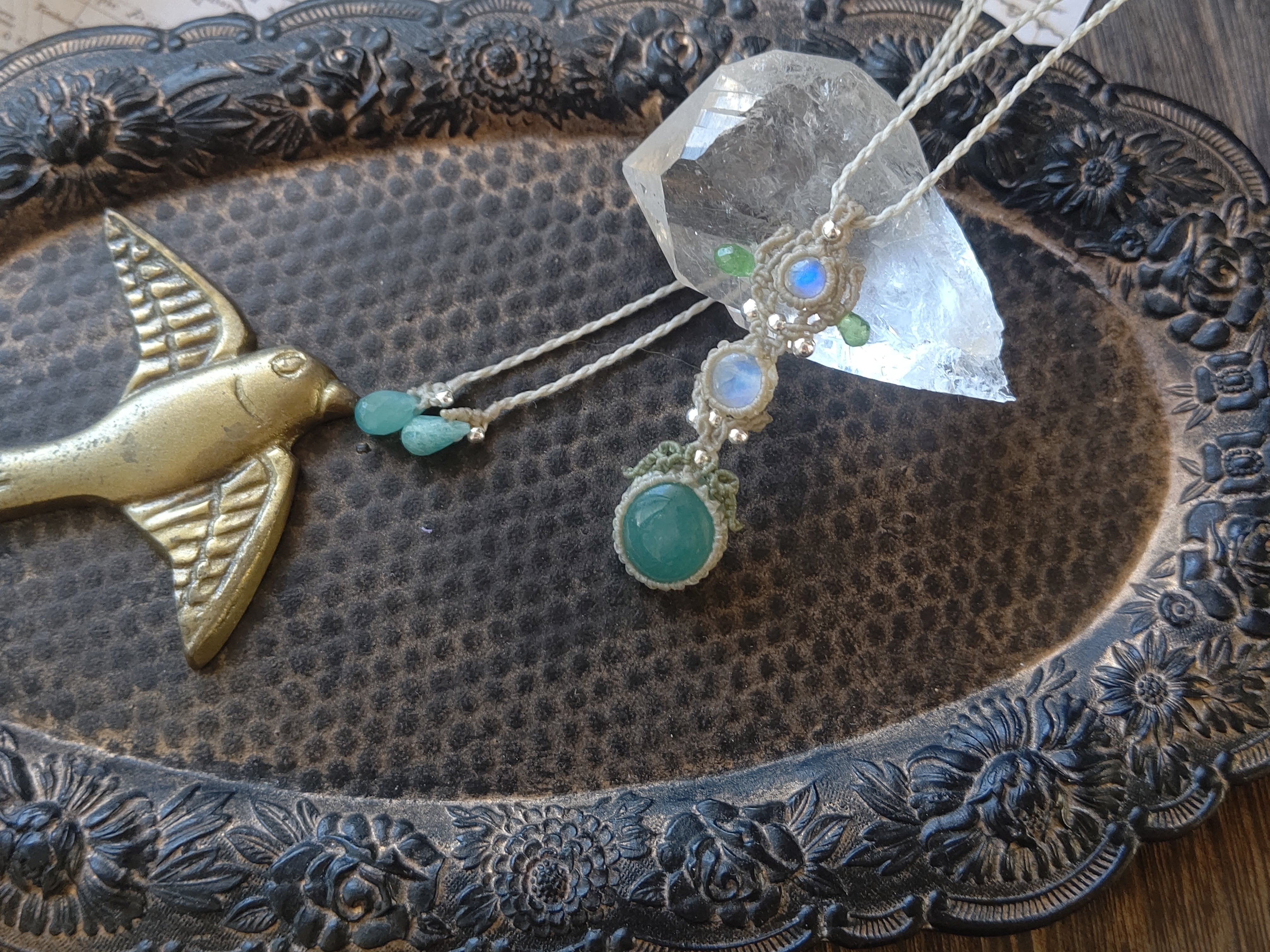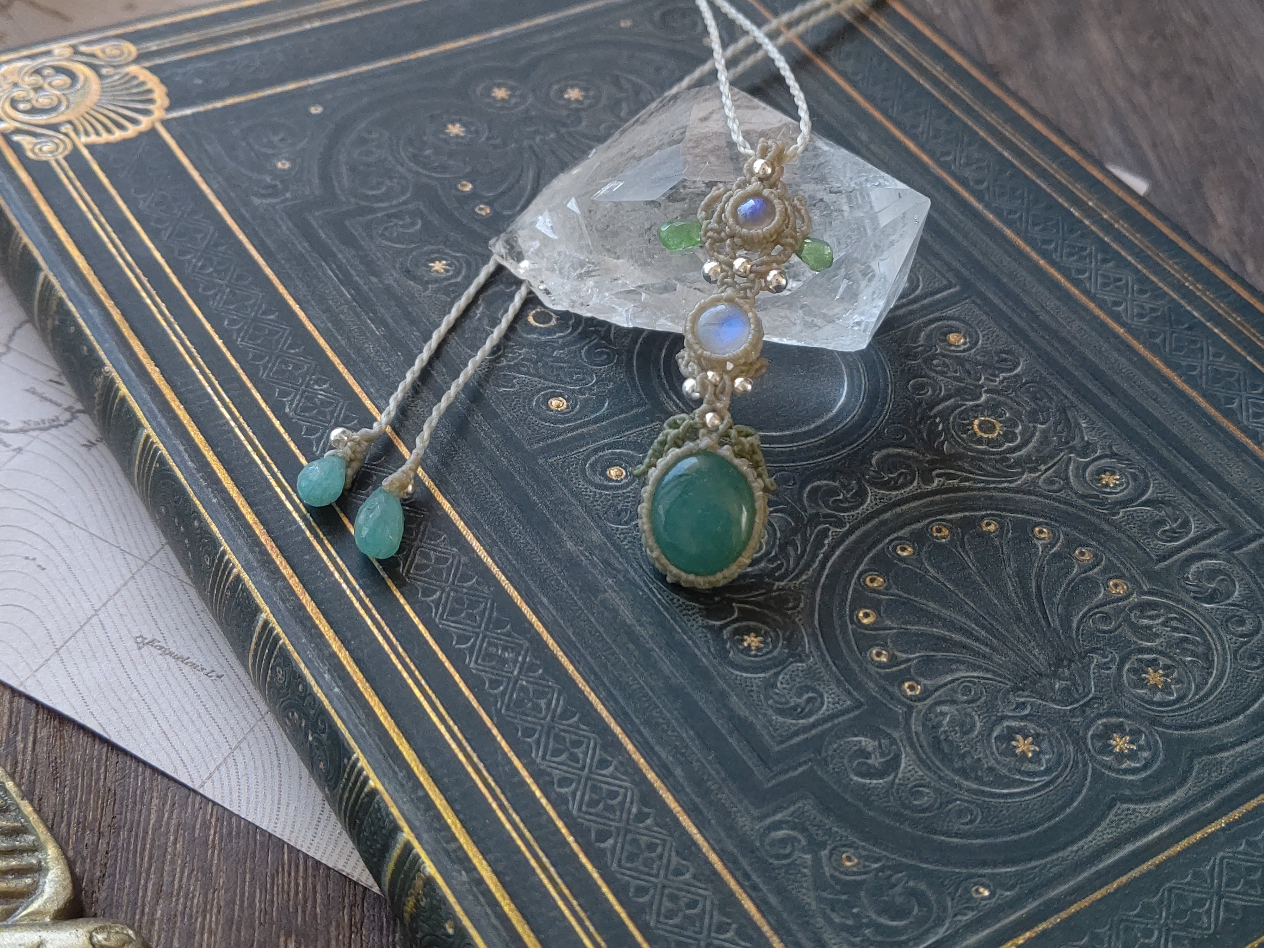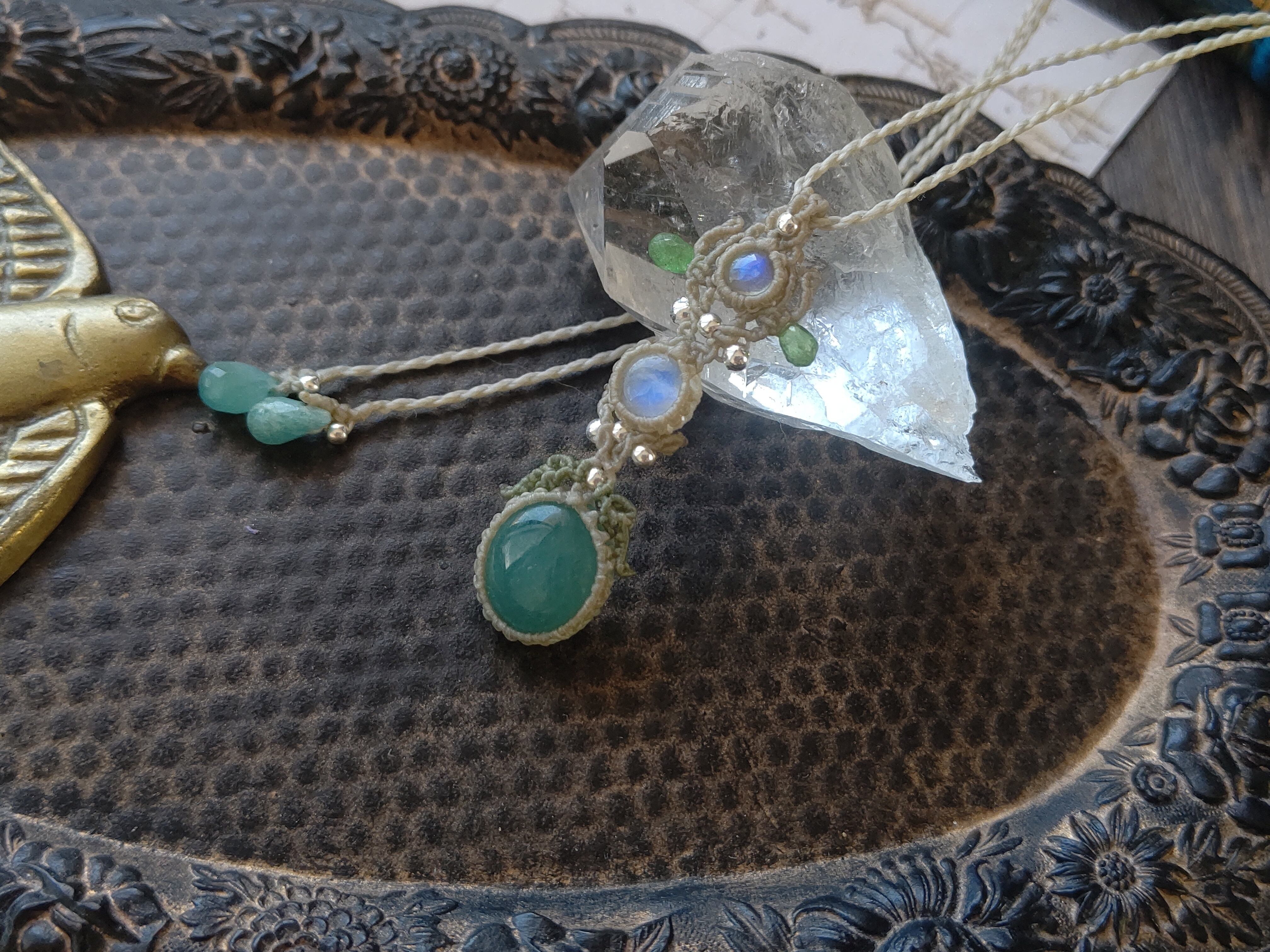 グランディディエライト×ホワイトラブラドライト×ツァボライトガーネットのペンダント