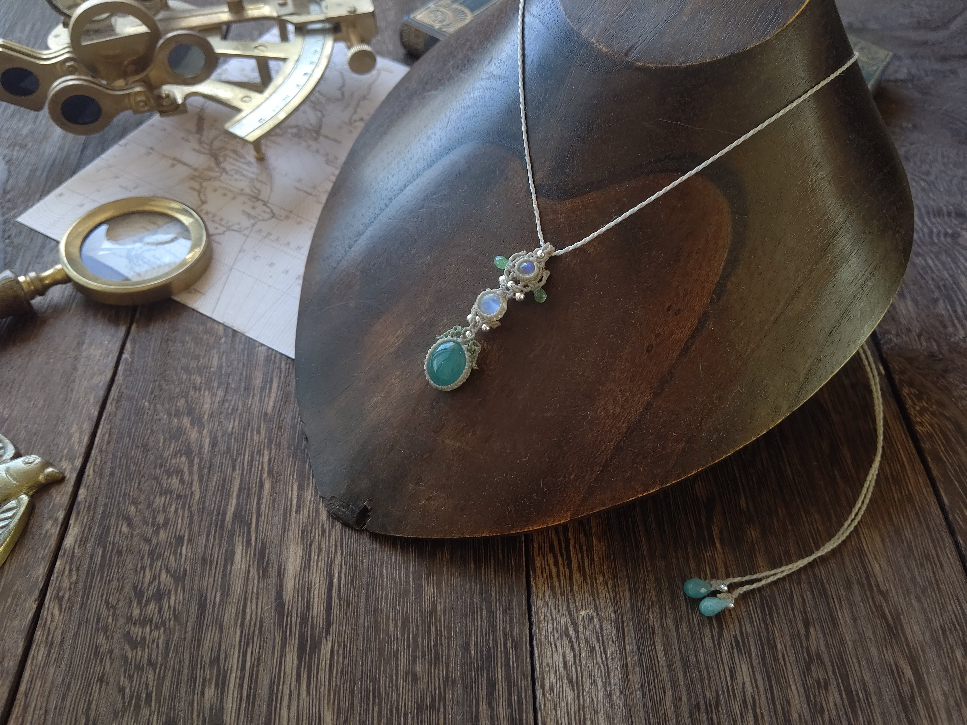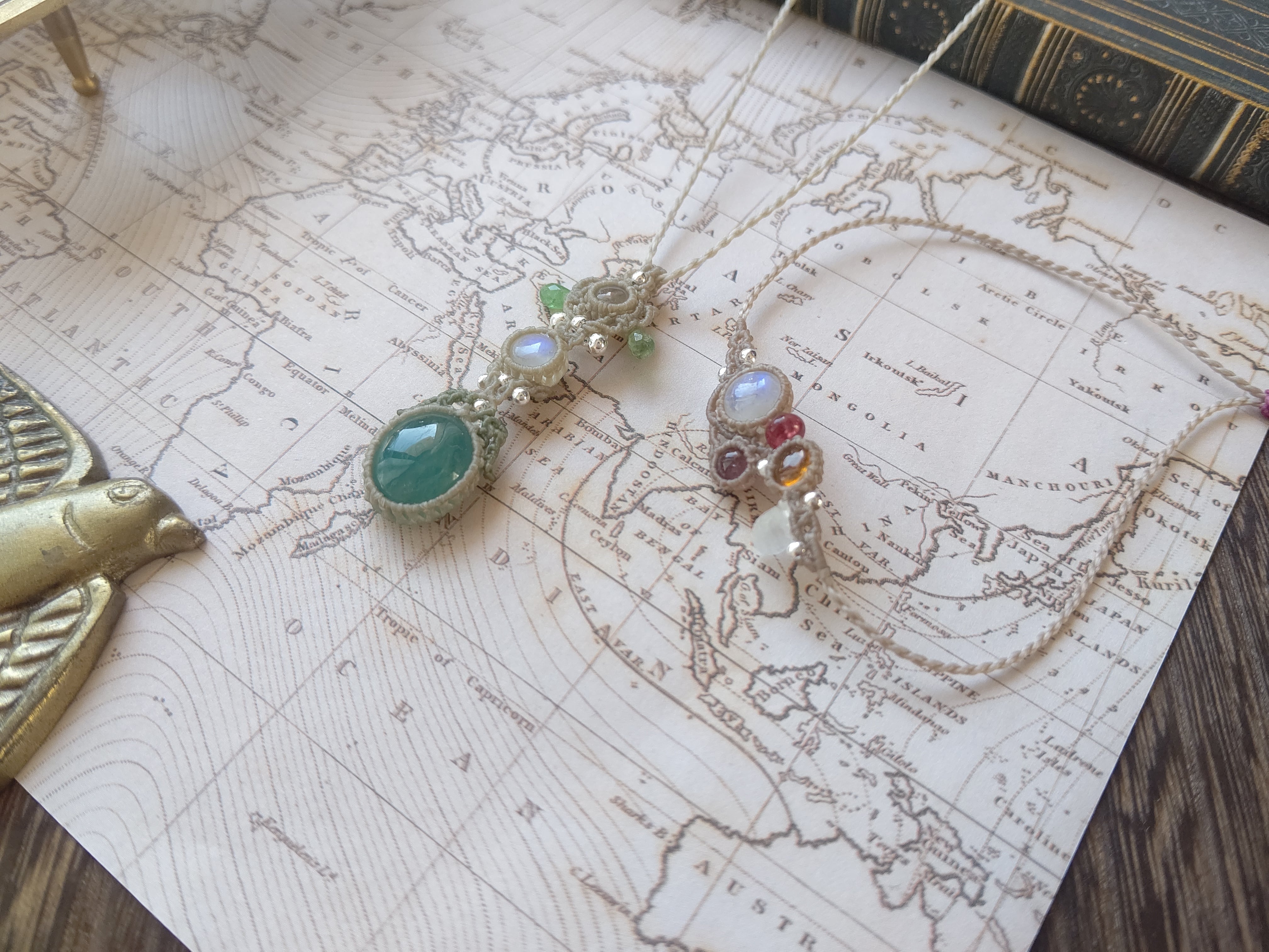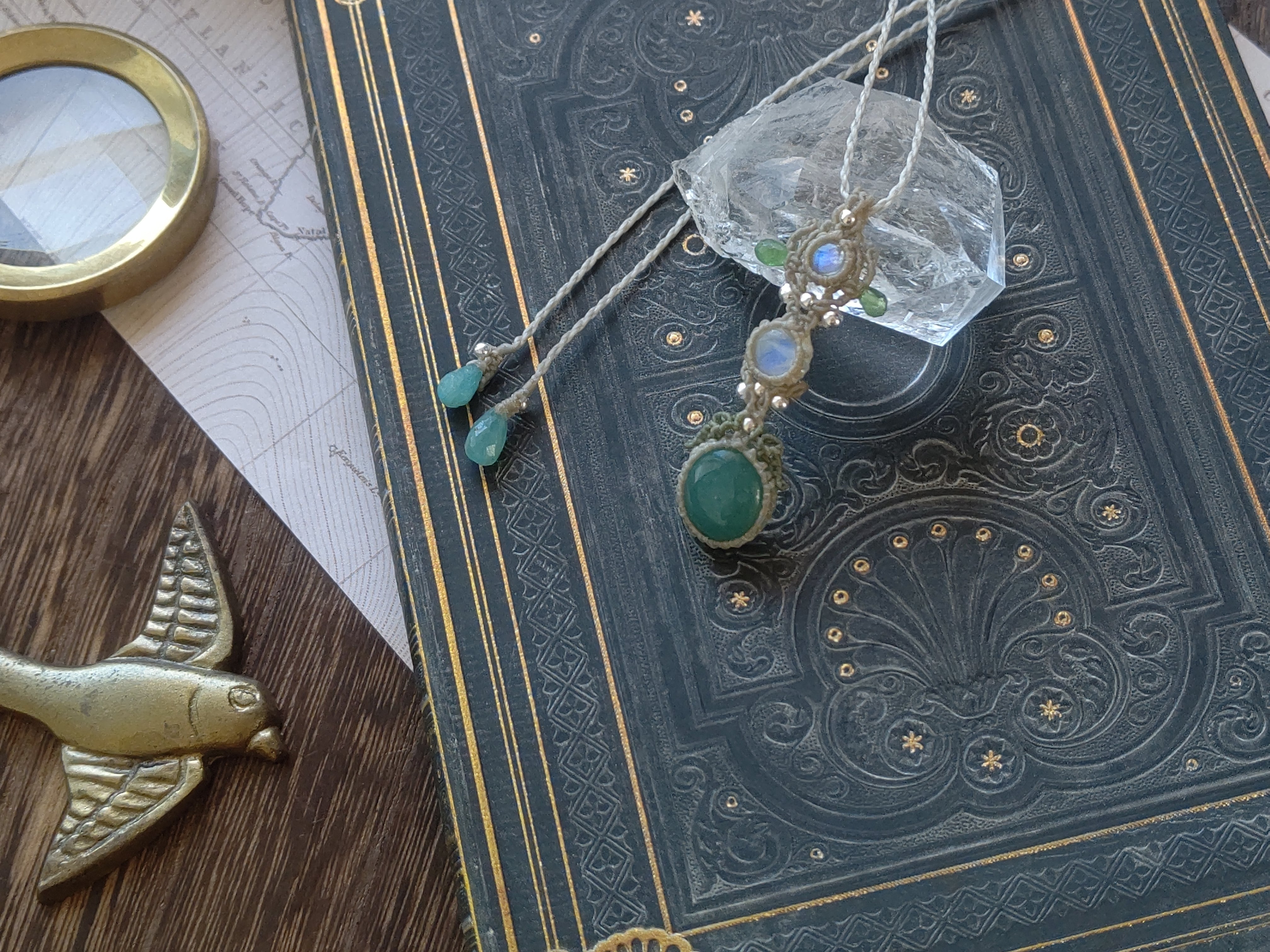 グランディディエライト×ホワイトラブラドライト×ツァボライトガーネットのペンダント