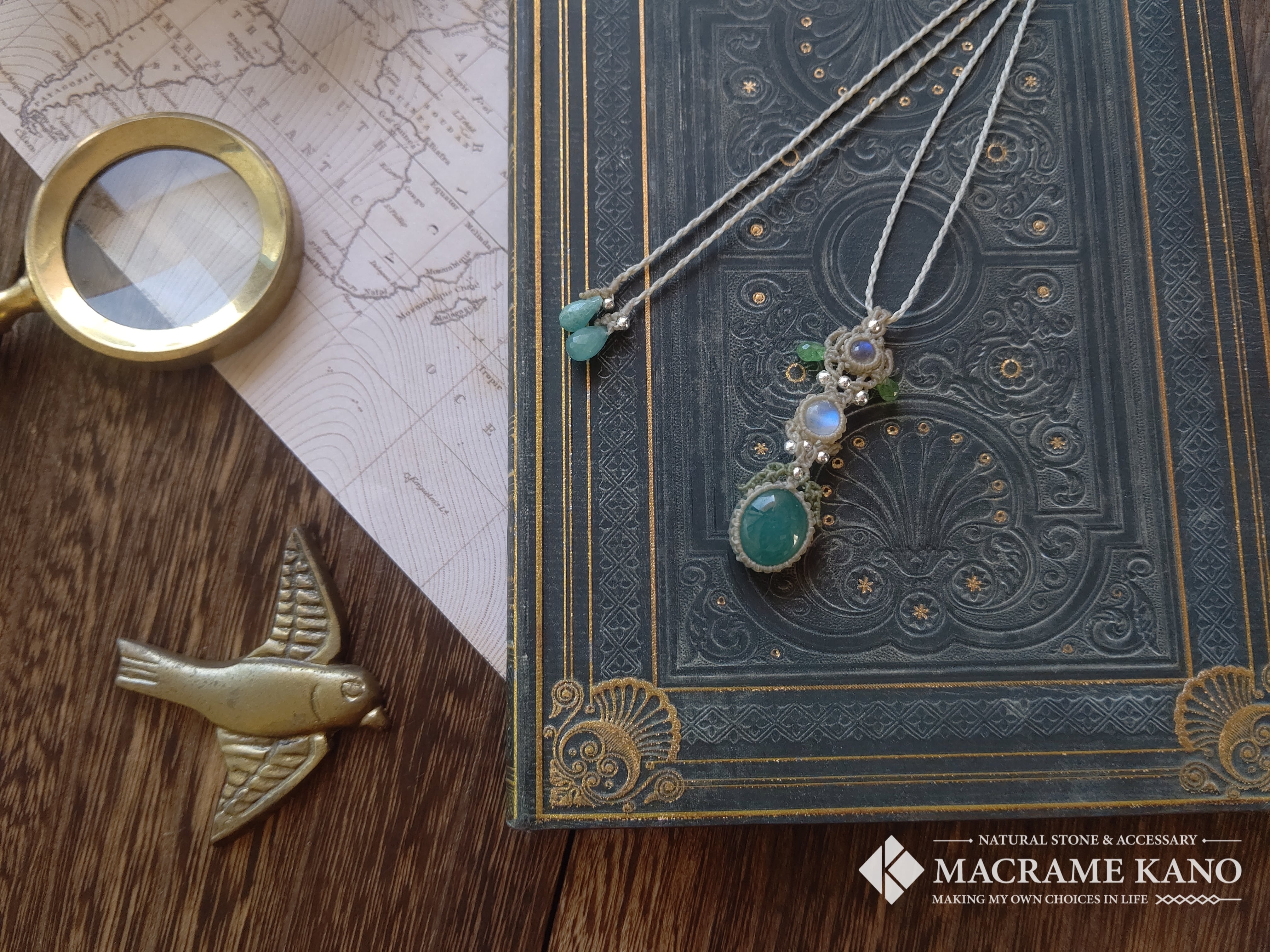 深みのあるノルウェーの森のようなぷっくりとしたグランディディエライトをホワイトラブラドライトと組み合わせペンダントに仕立てました。