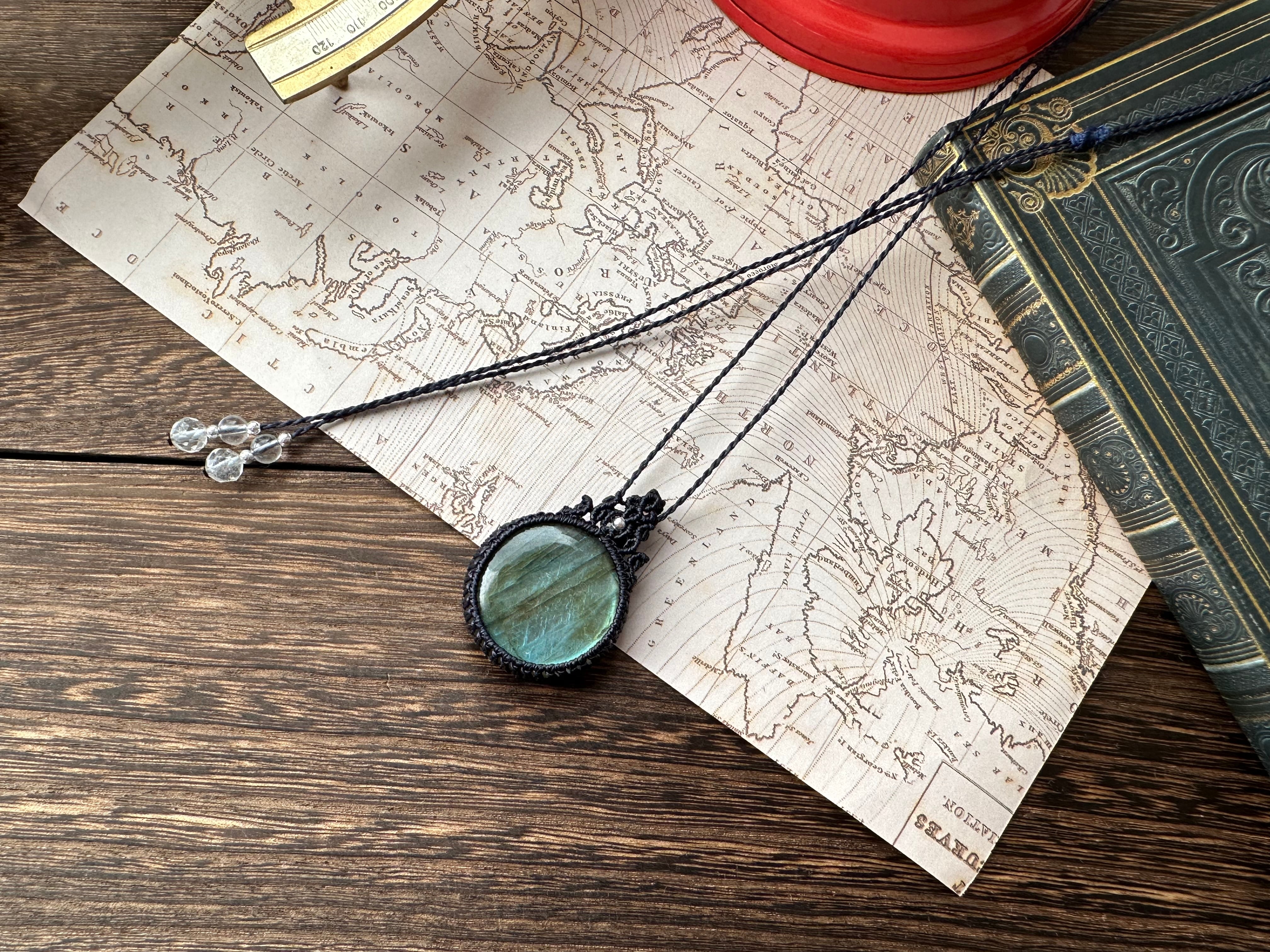 大粒まんまるラブラドライトのマクラメペンダント