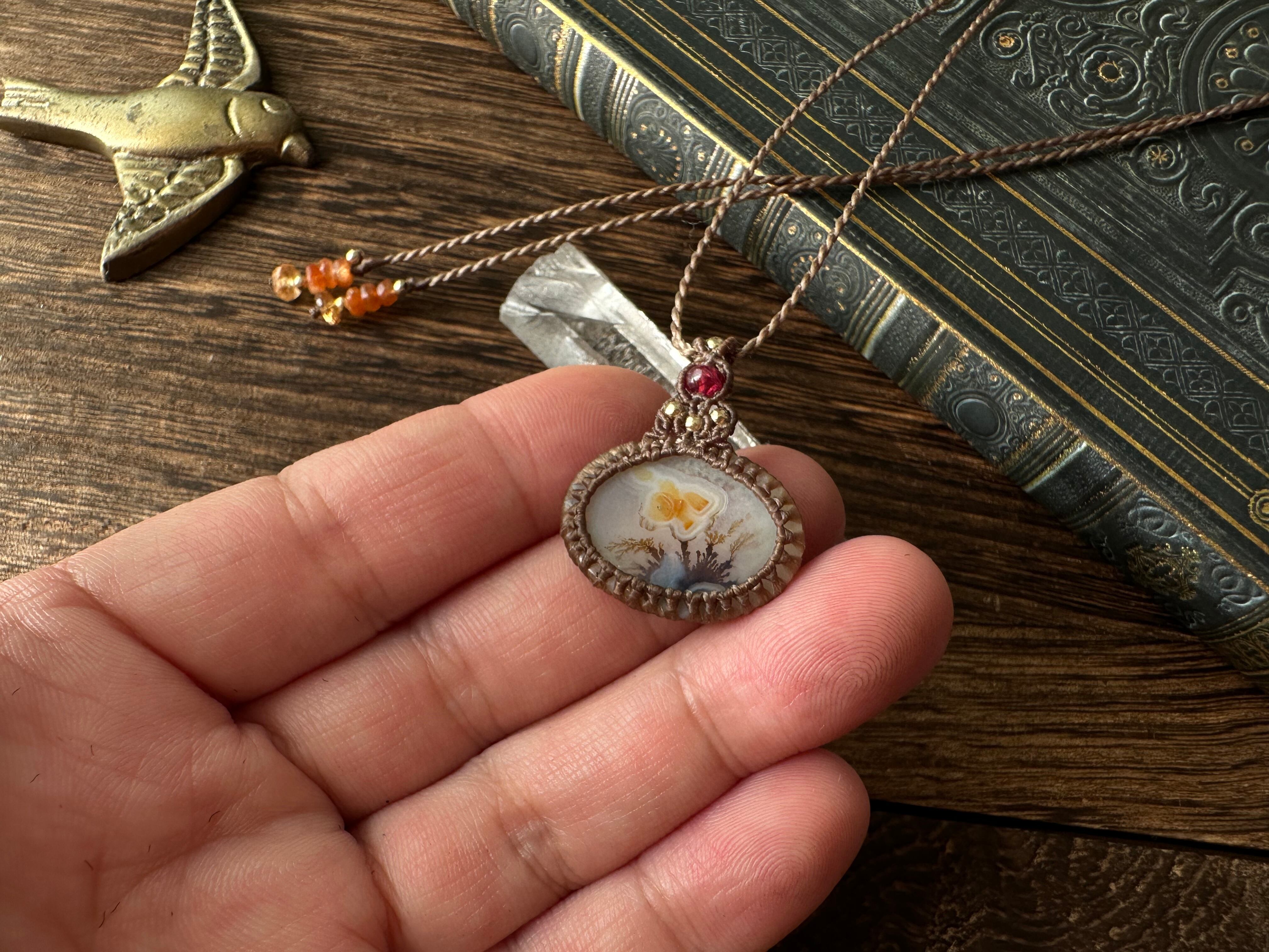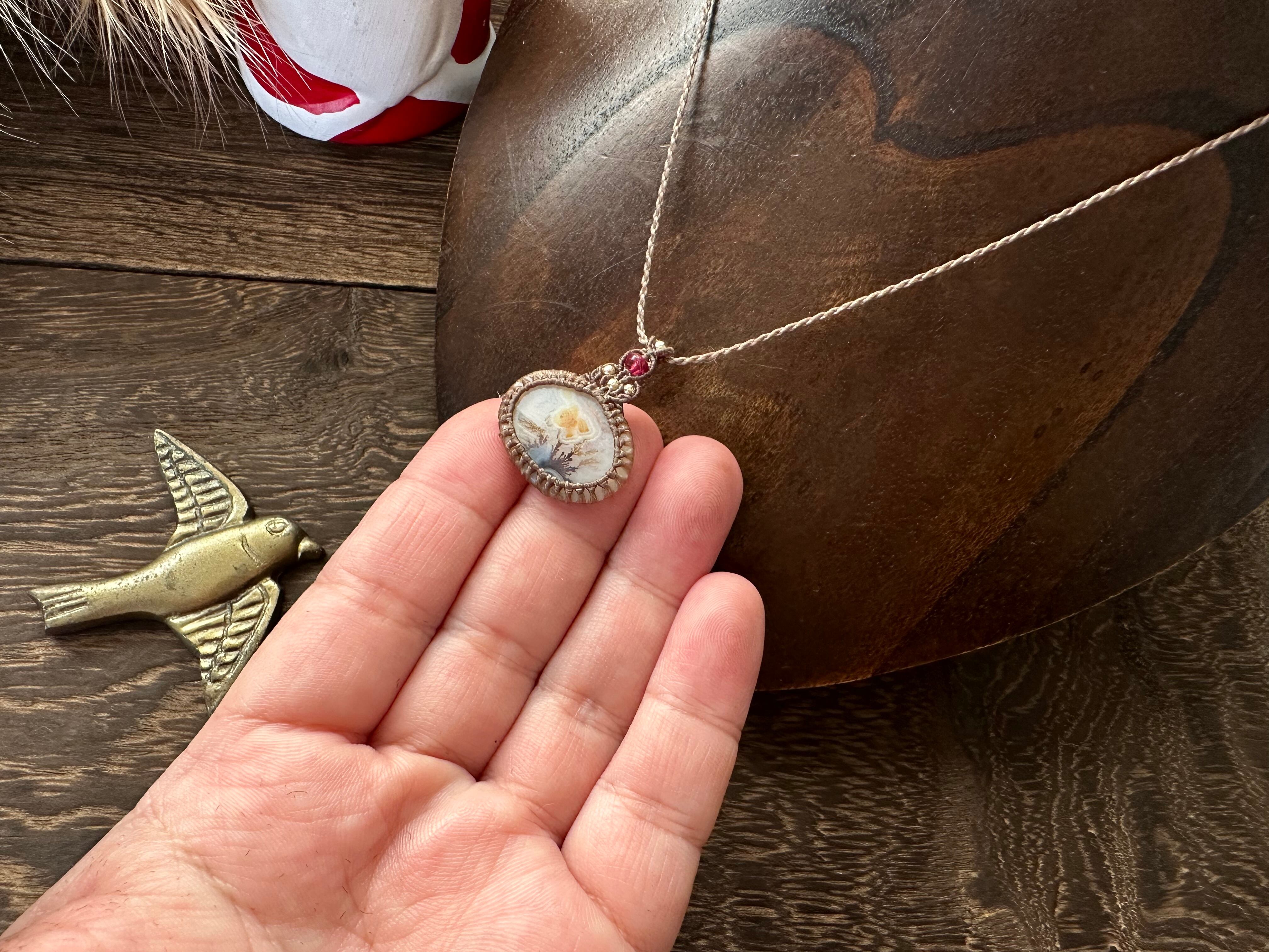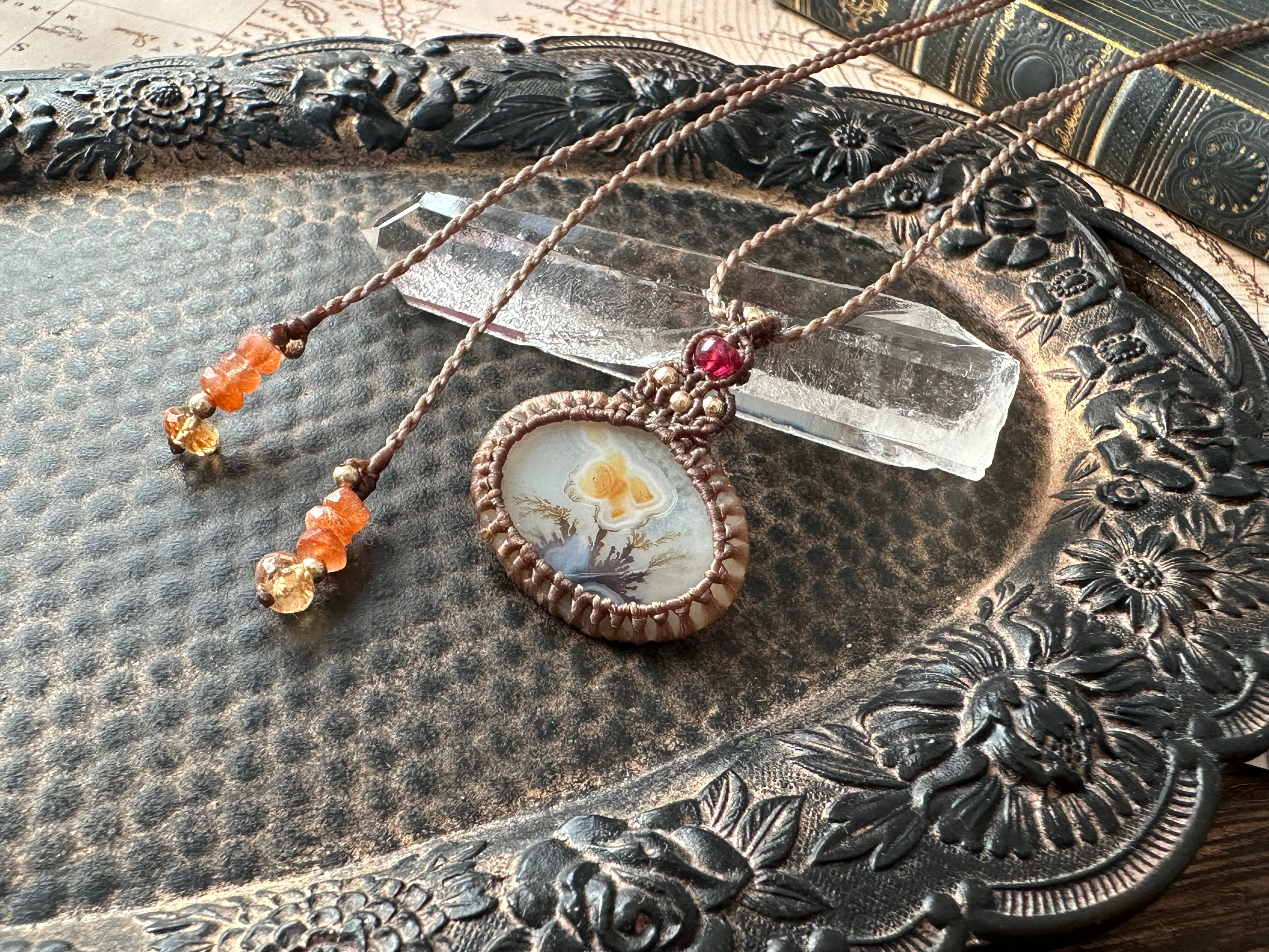 秋の展覧会;デンドライトアゲート×レッドスピネルのマクラメペンダント