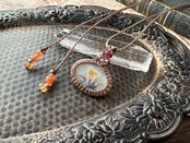 ワンポイントには14kgfのビーズと、宝石質のレッドスピネルをあしらいました。ペンダント紐を繋ぐ部分にも少し工夫を凝らし、長時間のご使用でも、首飾り紐がくるくる動かないようにしています。