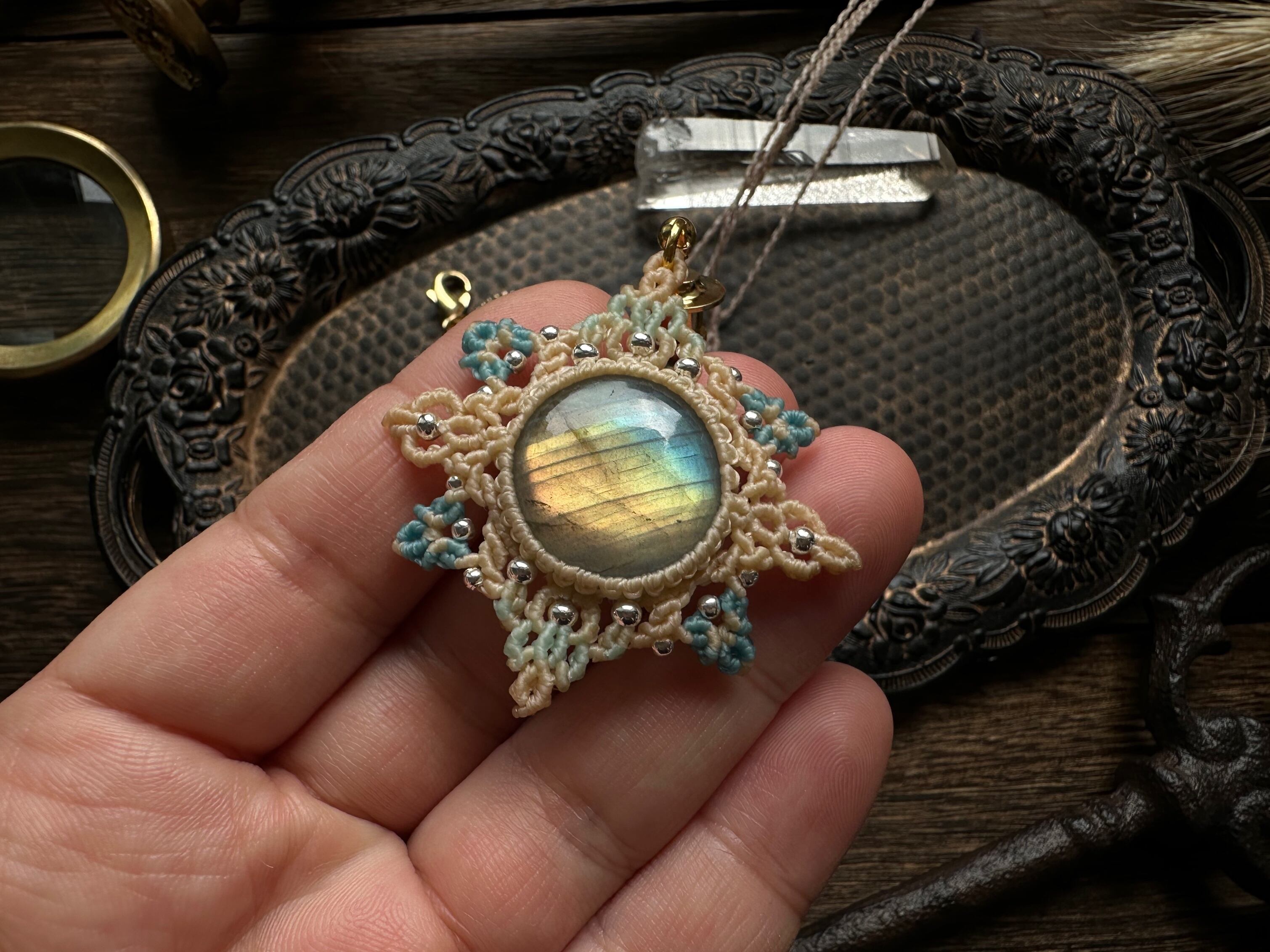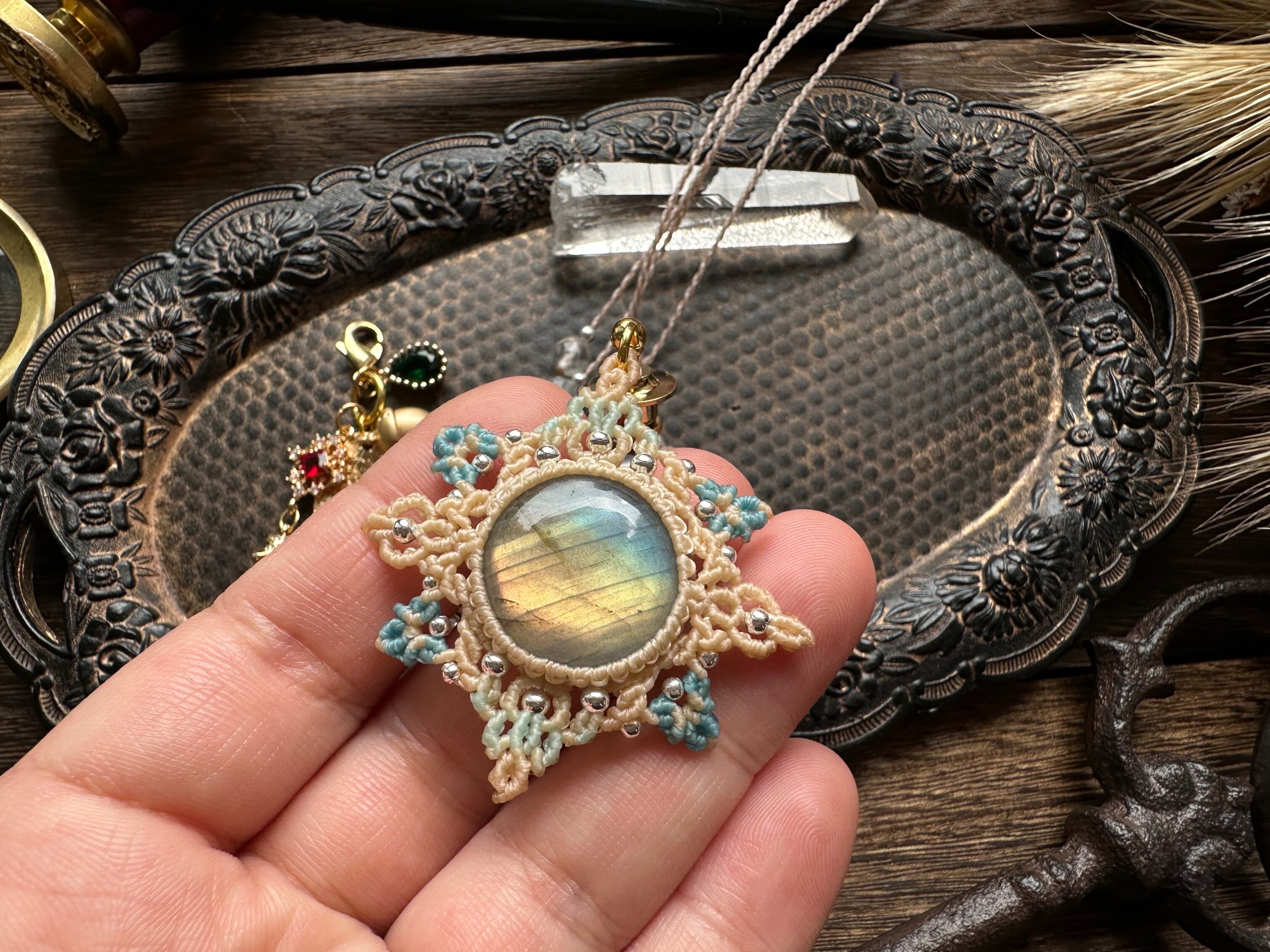 宝石質キャッツアイムーンストーン 雪の結晶 ペンダント 1点