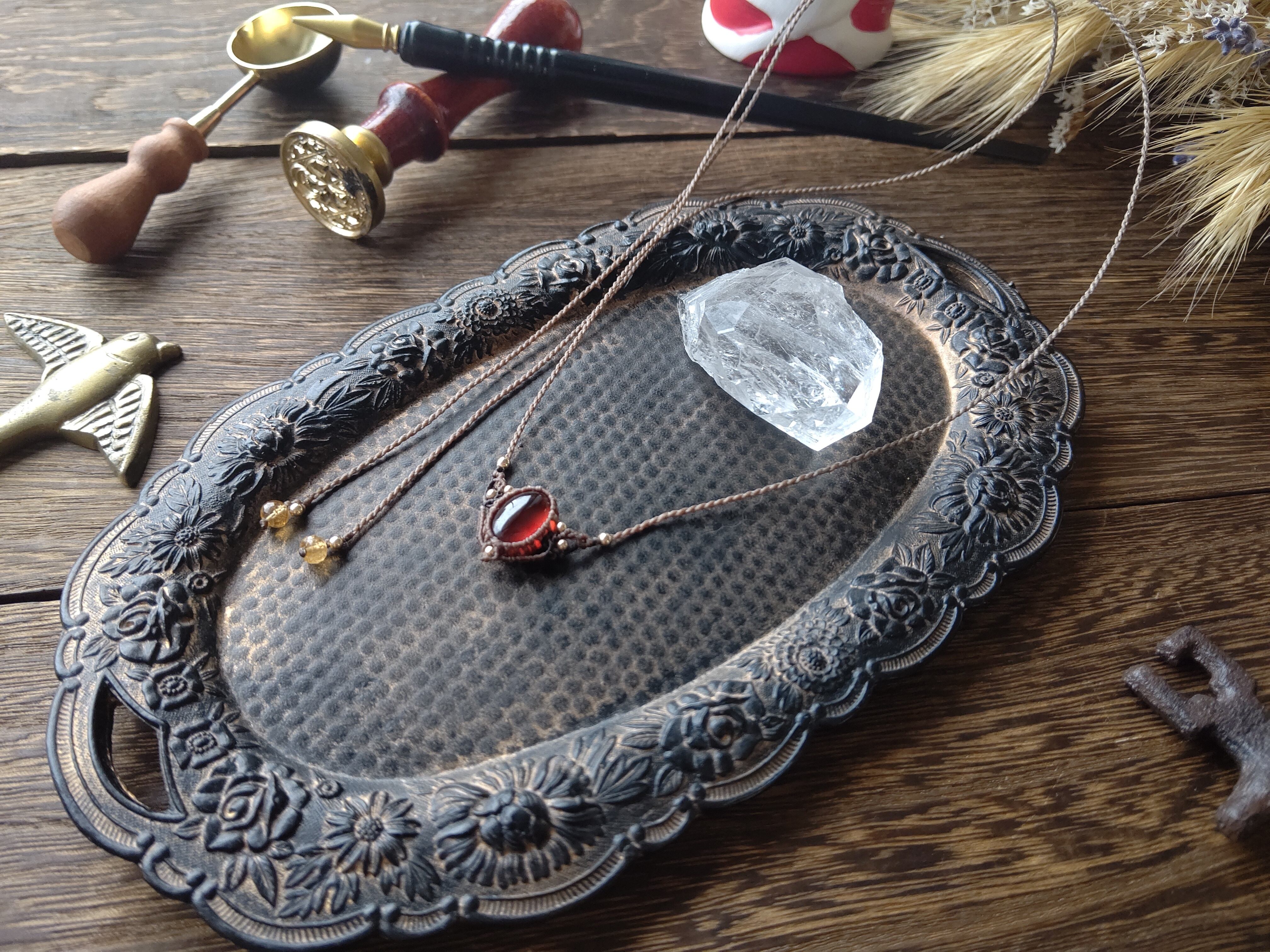 結び石のデザインや石質にもこだわり、見えない部分も宝石感をお楽しみいただけるマクラメアクセサリーならではの仕上がりに致しました。
