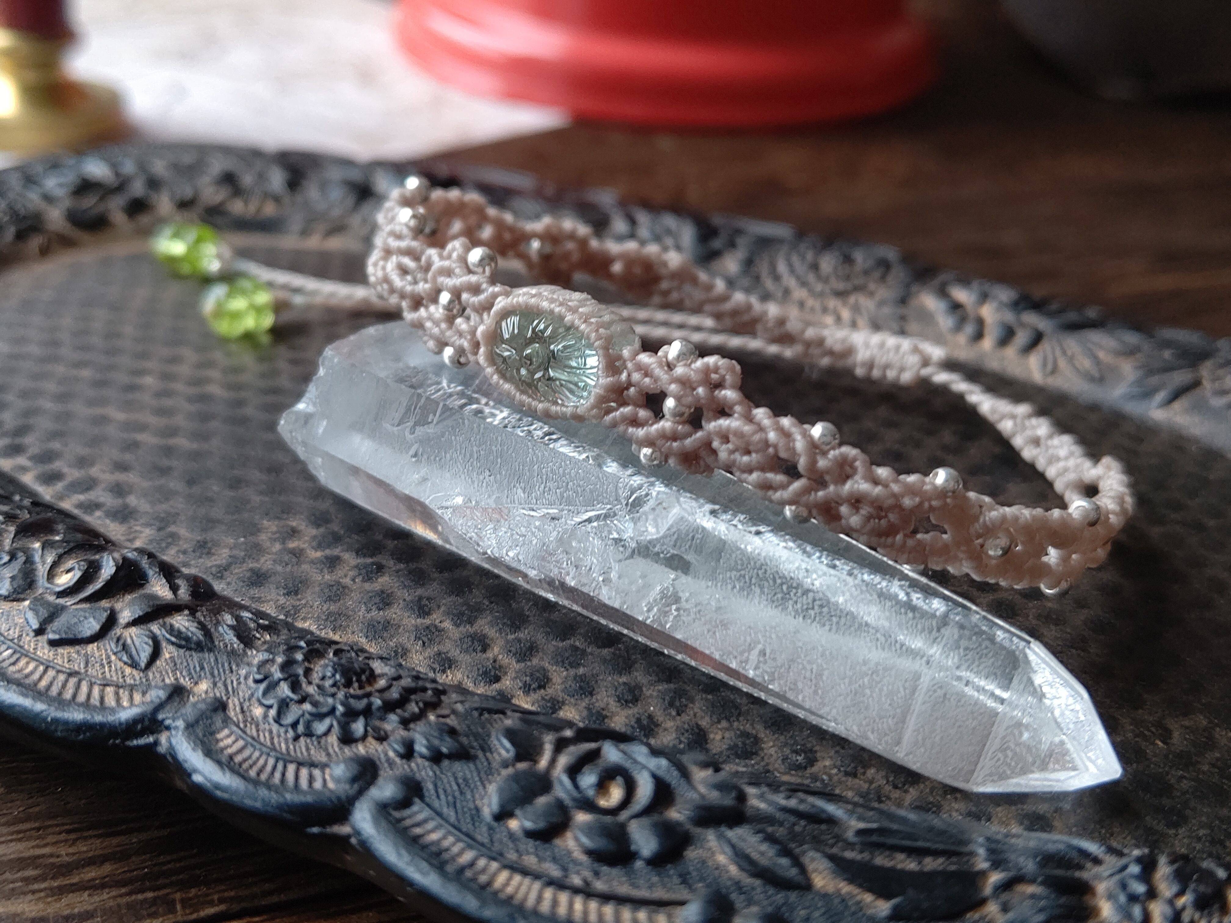 ☆お花模様のグリーンベリルのマクラメブレスレット