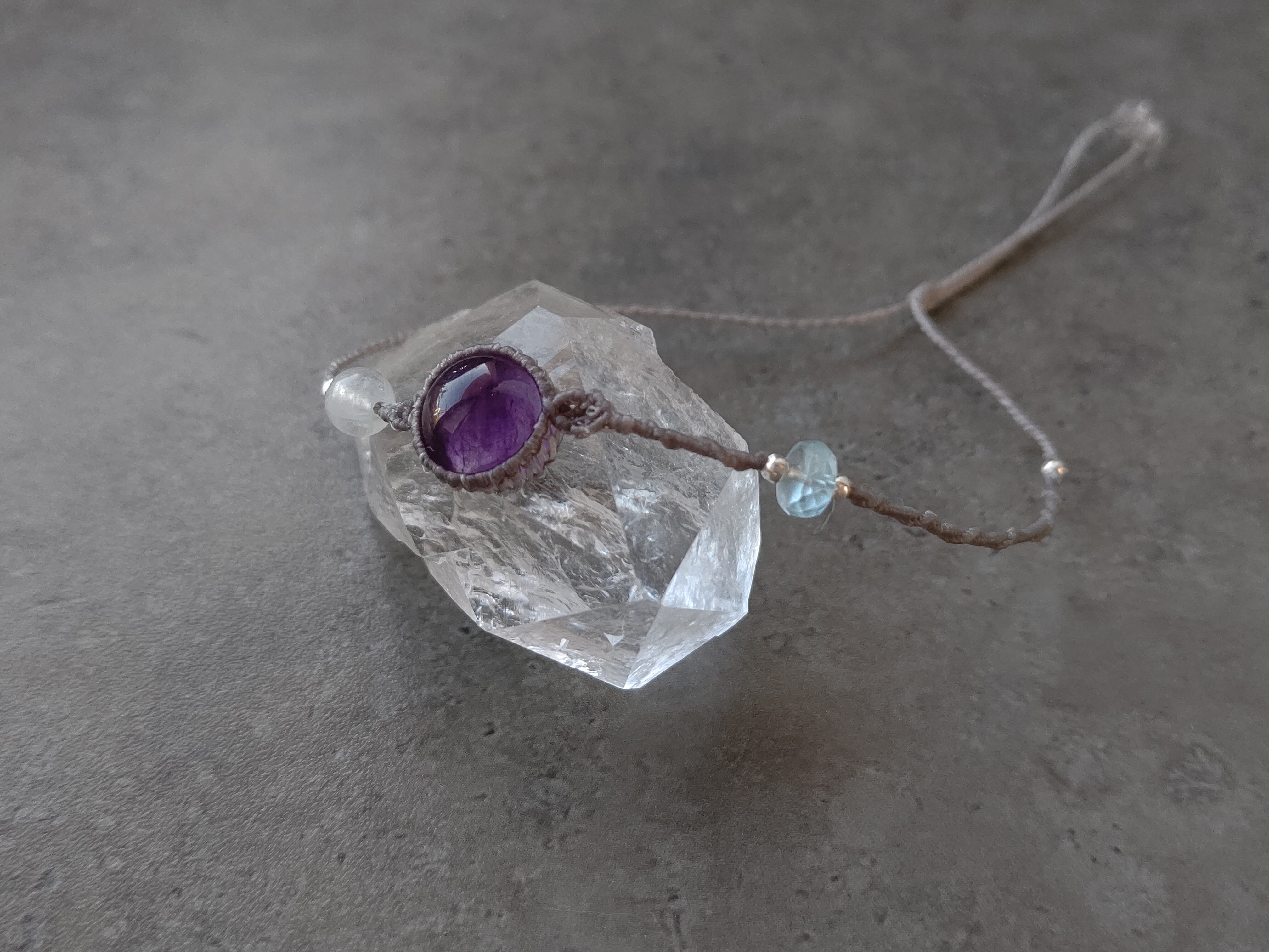 アメジストとアクアマリンのアシンメトリーブレスレット