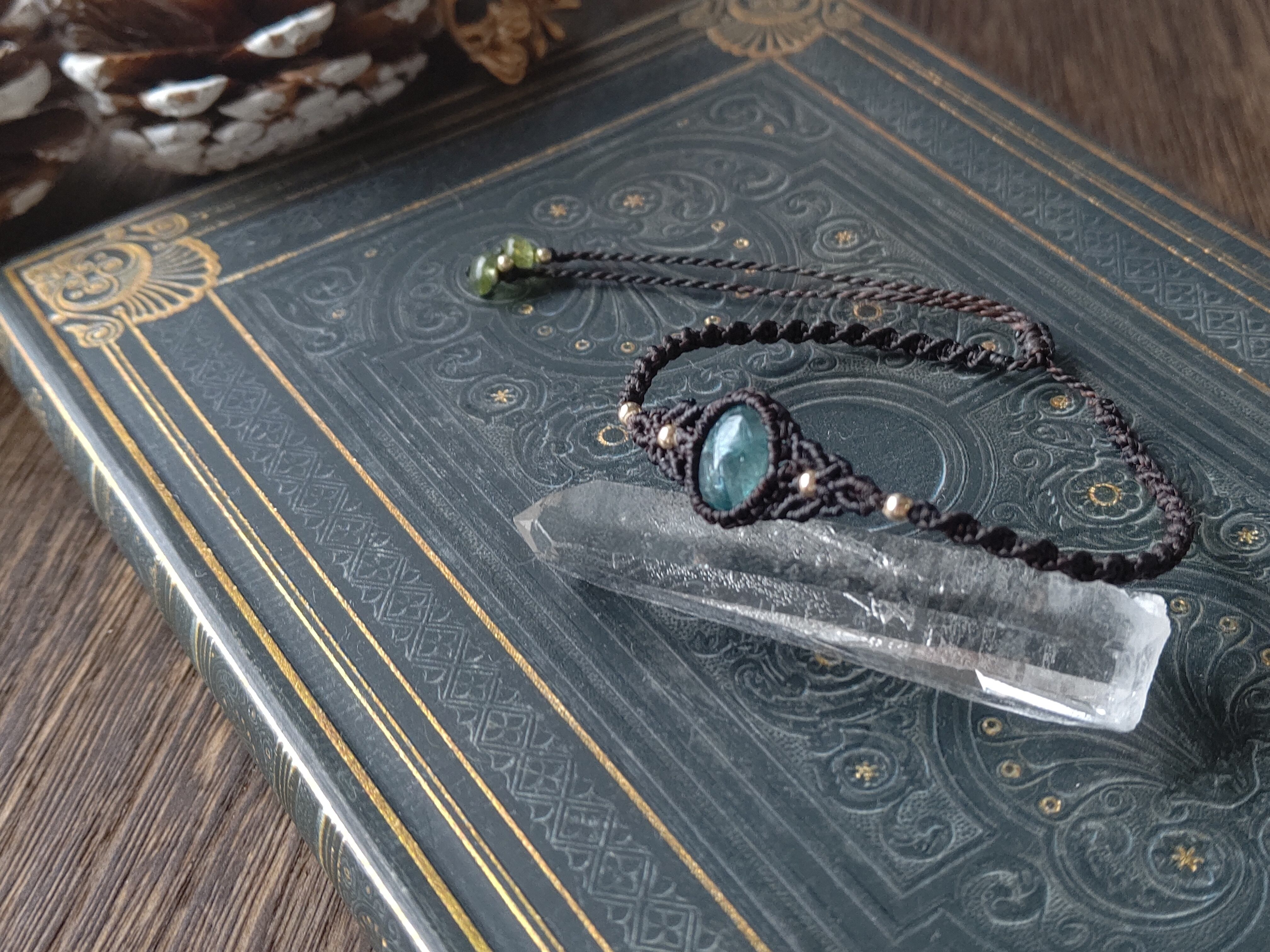 マダガスカル産のミントグリーンのグランディディエライトをマクラメブレスレットに仕立てました。