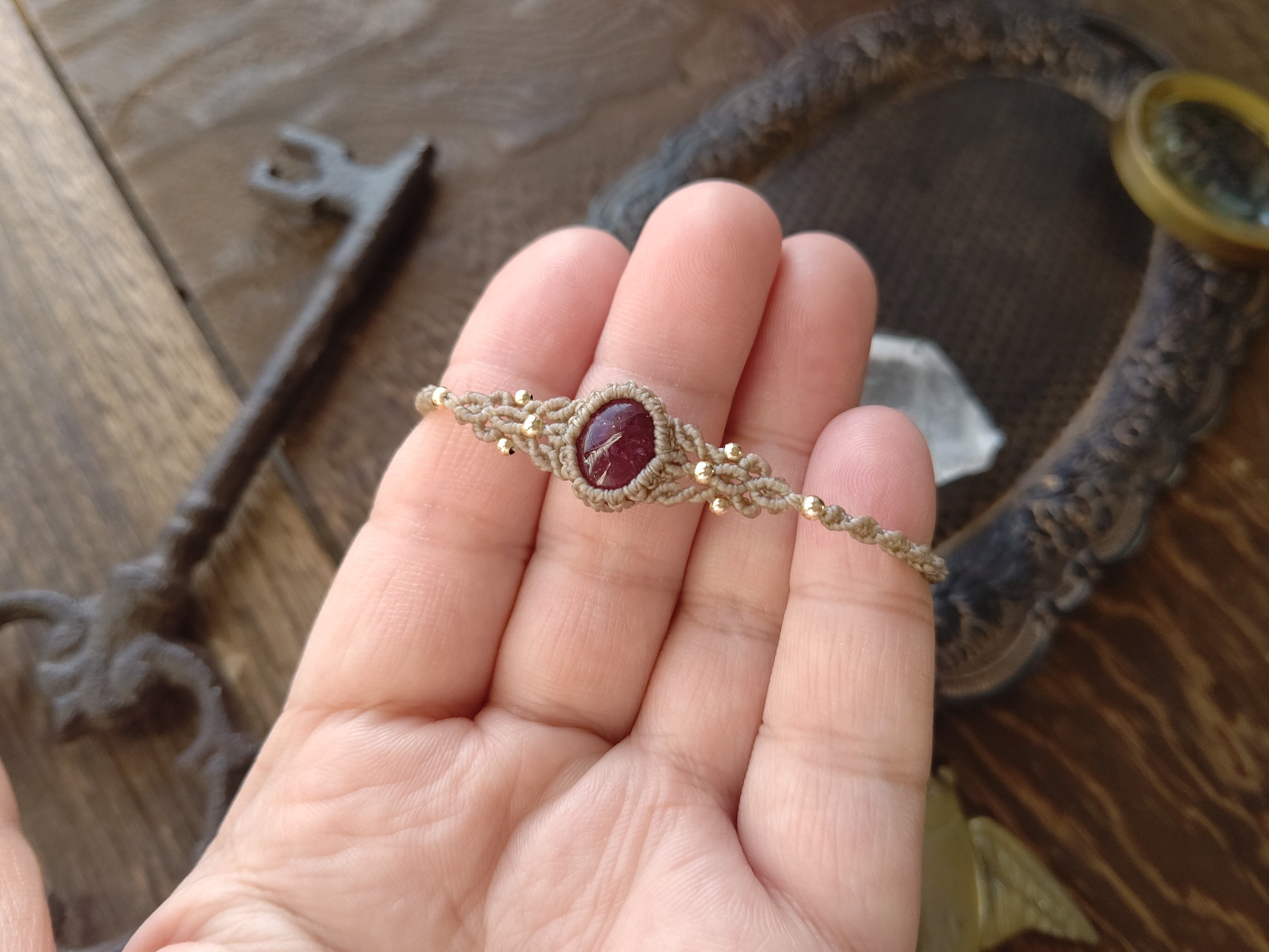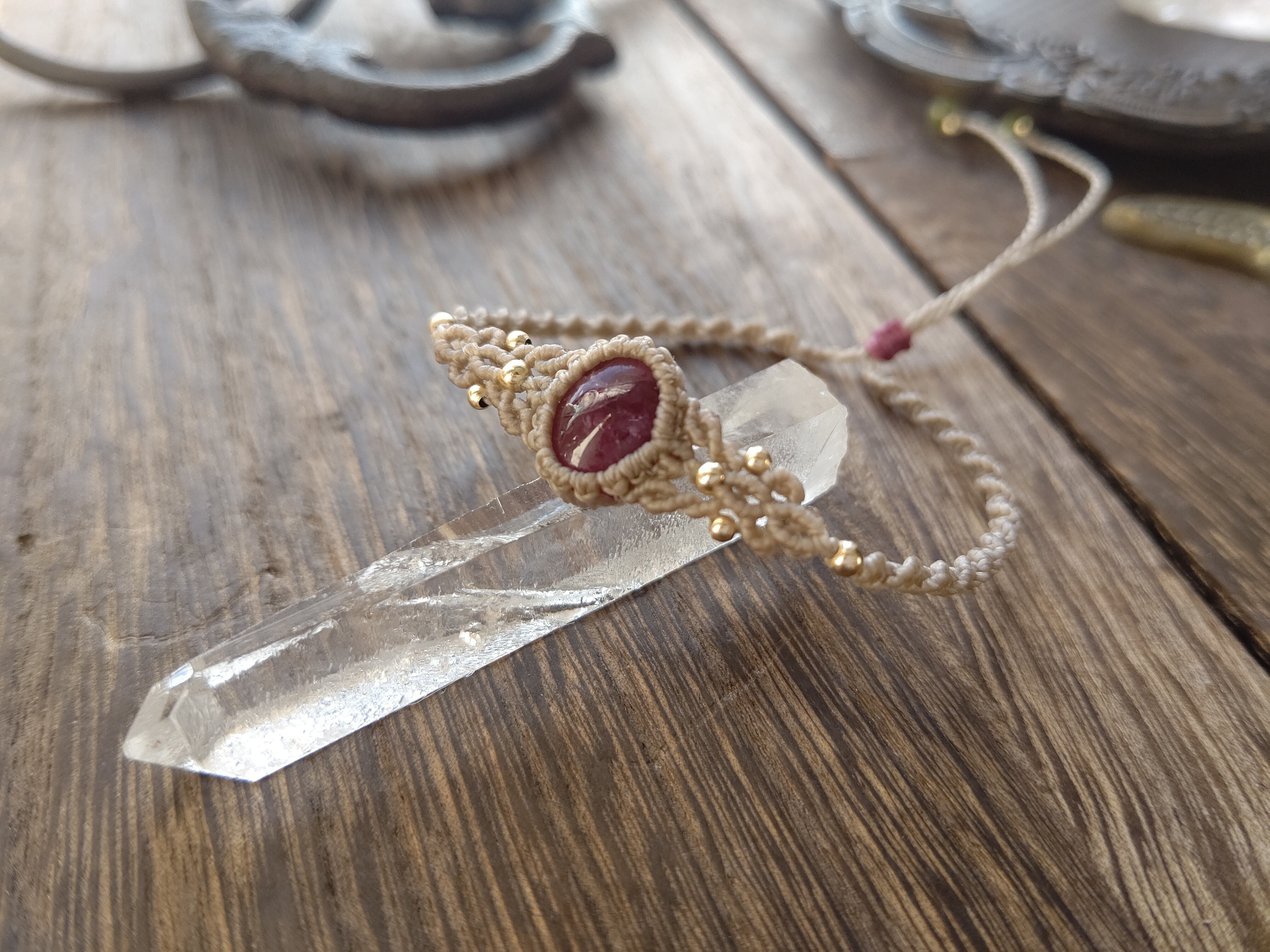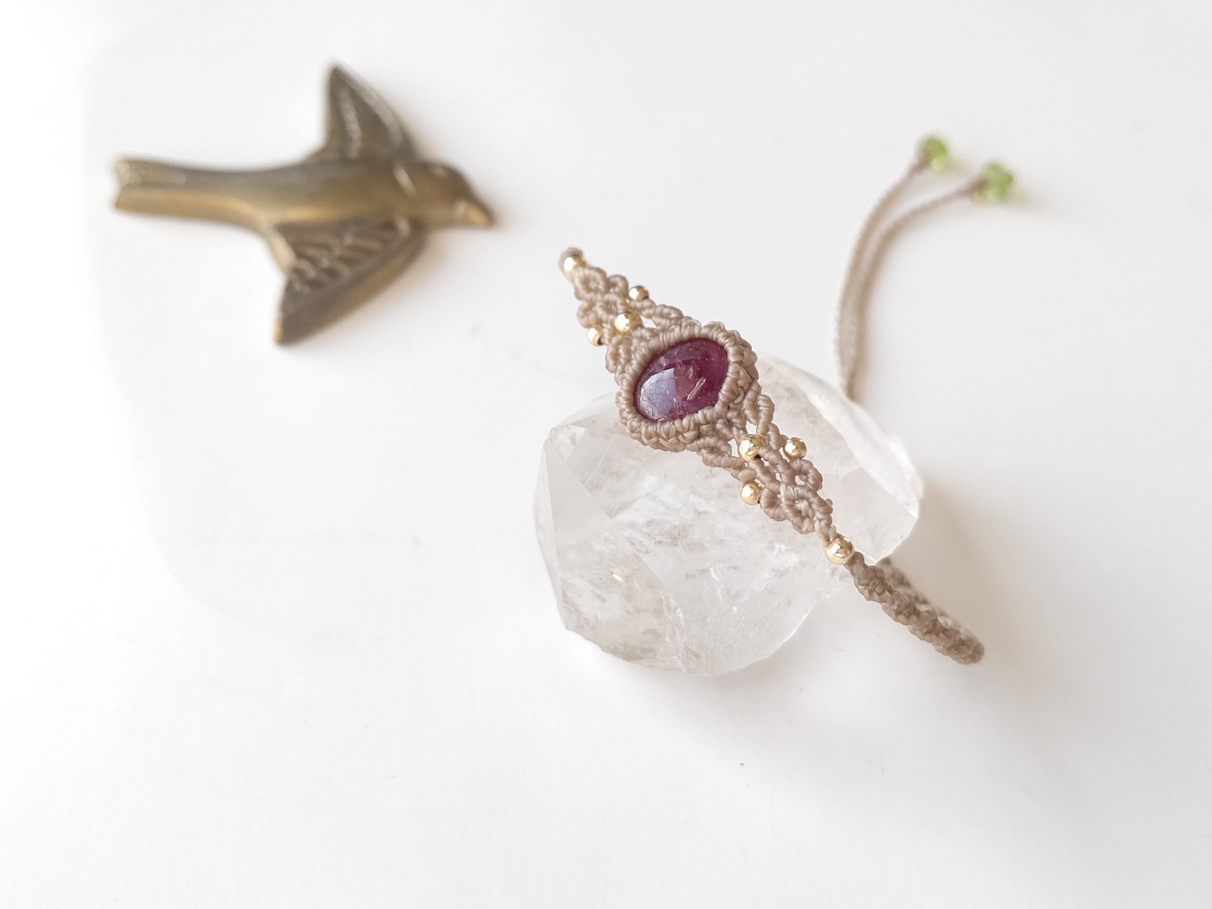 レッドピンクトルマリンのマクラメブレスレット