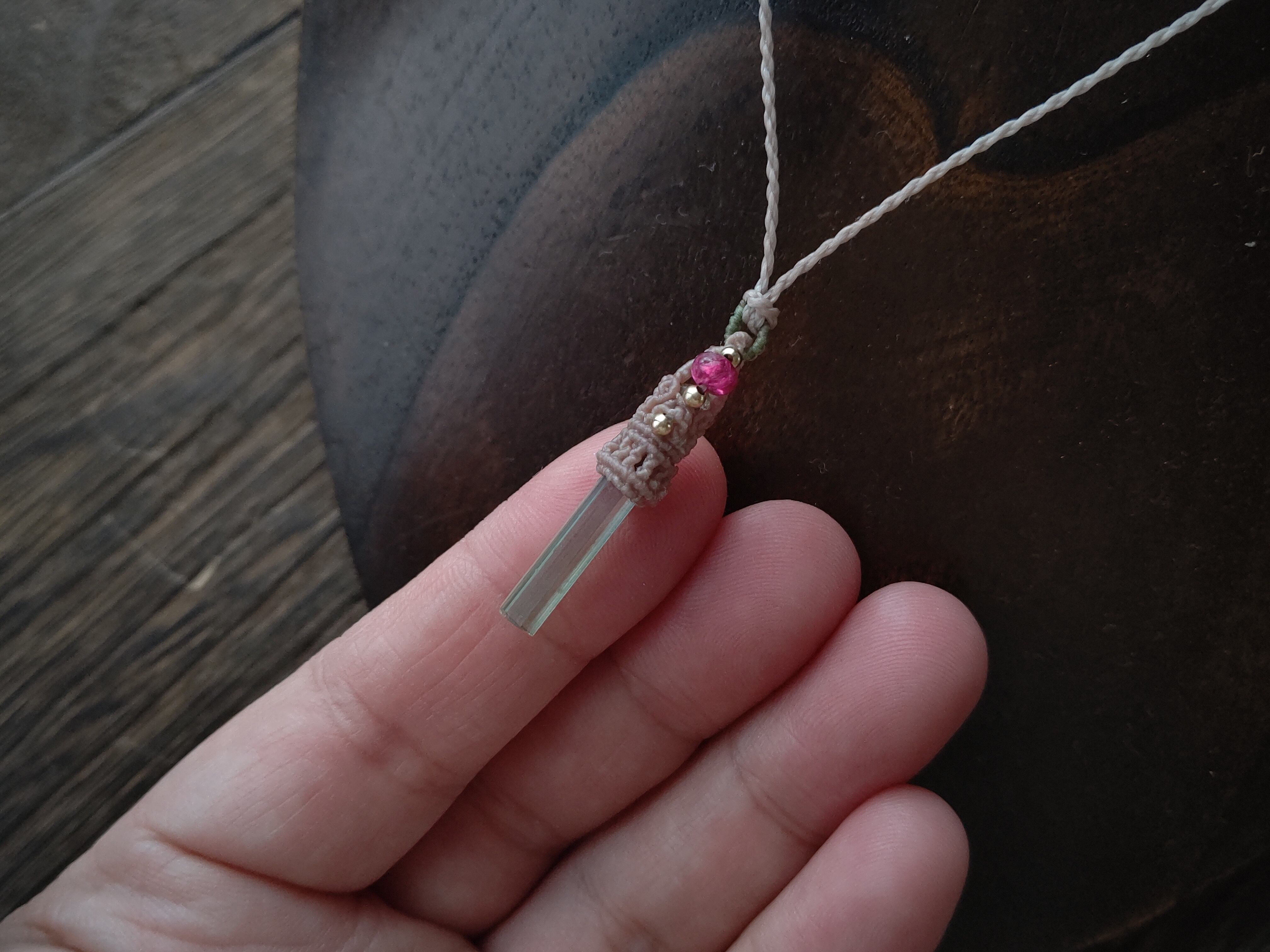透明感のあるグリーントルマリンの原石をペンダントに仕立てました。