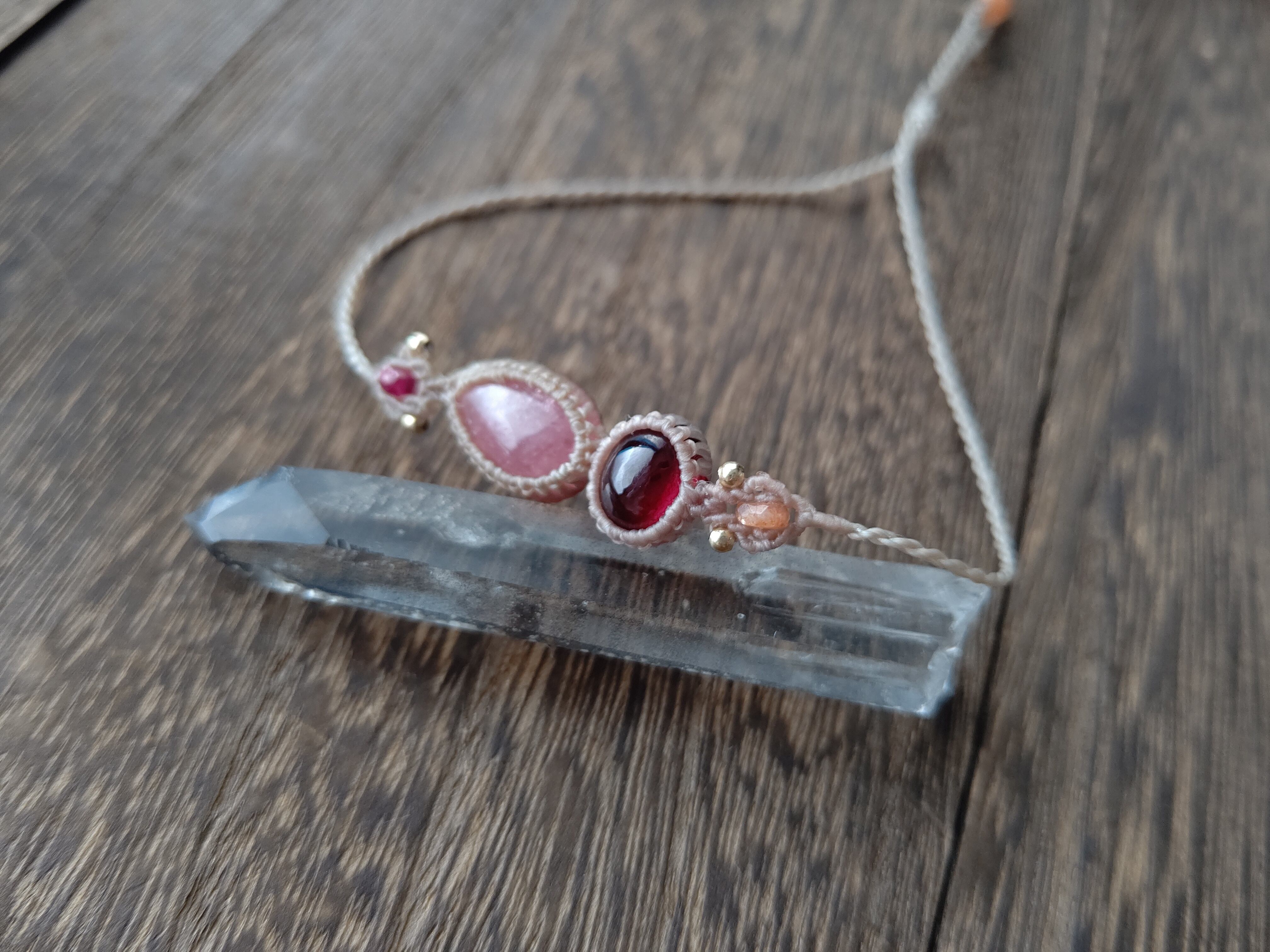 インカローズ×ヘソナイトガーネットのアシンメトリーブレスレット