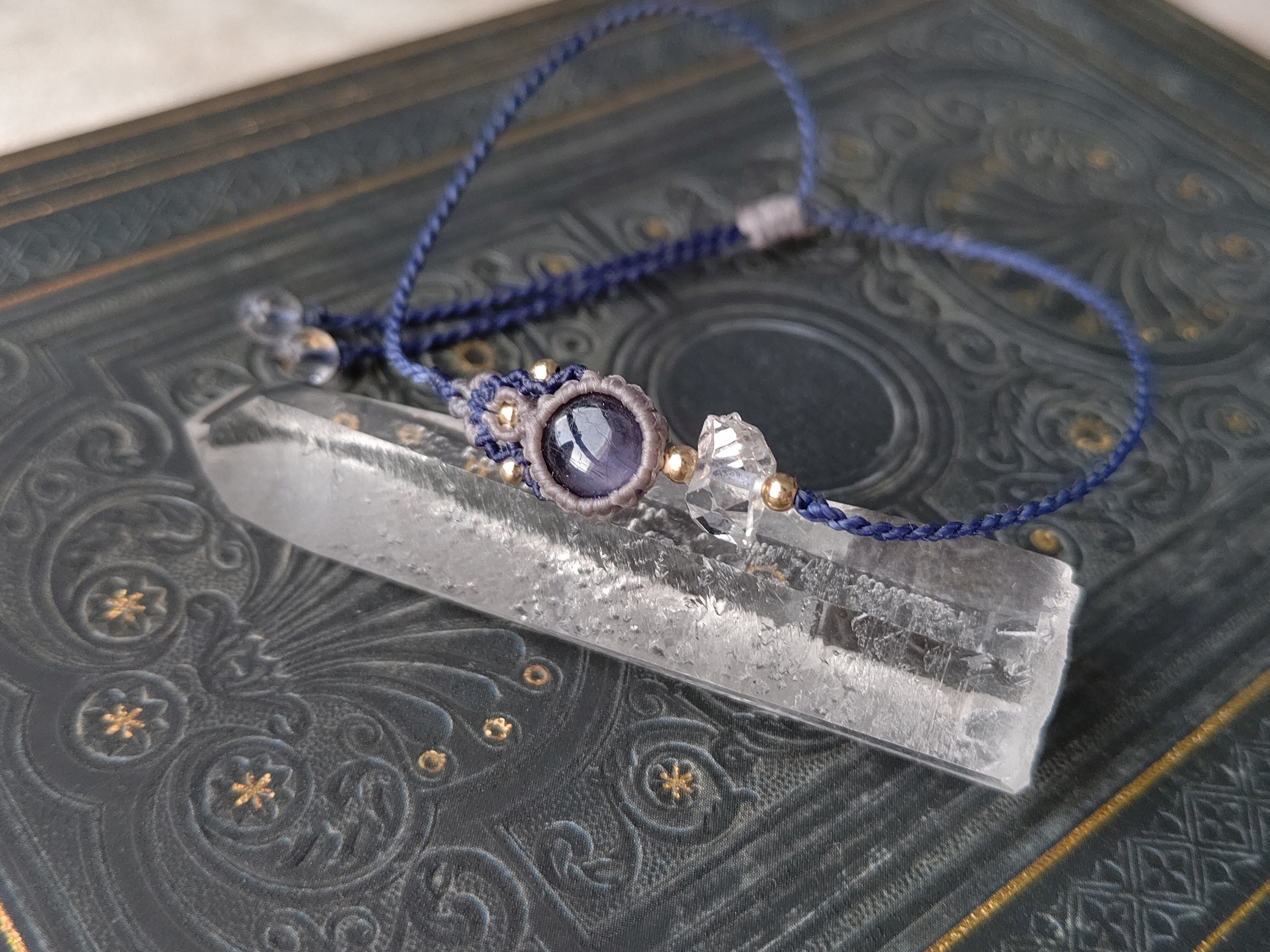 ハーキマーダイヤモンド×宝石質アイオライトのアシンメトリーブレスレット