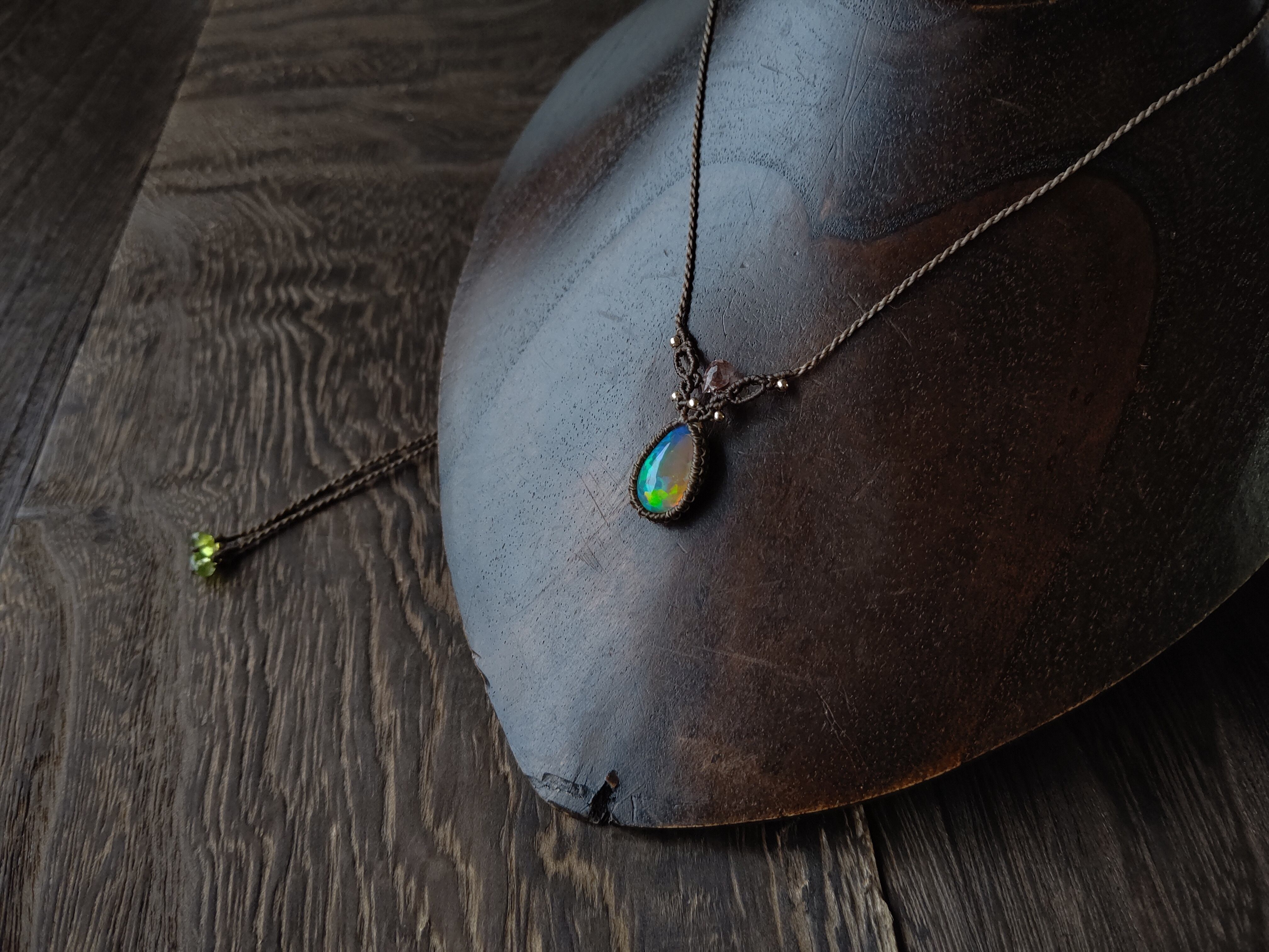 虹の雫 エチオピア産オパールとピンクトルマリンのペンダント