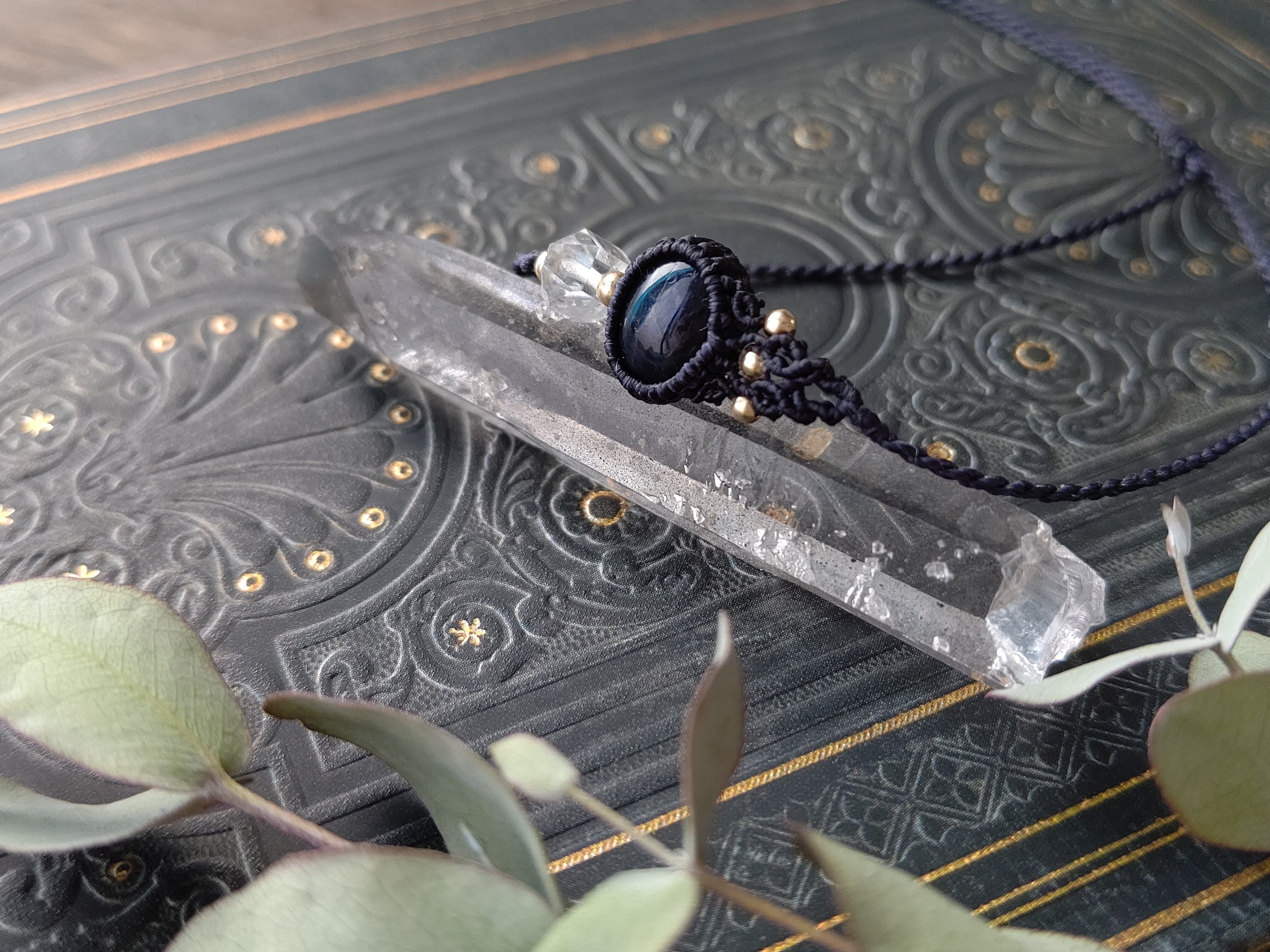 ブラックブルーラブラドライトは漆黒の地色にブルーのシラーがうっすらとご覧いただける、ころんとかわいらしいルースです。ハーキマーダイヤモンドは両錐の美しい透明感のある結晶です。