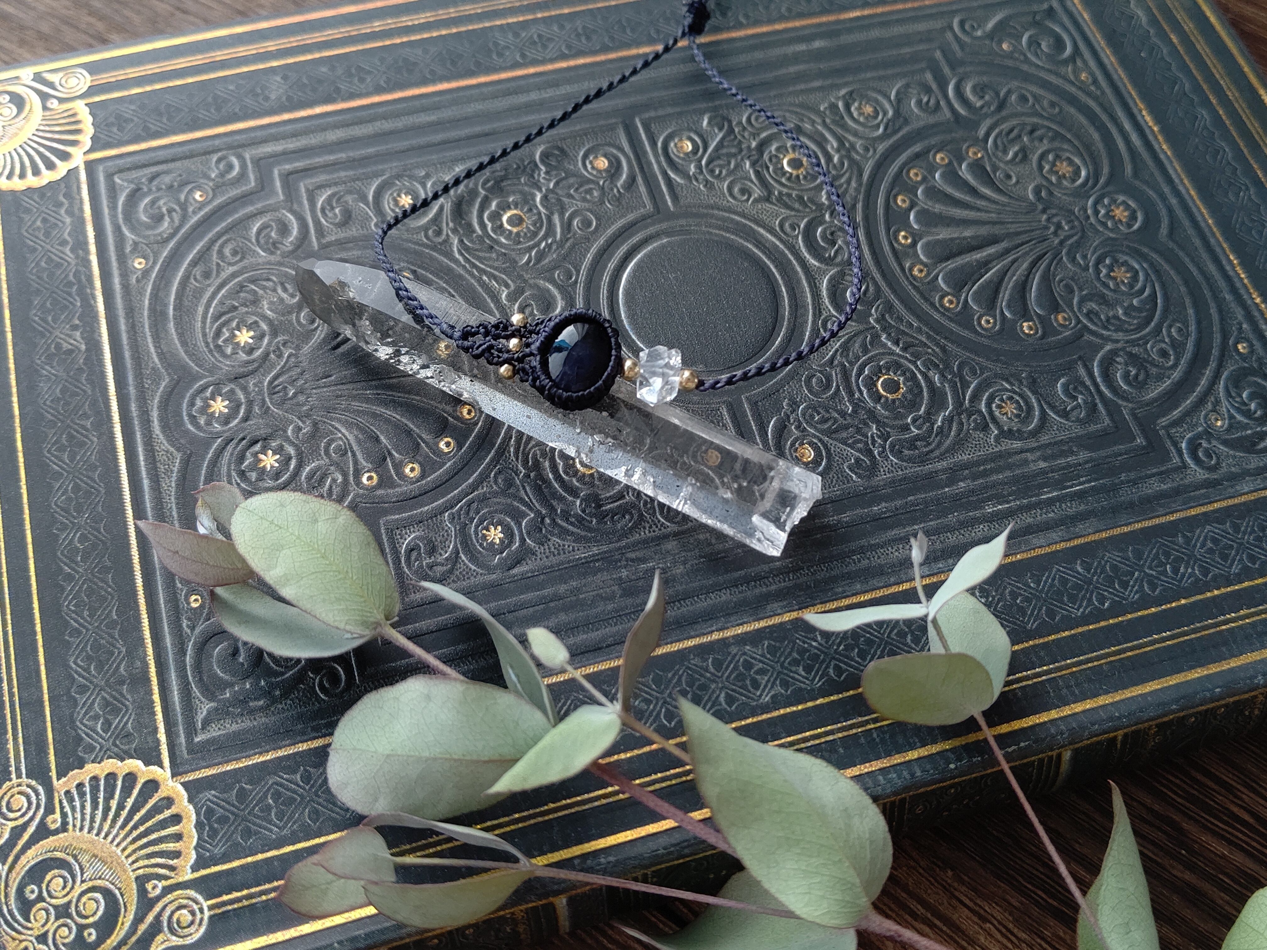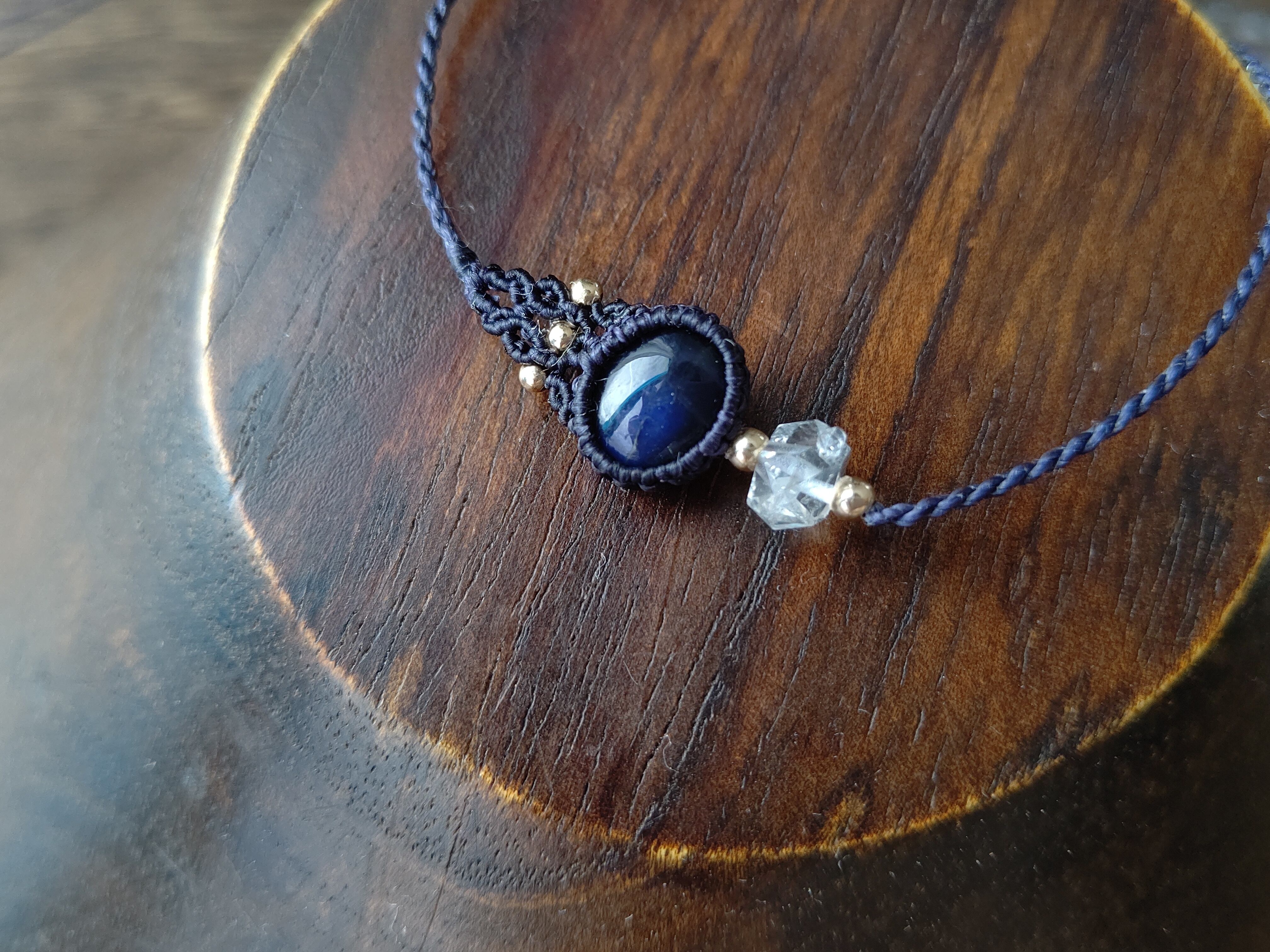 ハーキマーダイヤモンドの原石とブラックブルーラブラドライトを組み合わせスッキリとした細身のデザインのアシンメトリーブレスレットを製作しました。
